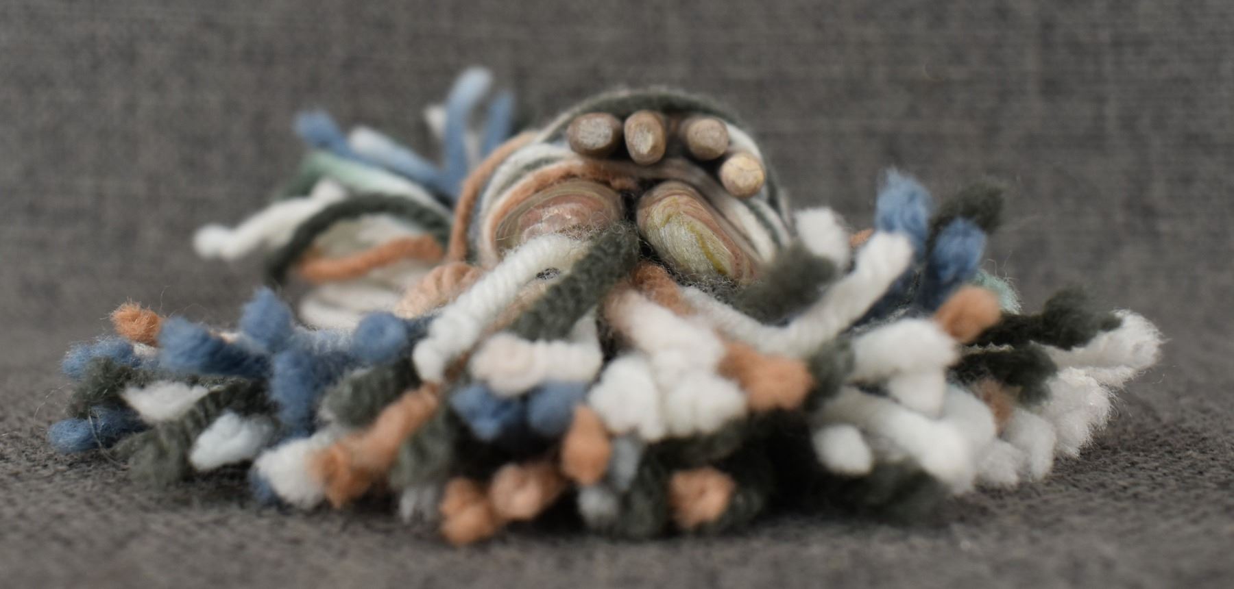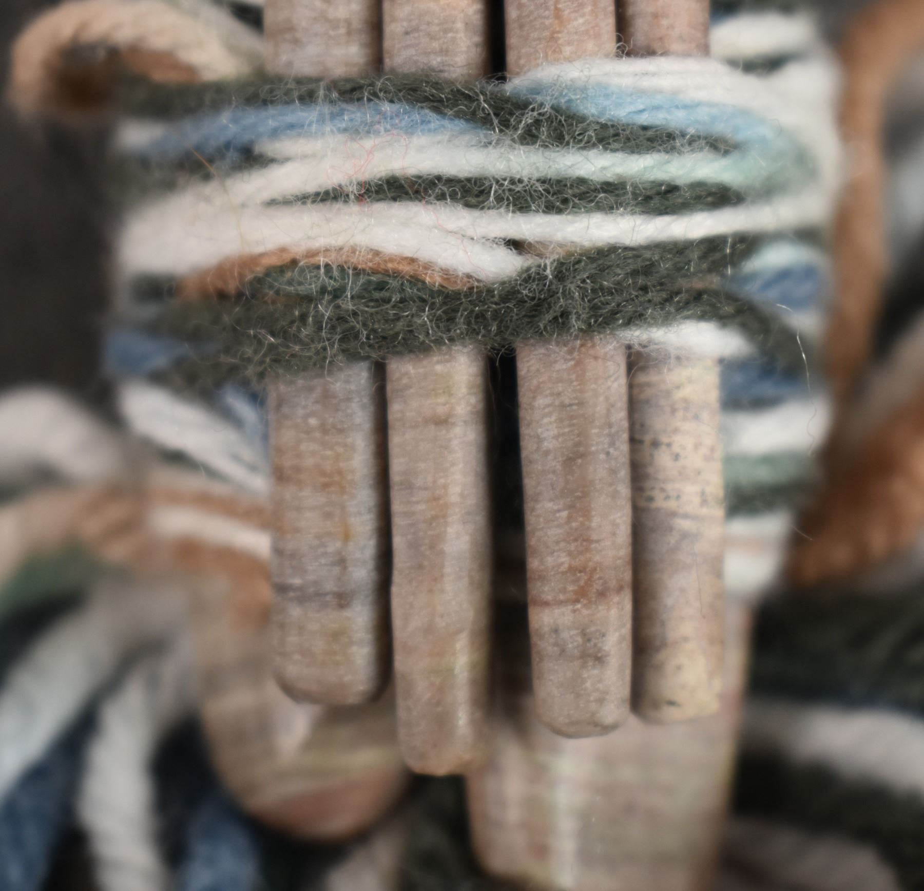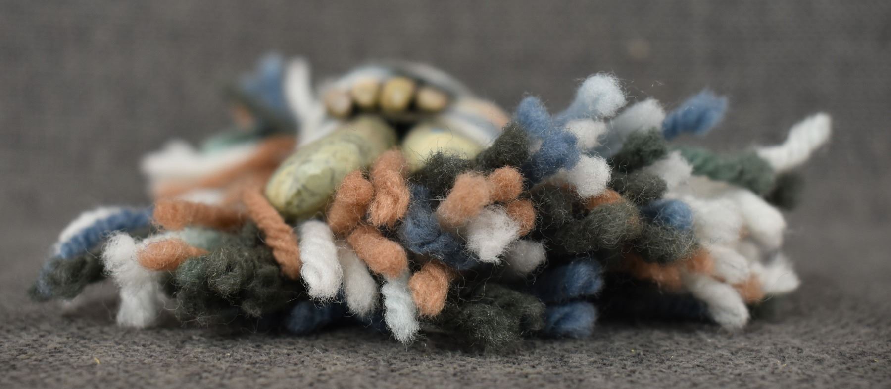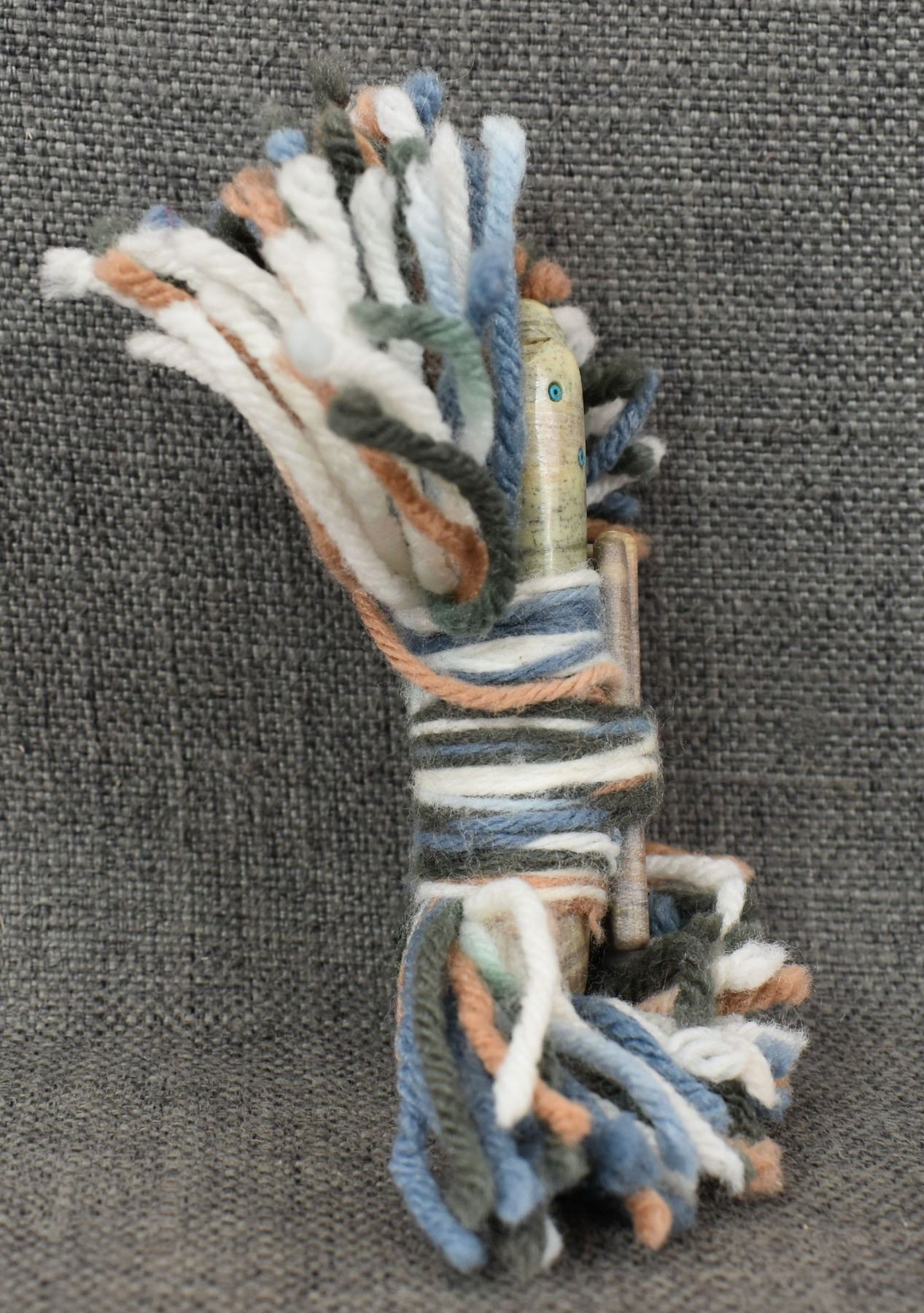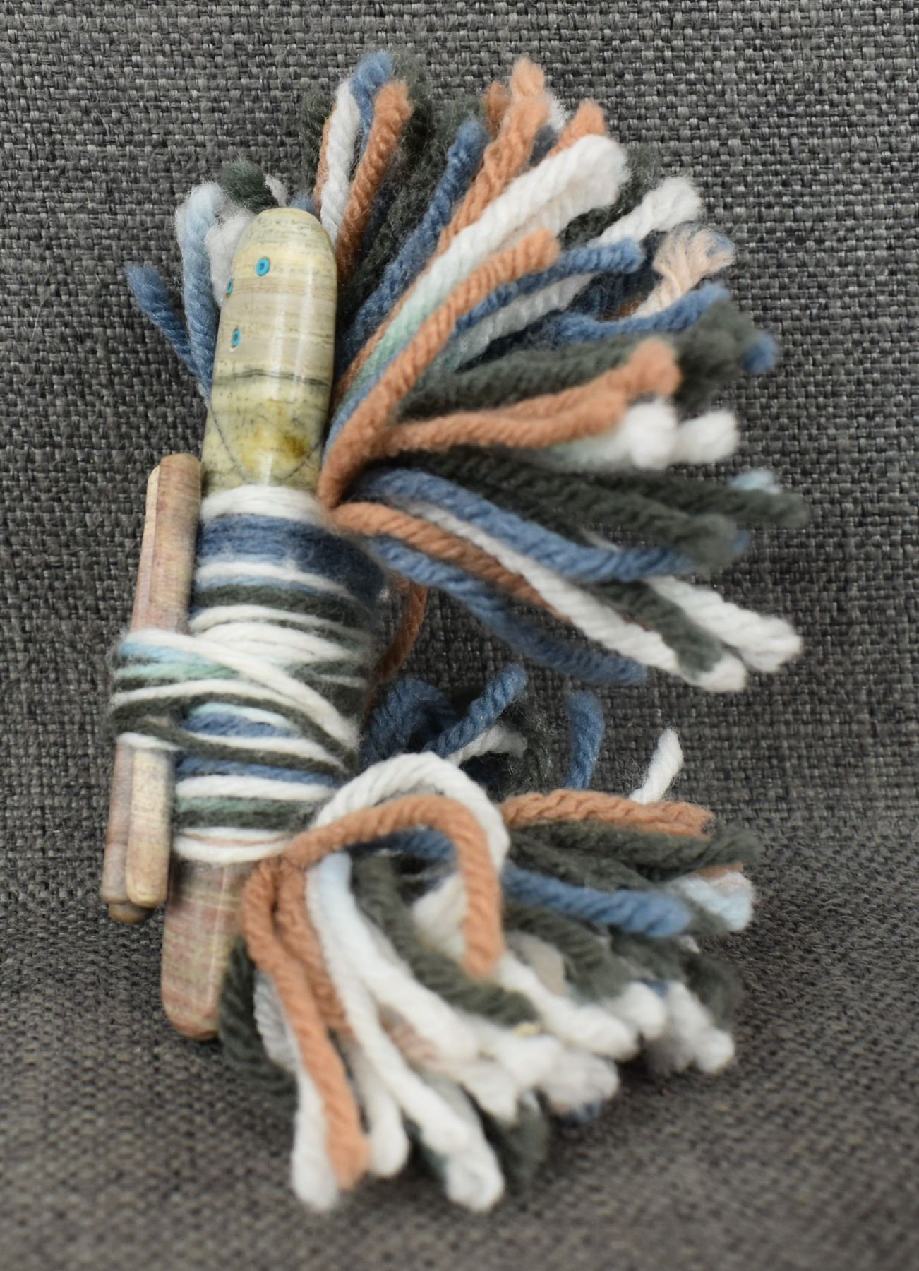 1980's Navajo, carved stone fetishes with turquoise inlay wrapped in yarn 6.5" x 5"