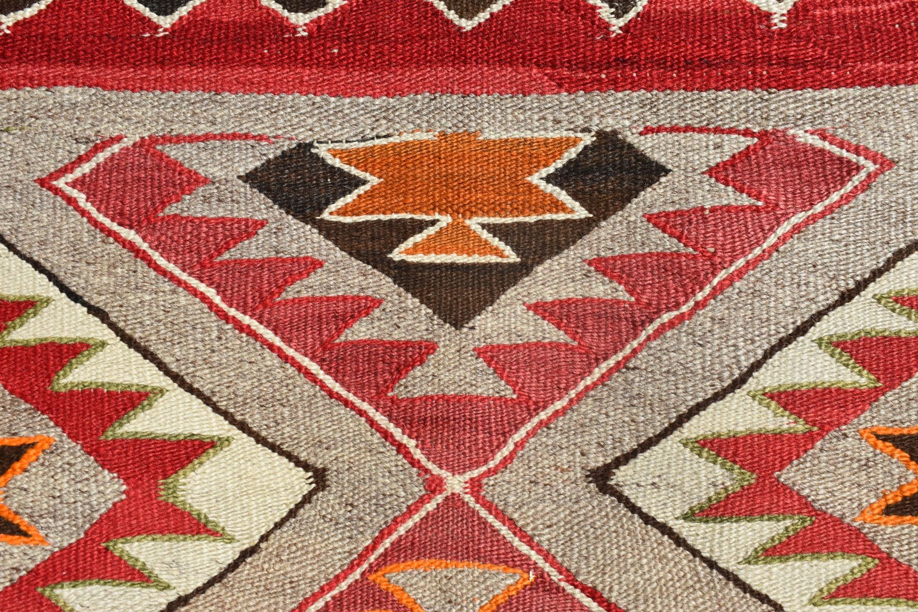 1920's Navajo, hand woven geometric red mesa design. 68" x 43"