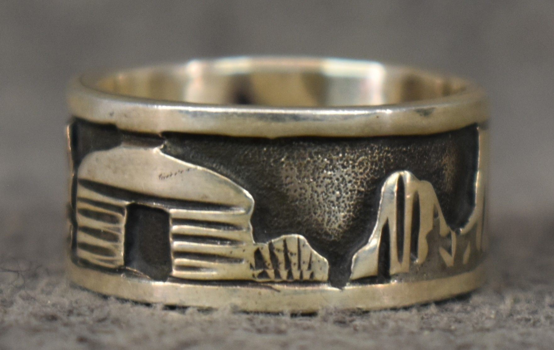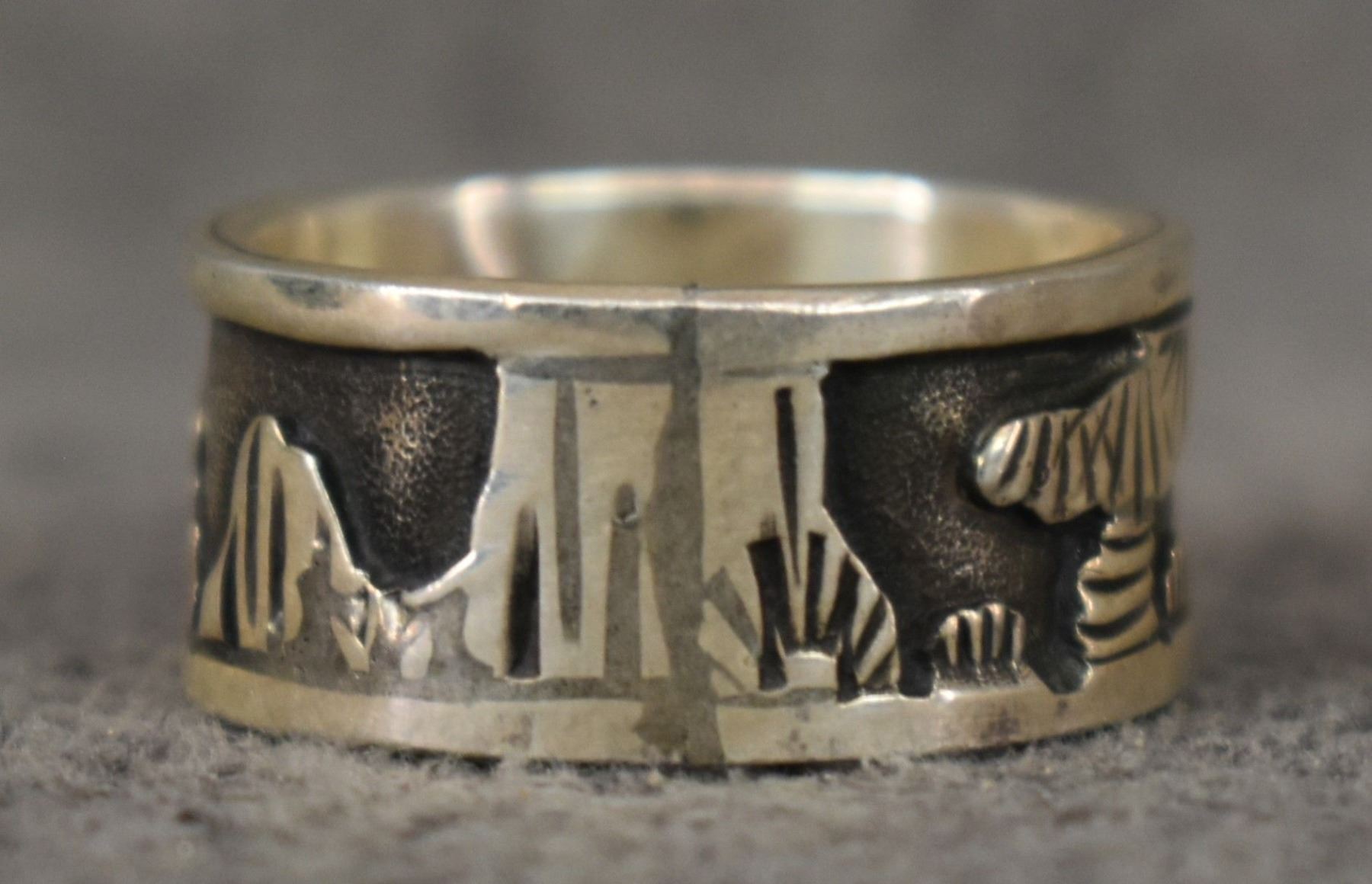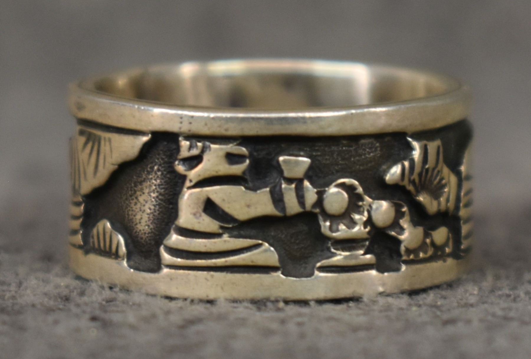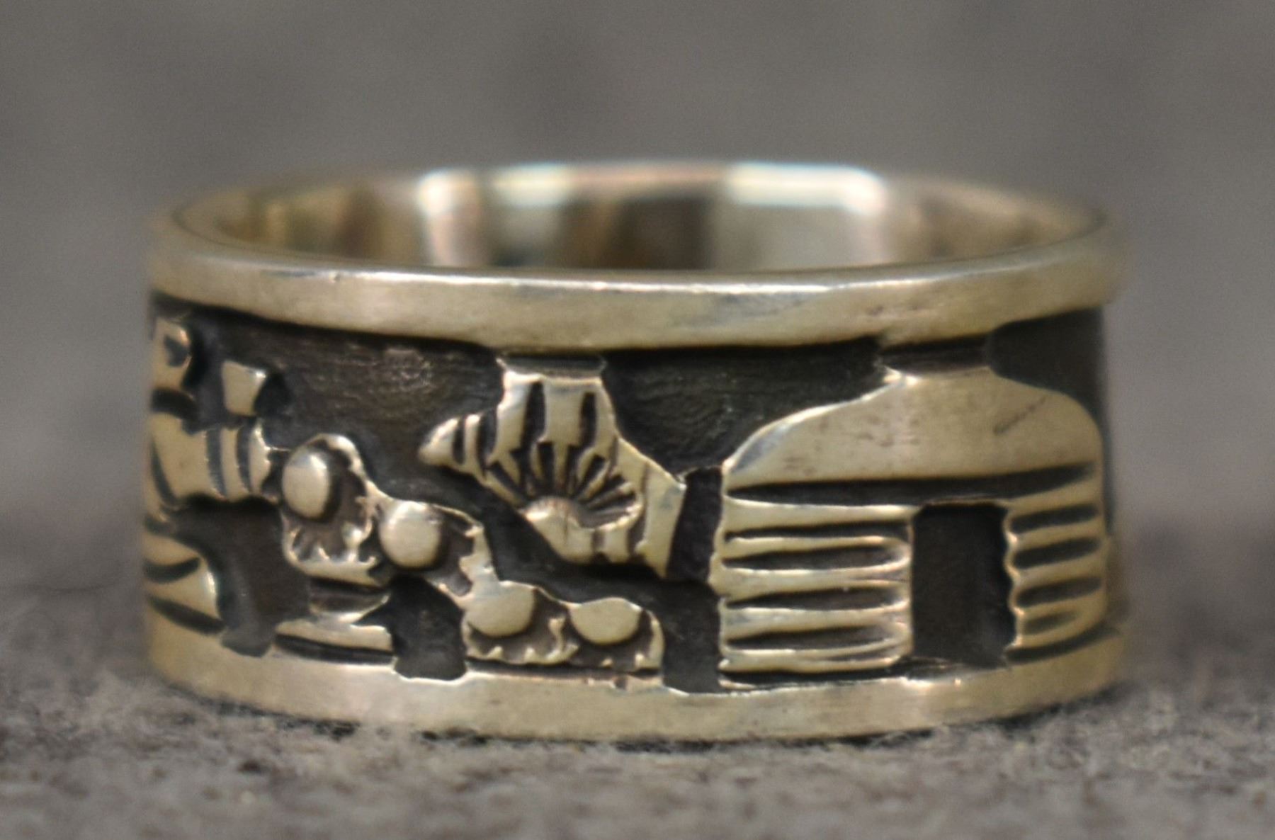 1990's Navajo, sterling silver story ring signed with hallmark for Floyd Becenti Jr. size 7 total weight 7 grams