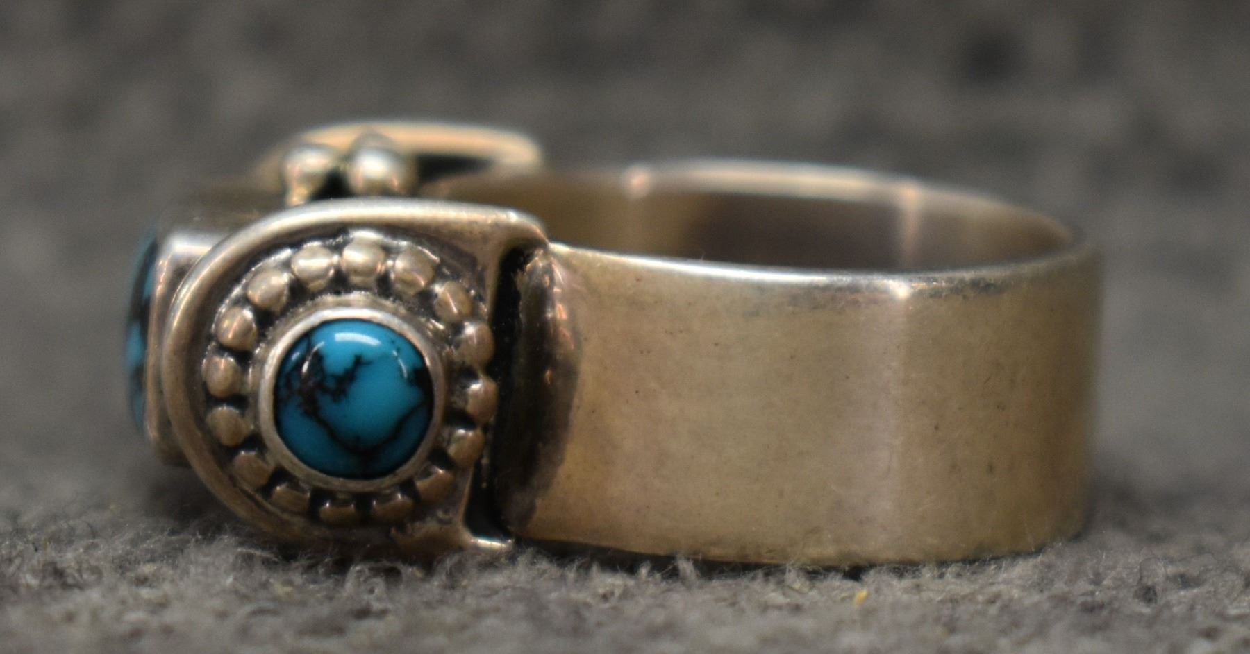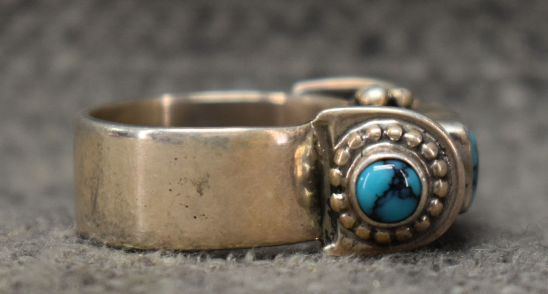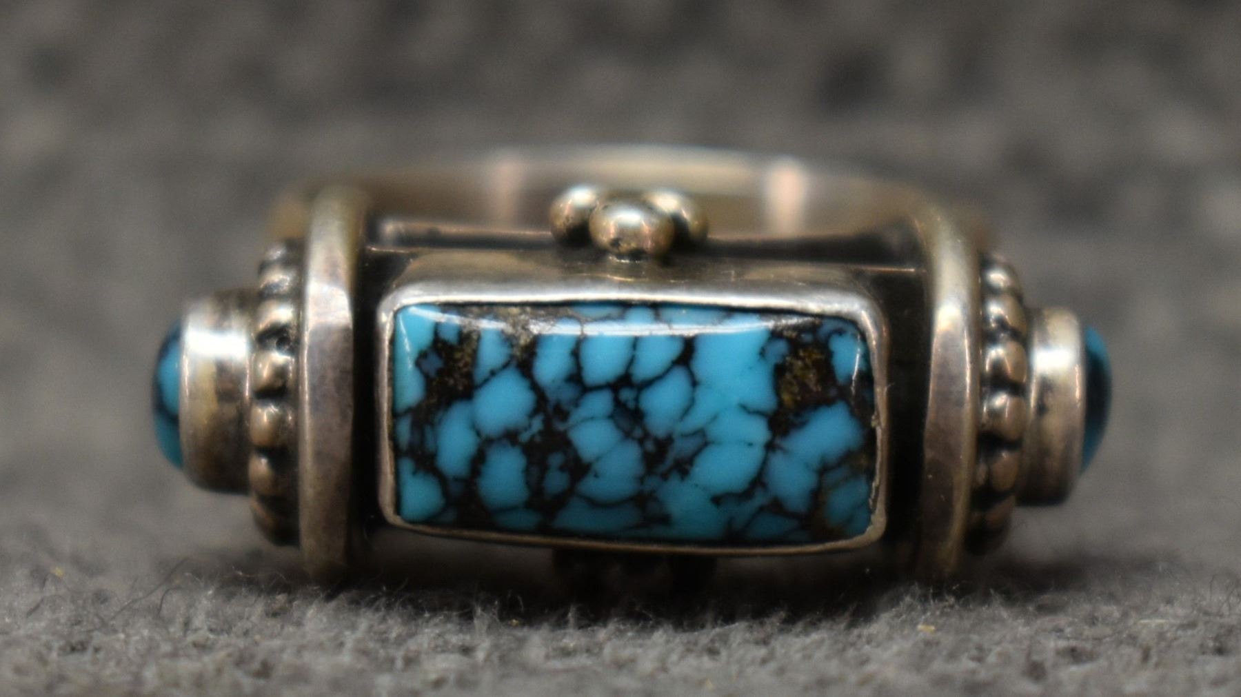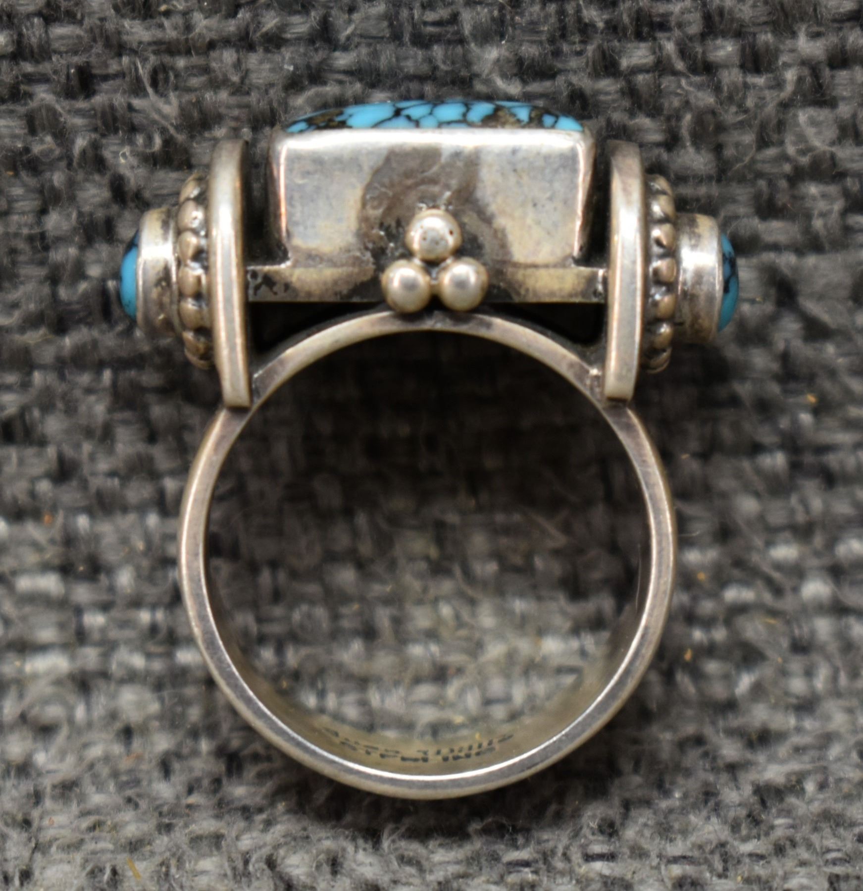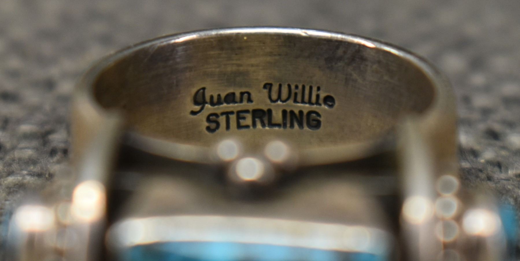 2000's Navajo. Sterling silver and turquoise ring. Signed Juan Willie. size 6. total weight 10 grams