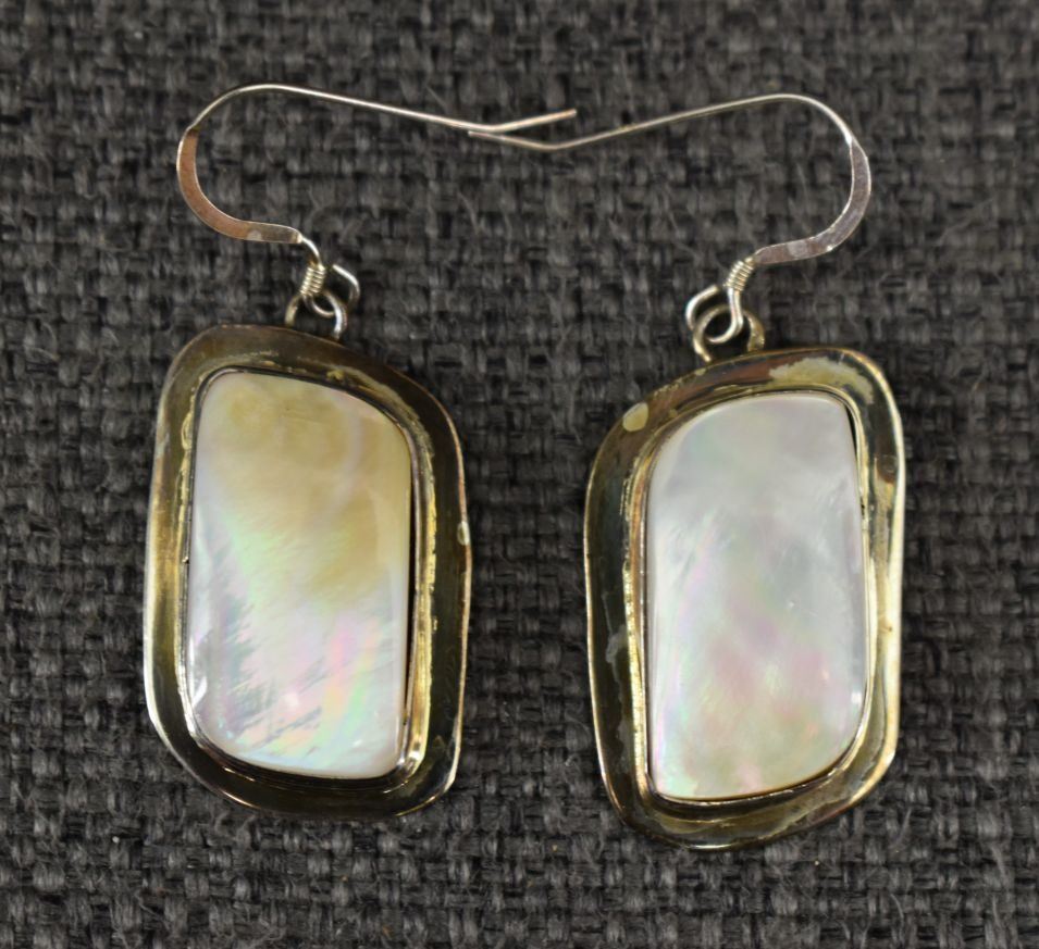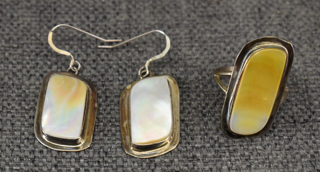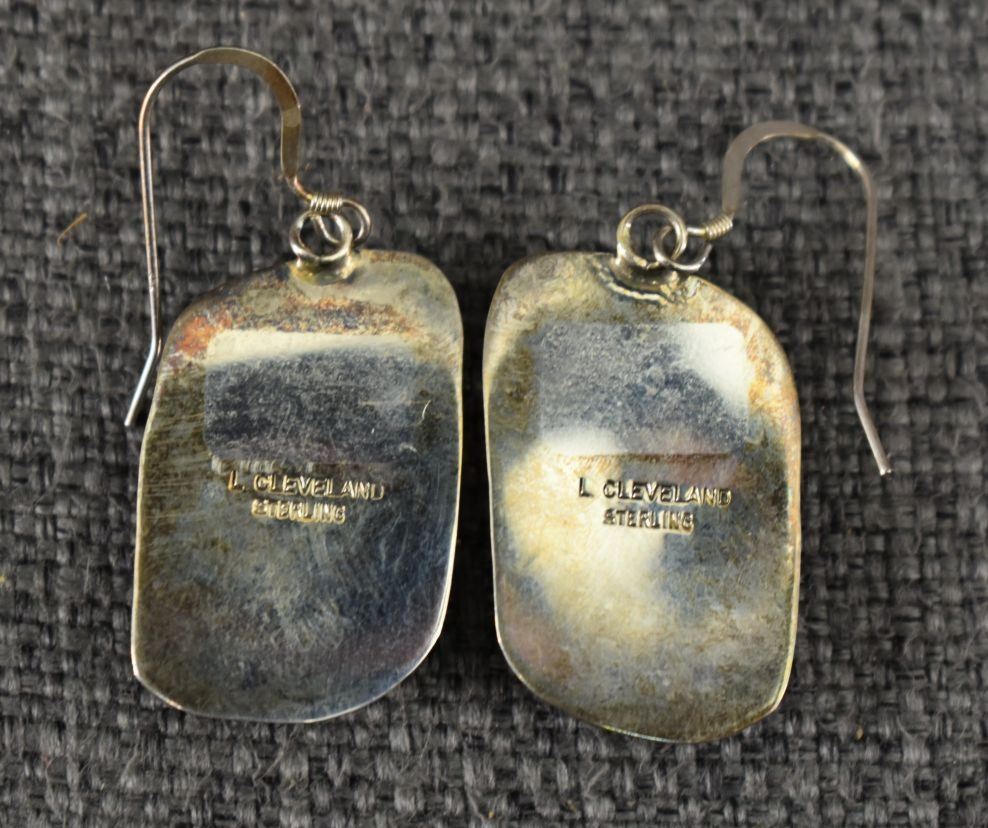 1980's Navajo, sterling silver and shell ring signed Nakai size 10, earrings signed L Cleveland 2" x .75" total weight 18 grams
