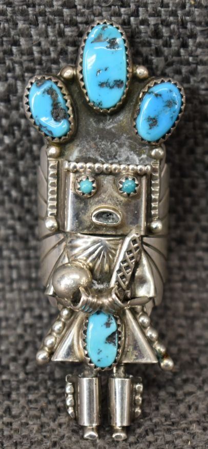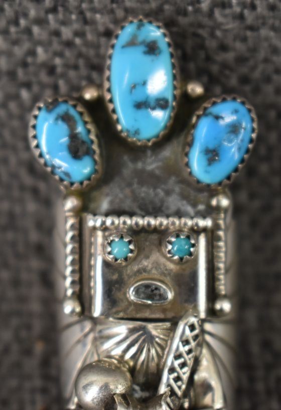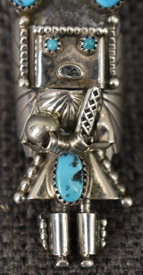 1980's Navajo, sterling silver and turquoise kachina figure 2.5" x 1" size 7.5 total weight 18 grams