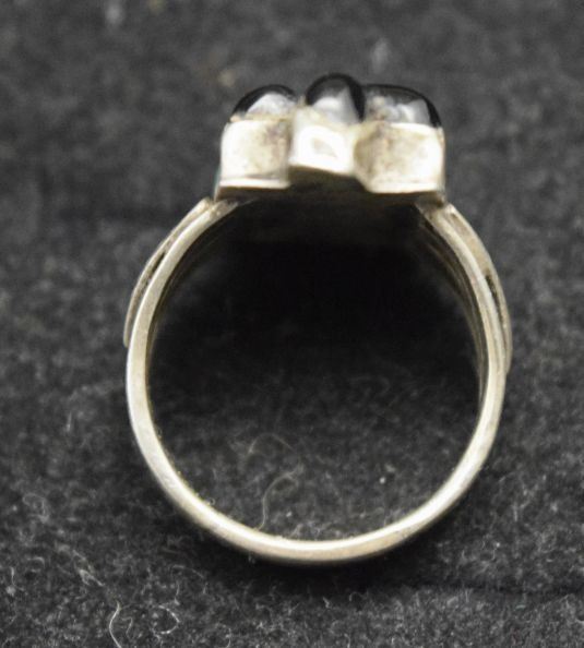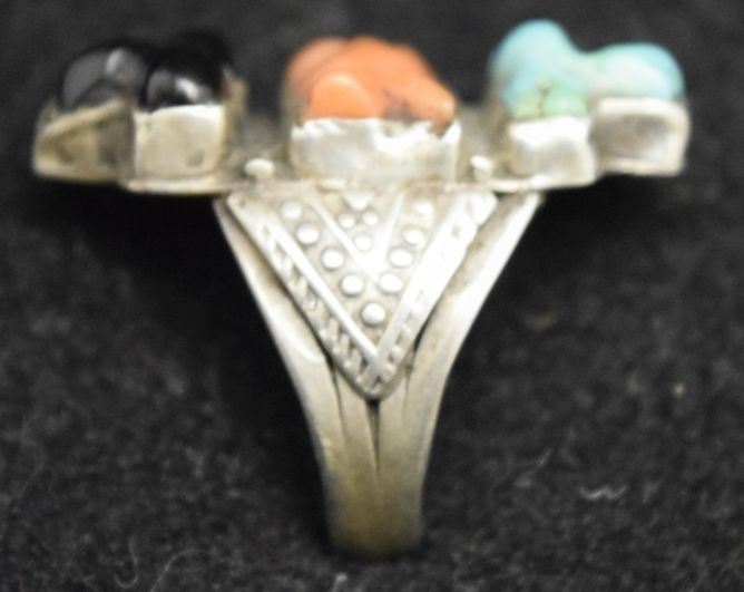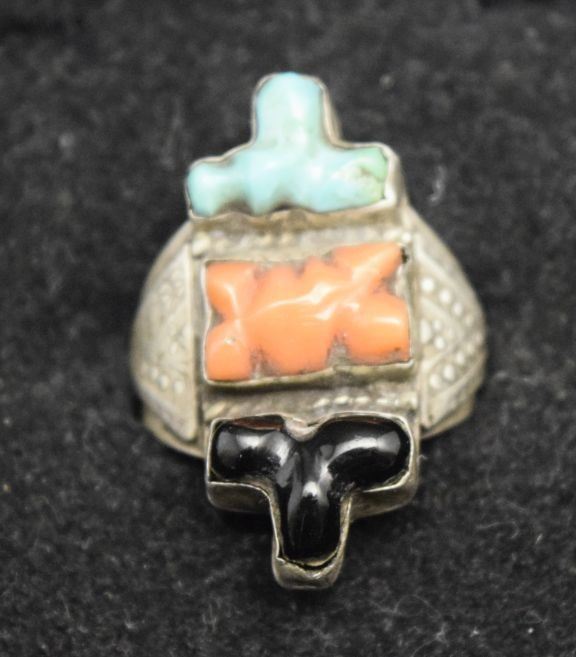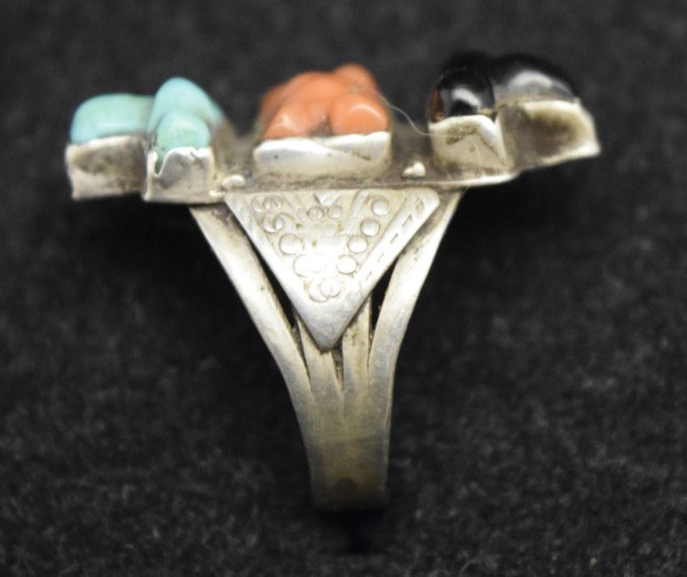 1960's sterling silver coral and jet size 7 total weight 7 grams