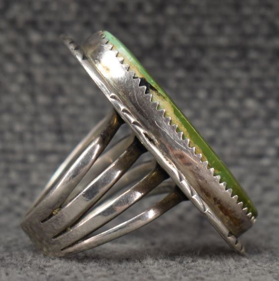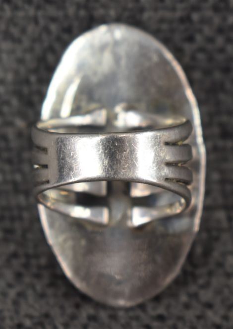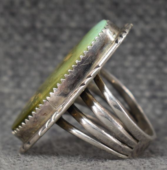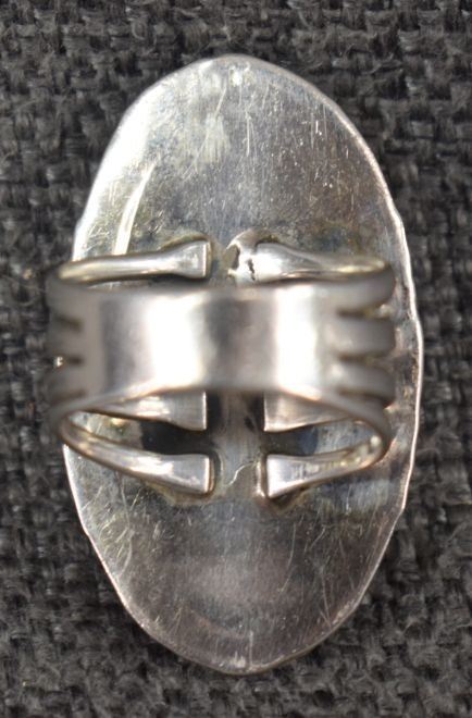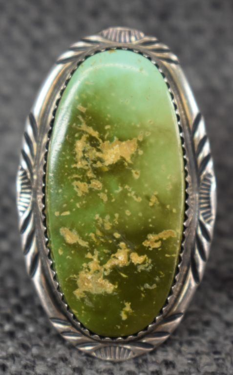 1990-2000's Navajo, sterling silver stamped design with turquoise stone 1.5" size 8 total weight 13 grams