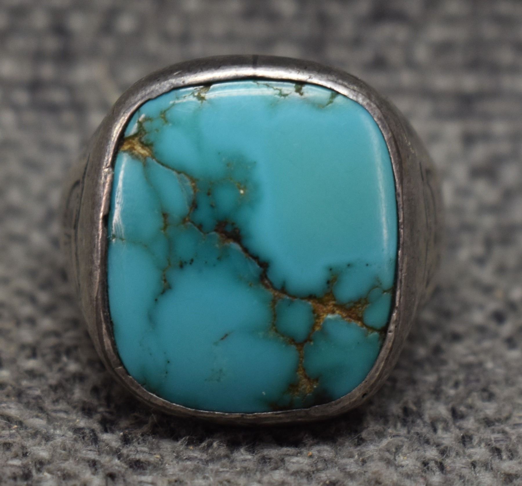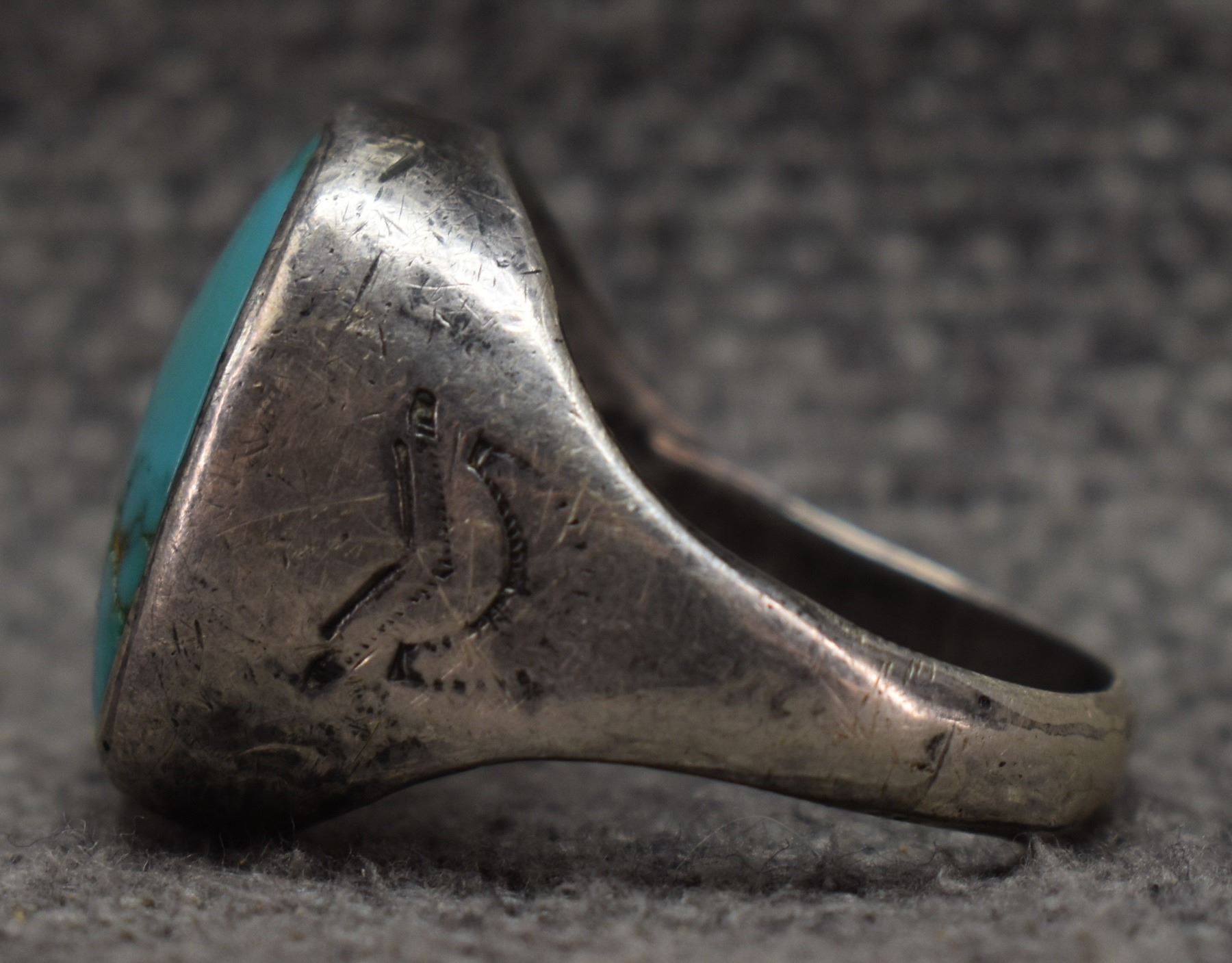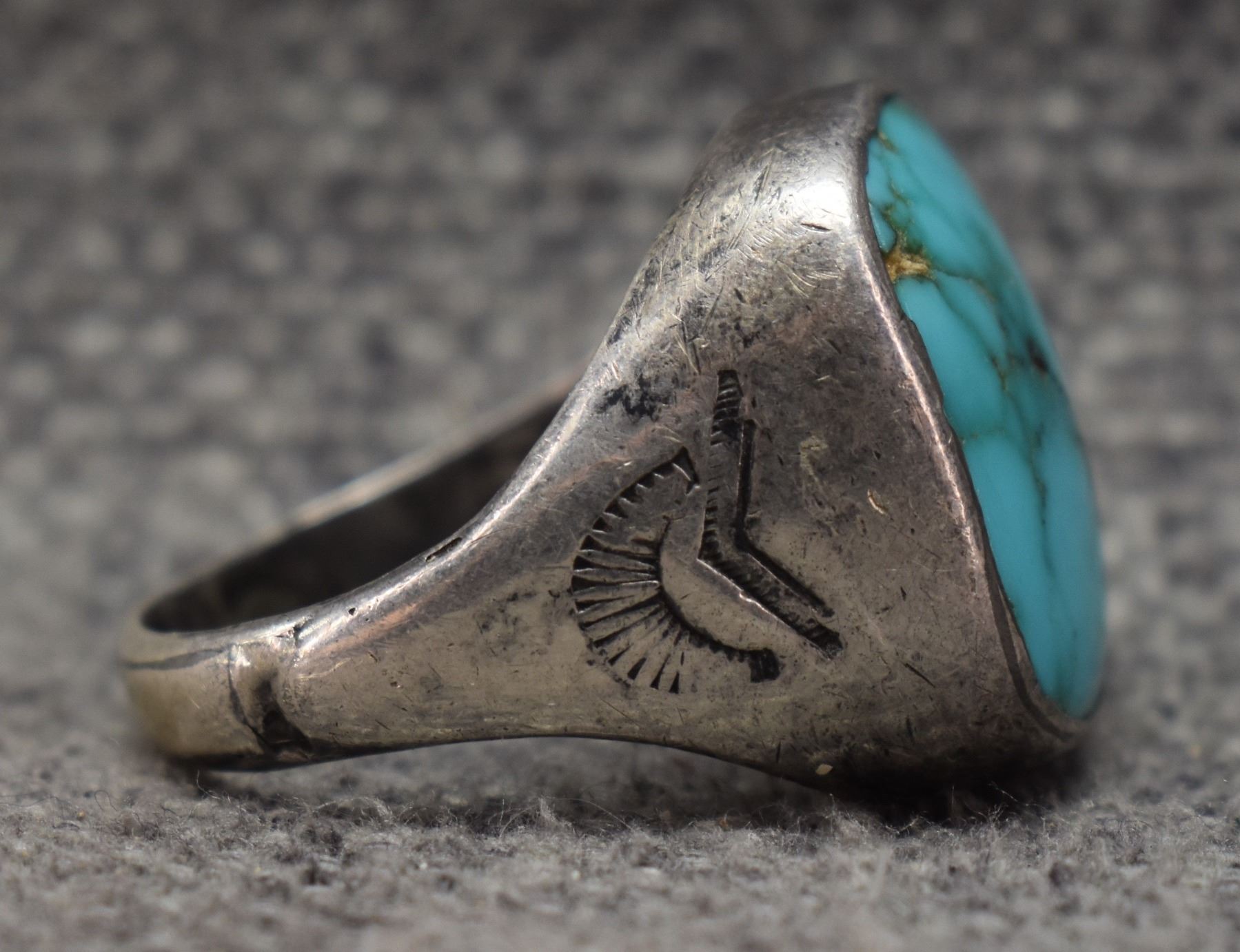 1960's Navajo. Sterling silver and turquoise ring size 10. total weight 14 grams