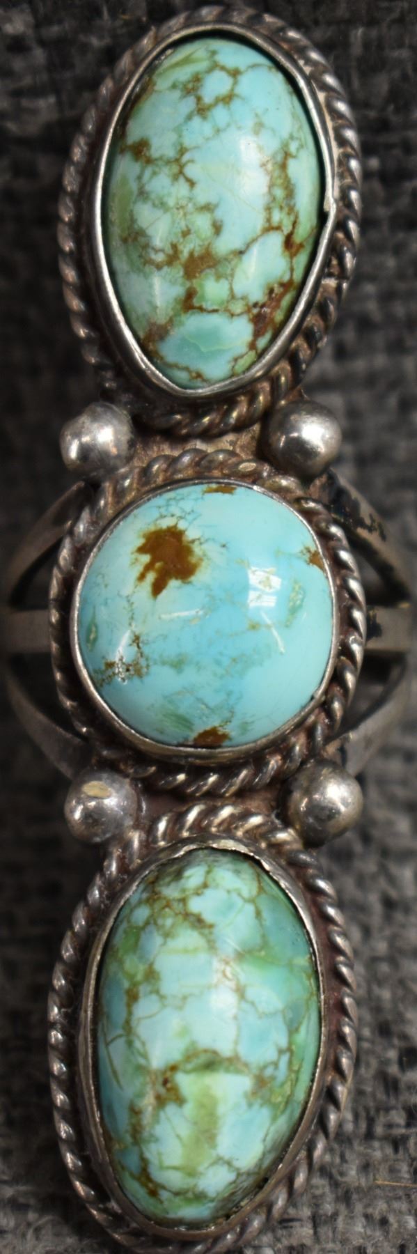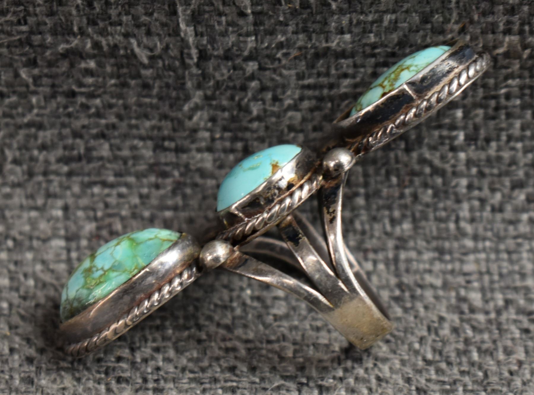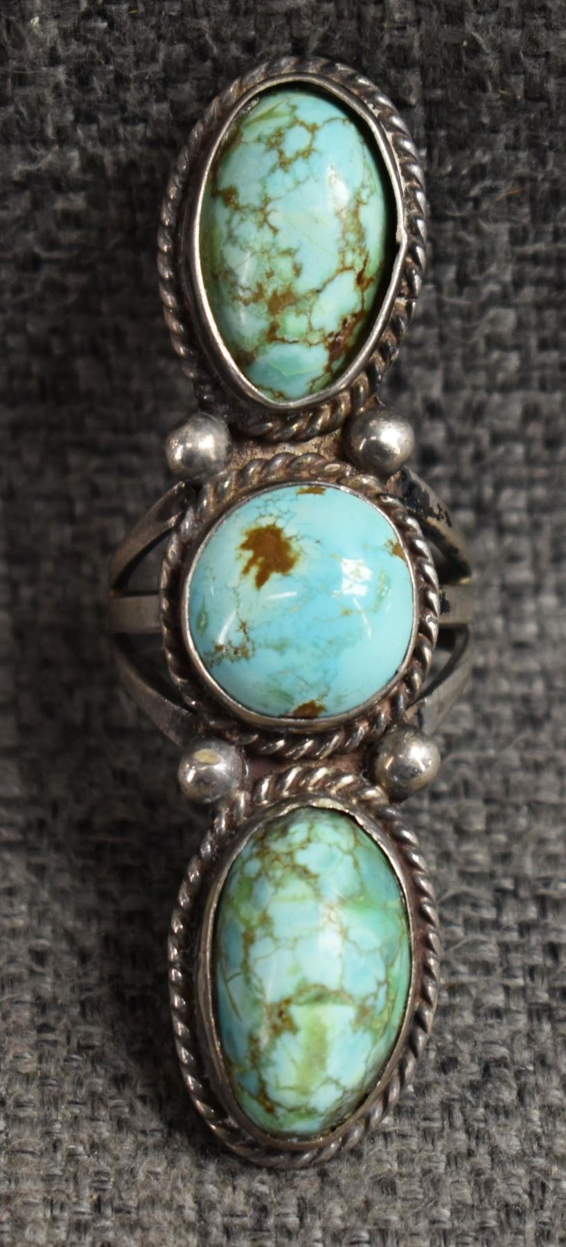 1960's Navajo, sterling silver and turquoise ring size 9. total weight 17 grams