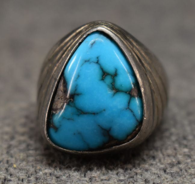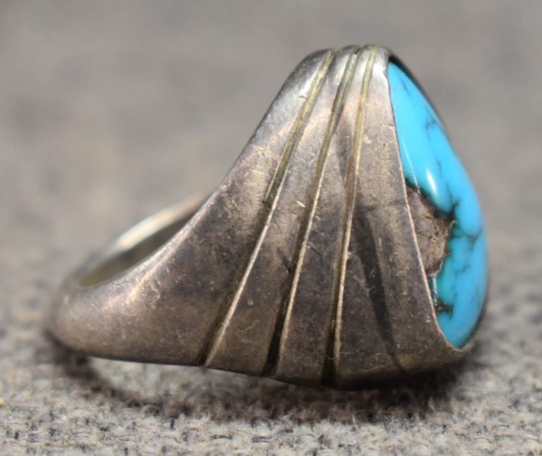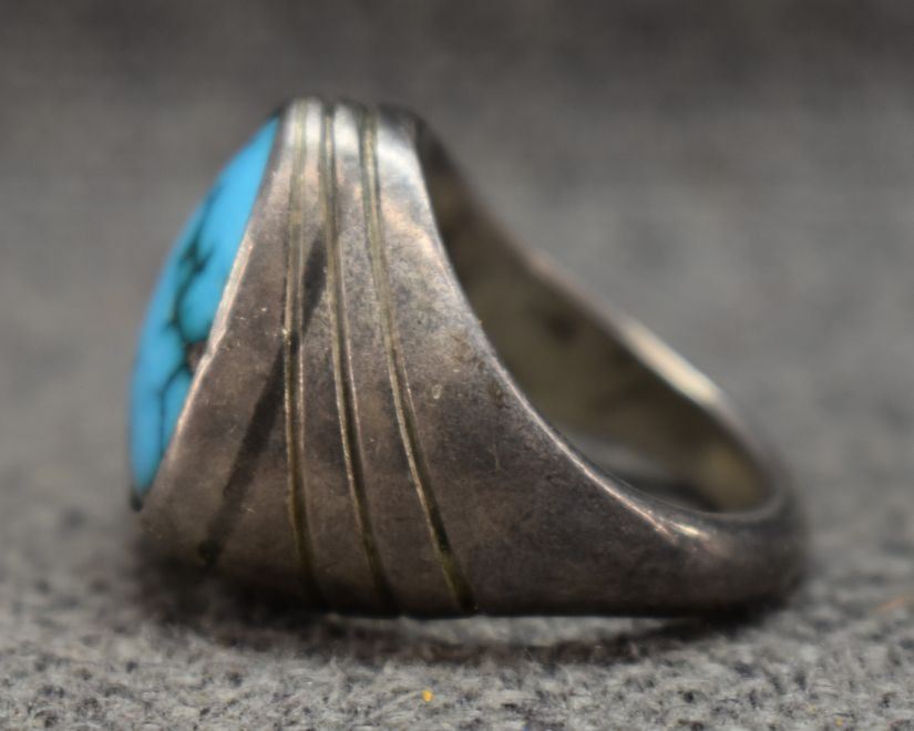 1960's Navajo. Sterling silver and turquoise ring. Size 9. total weight 27 grams