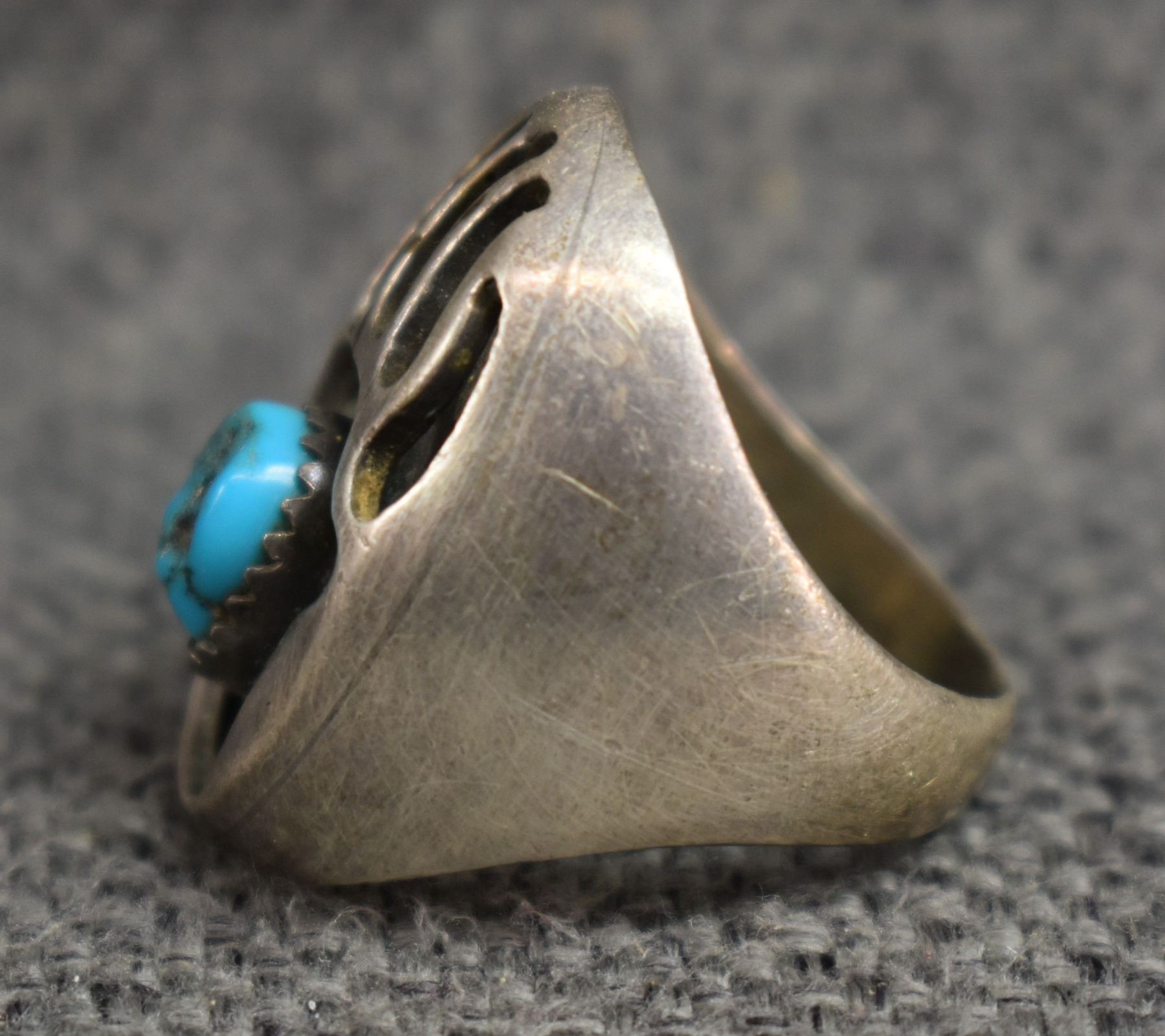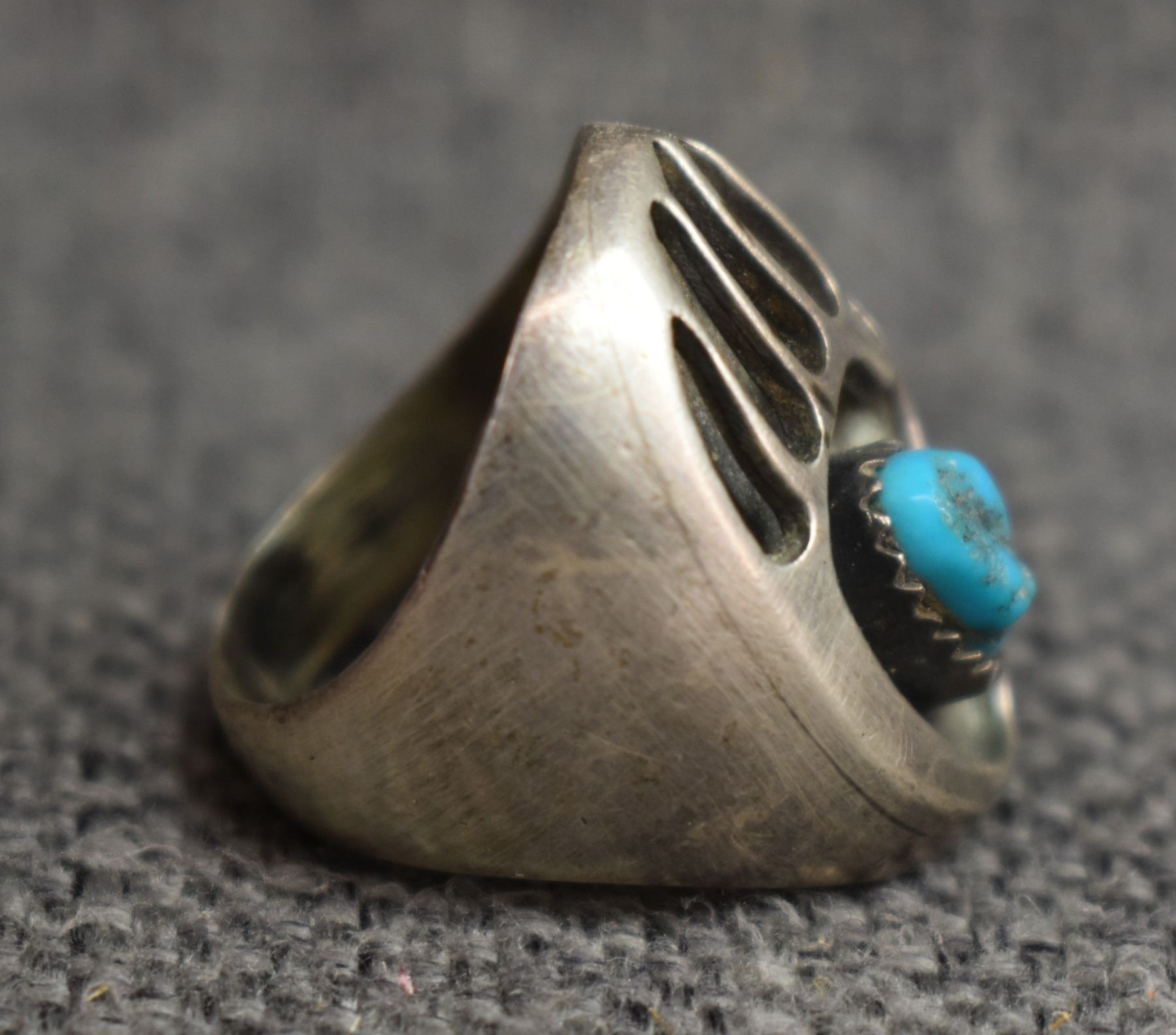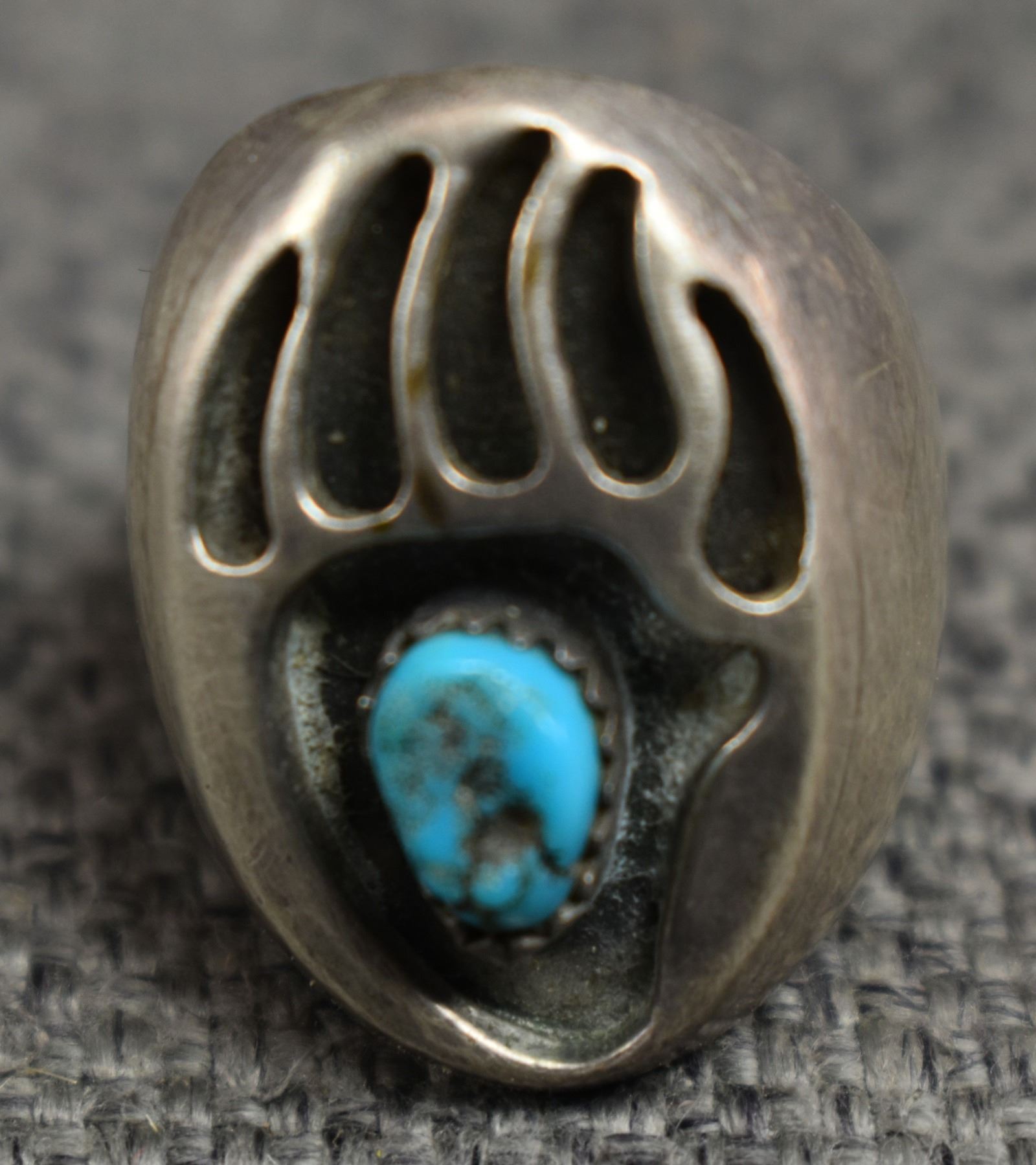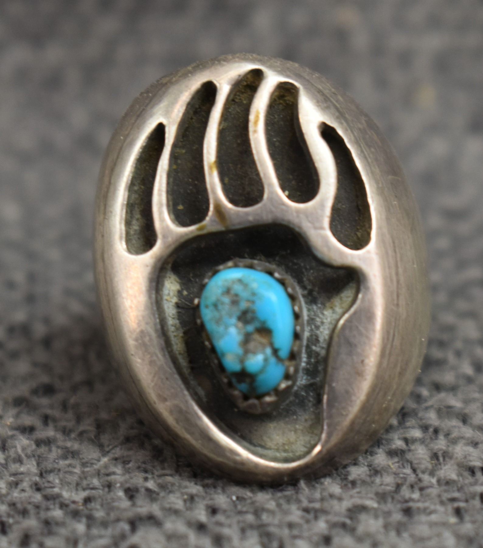 1970's Navajo. Sterling silver and turquoise bear paw design ring. Size 8. total weight 15 grams