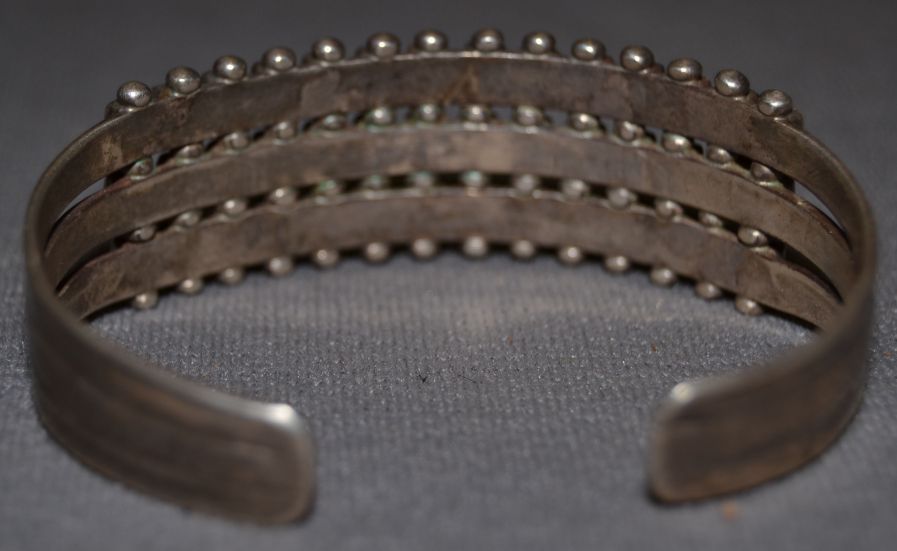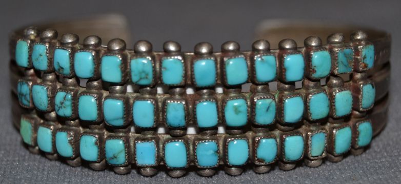 1940s 50s sterling Silver three rows of turquoise stones 5.5" x .75" x 1"