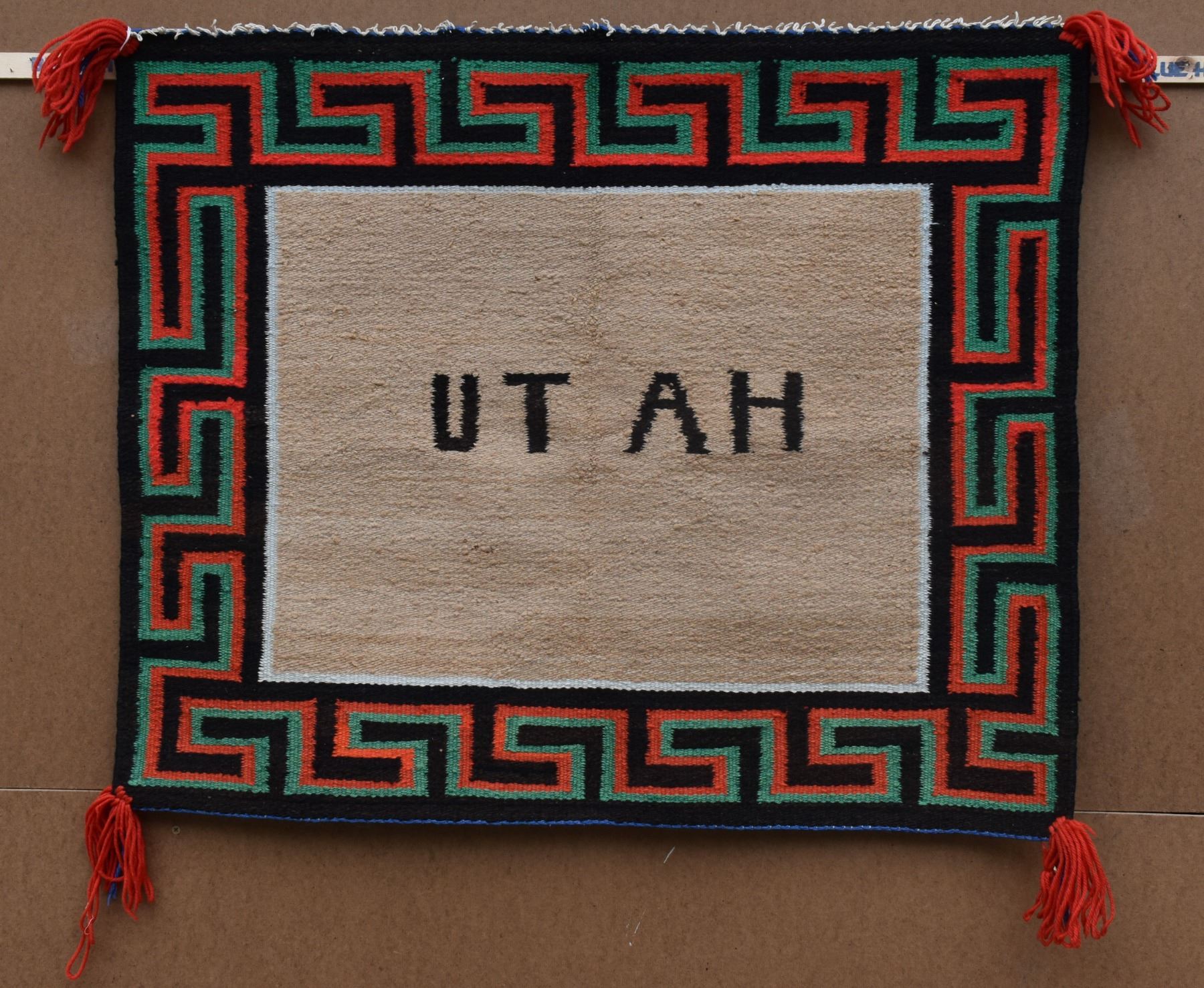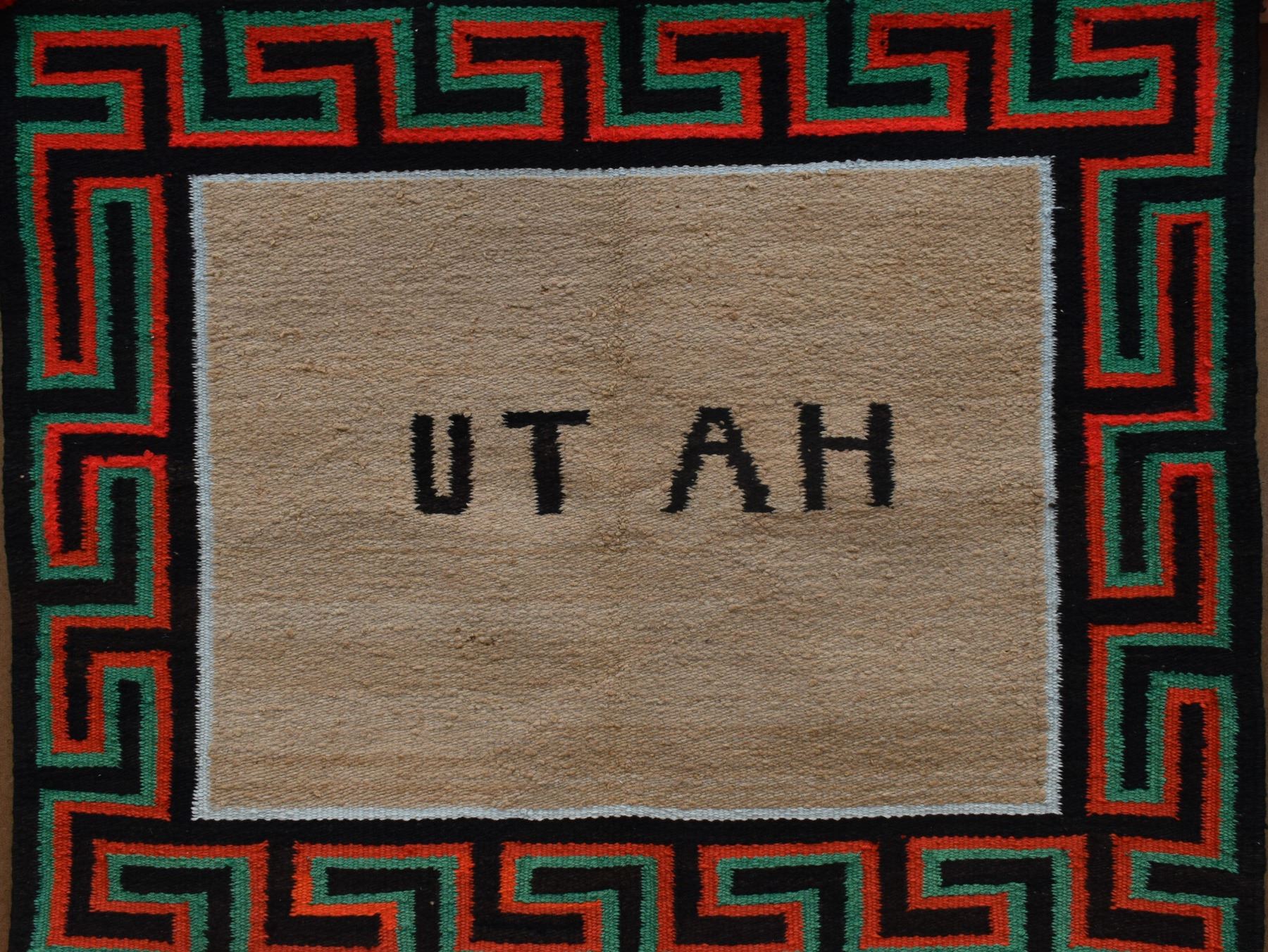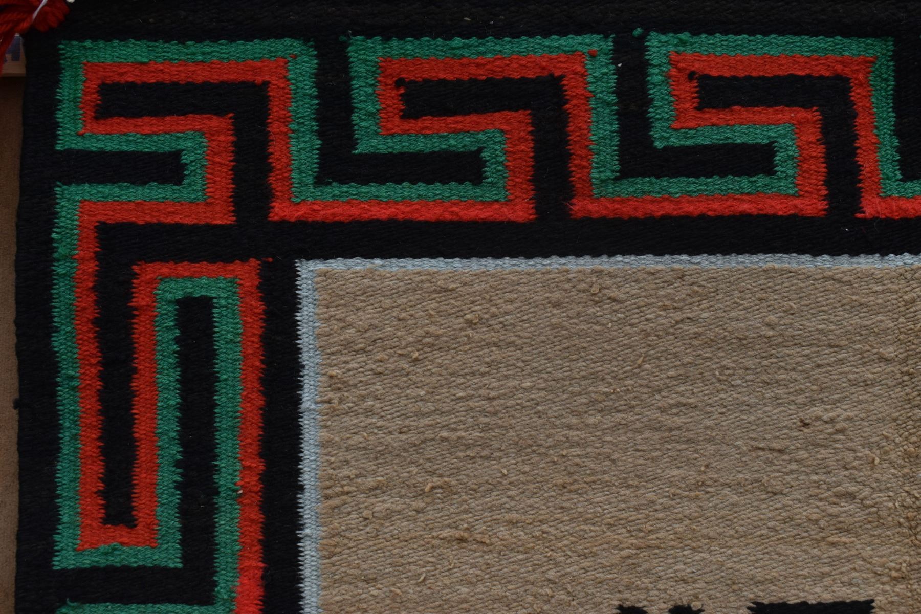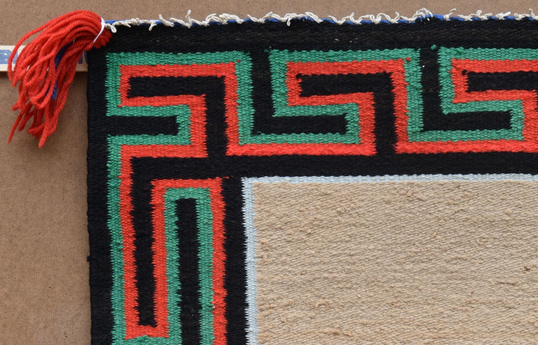 1950's Navajo, hand woven with Utah woven in and Greek key boarder 27" x 32"