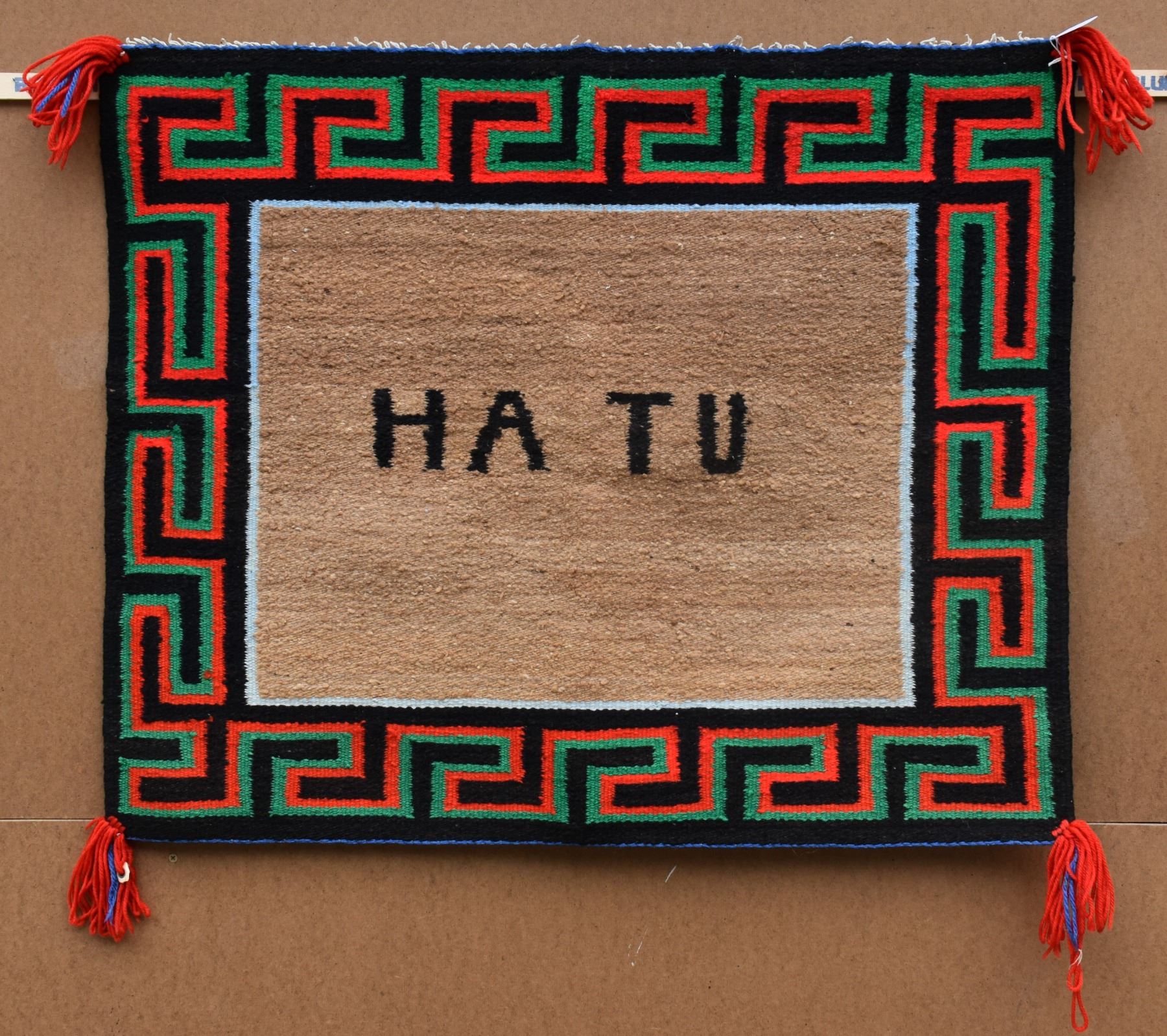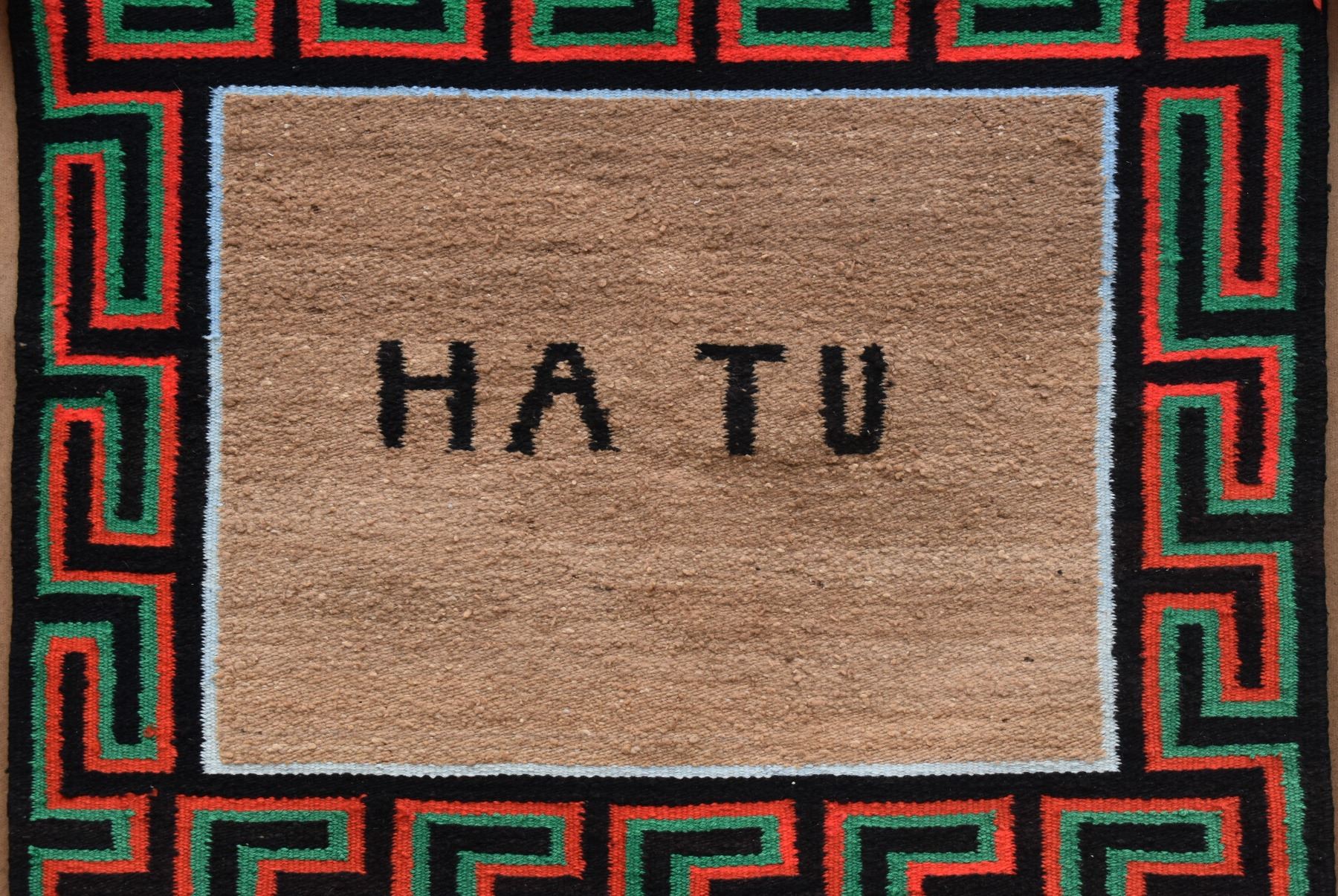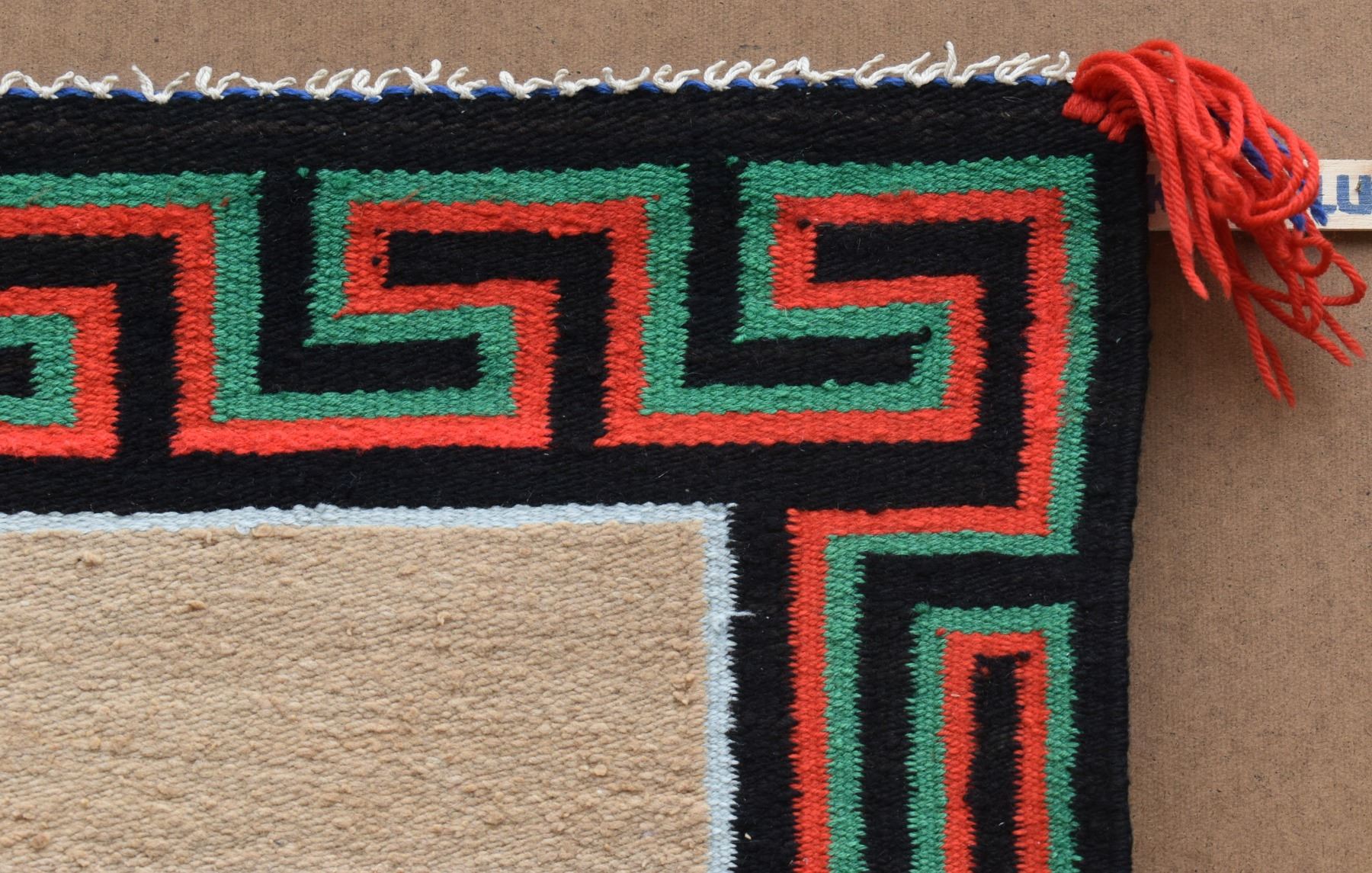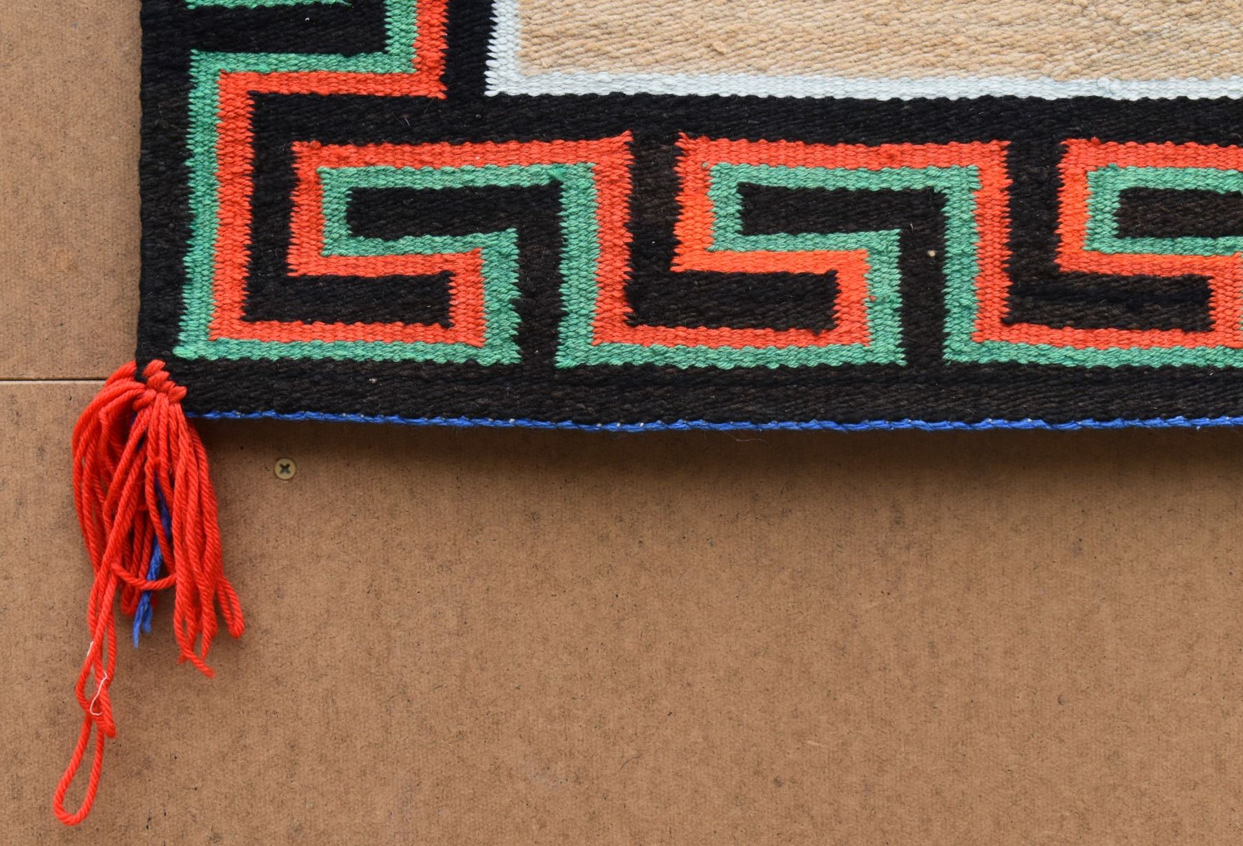1950's Navajo, hand woven with Utah woven in and Greek key boarder 27" x 32"