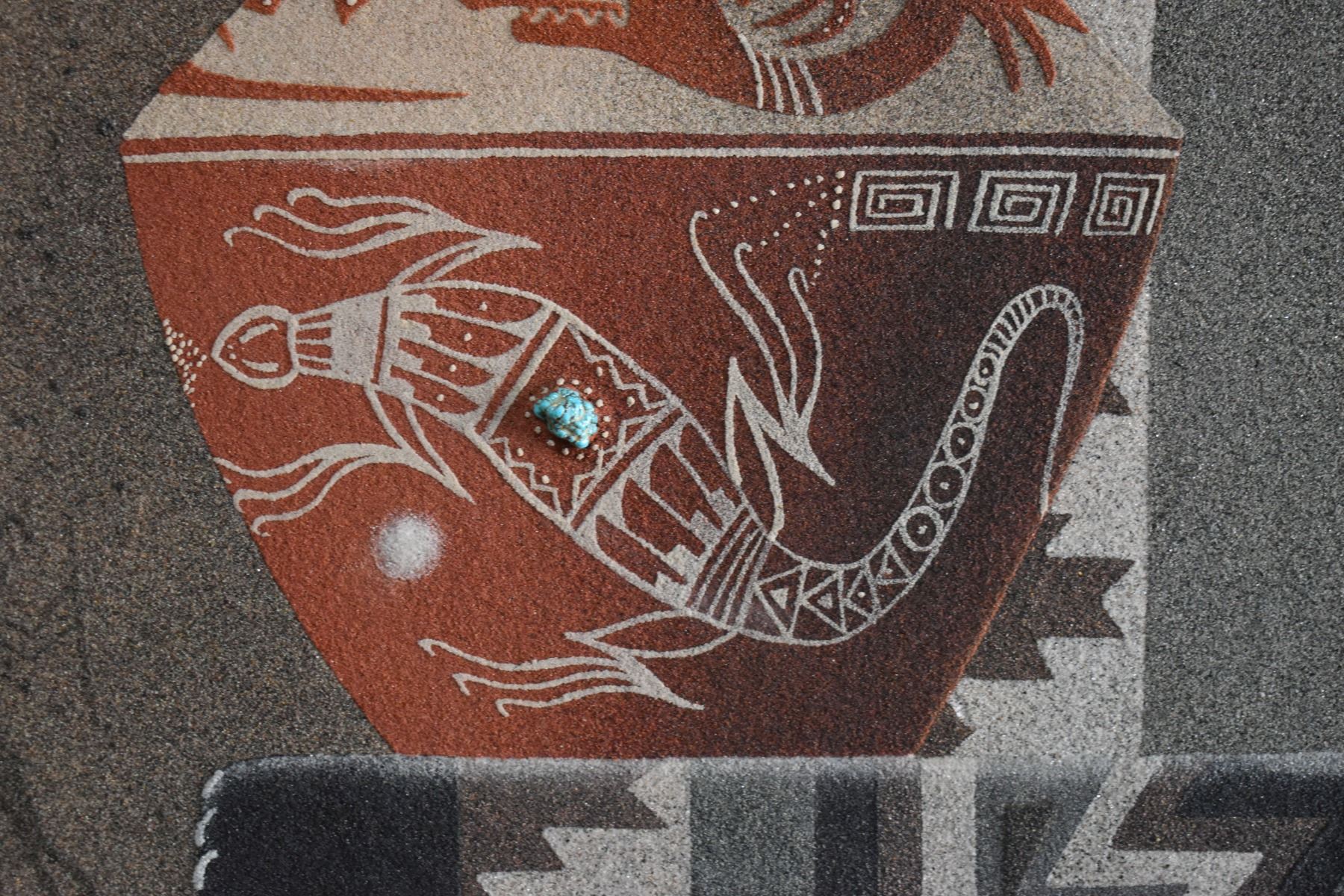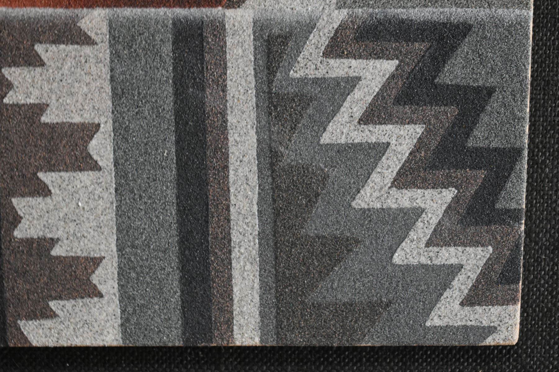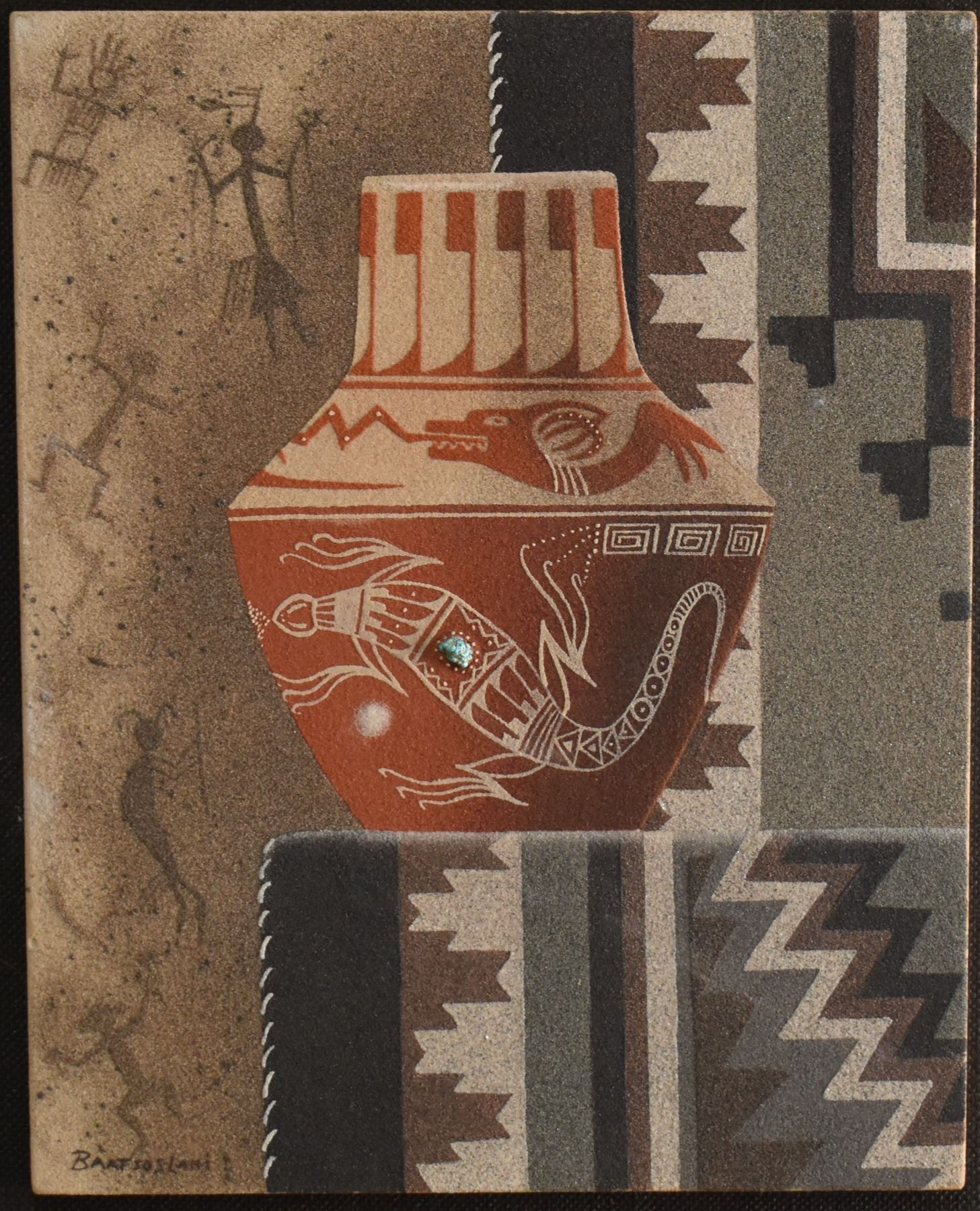 1990-2000's Navajo, hand made sand painting on board signed Baatsoslanii for Eugene Joe 20" x 16" framed to 33.5" x 29.5"