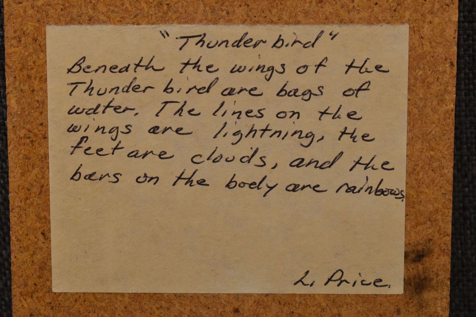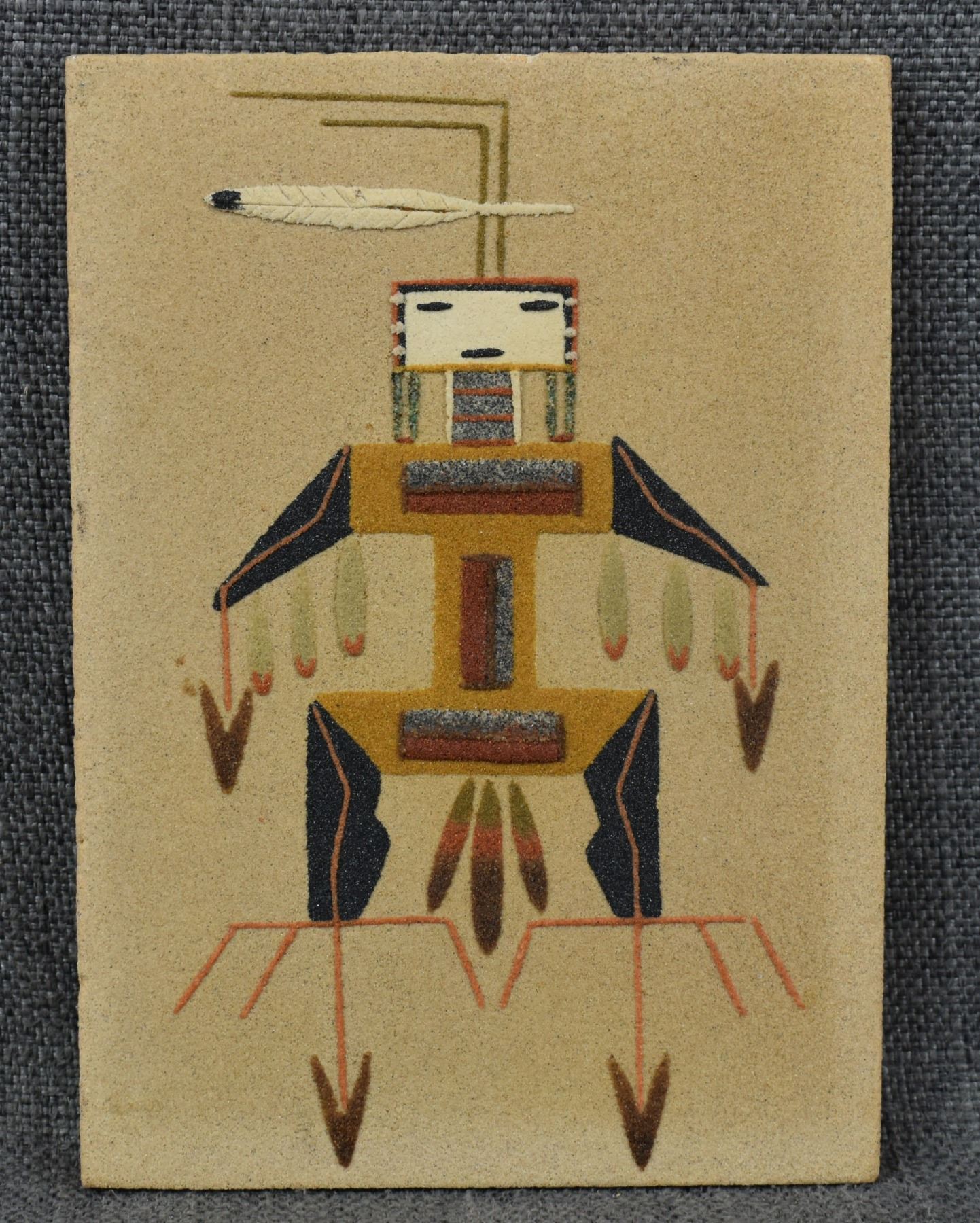 1990's Navajo sand paint depicting thunder bird by Lenora Price. 7" x 5"