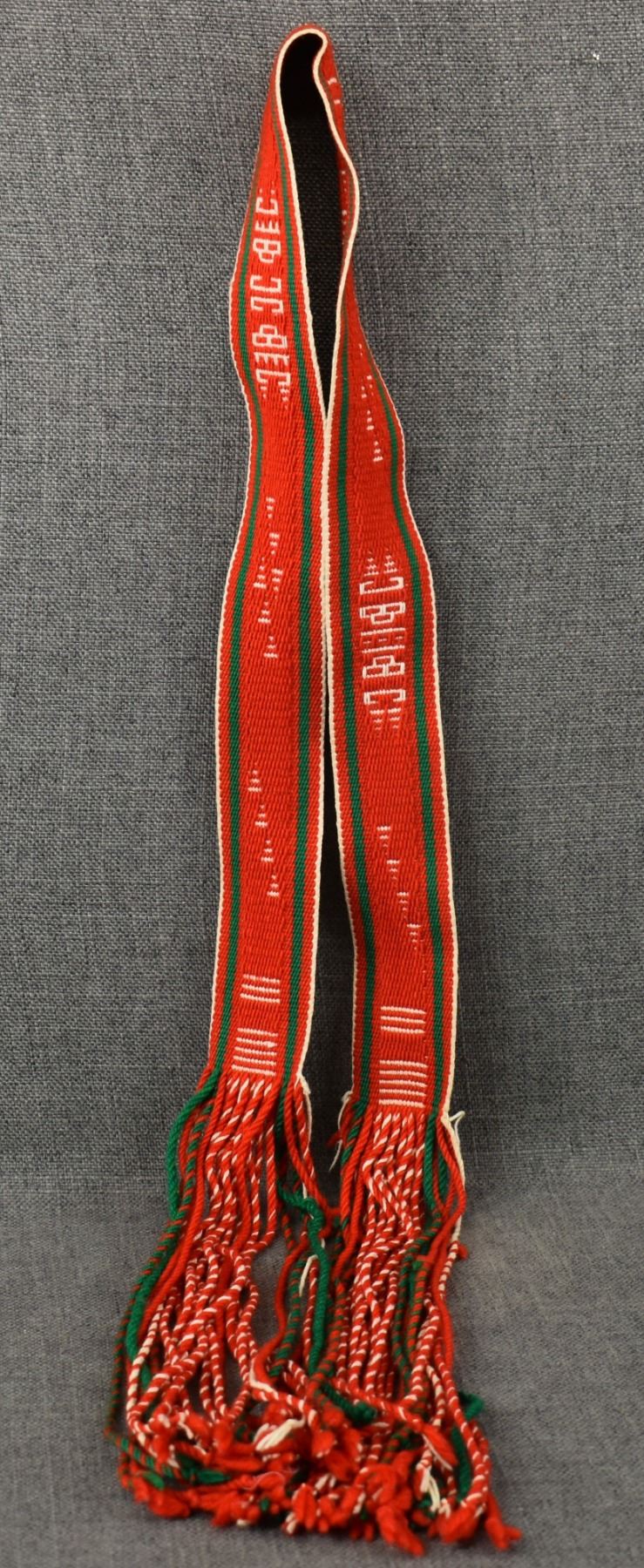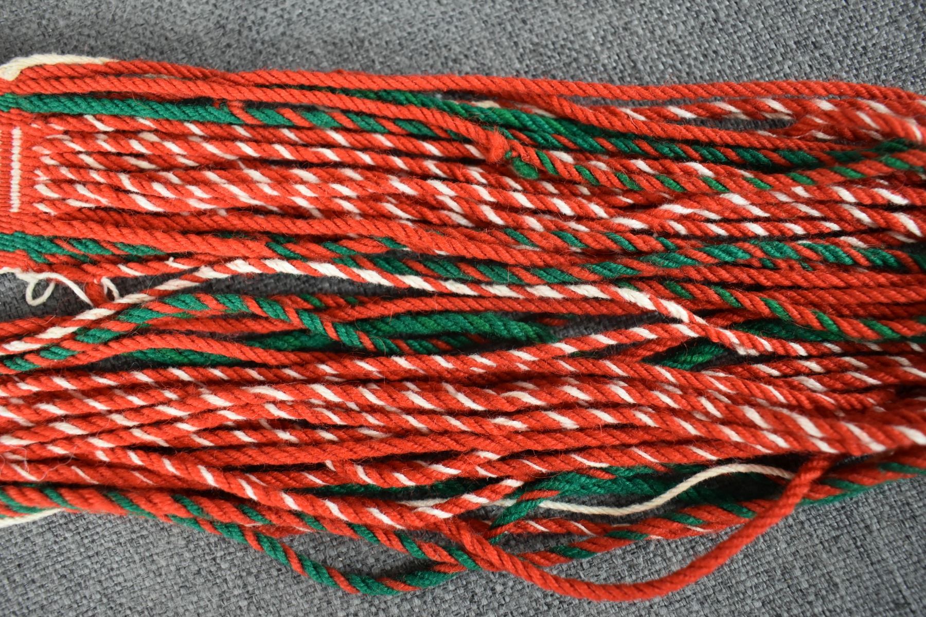 1980's Navajo, hand woven geometric design 38" x 2" plus 12" fringe