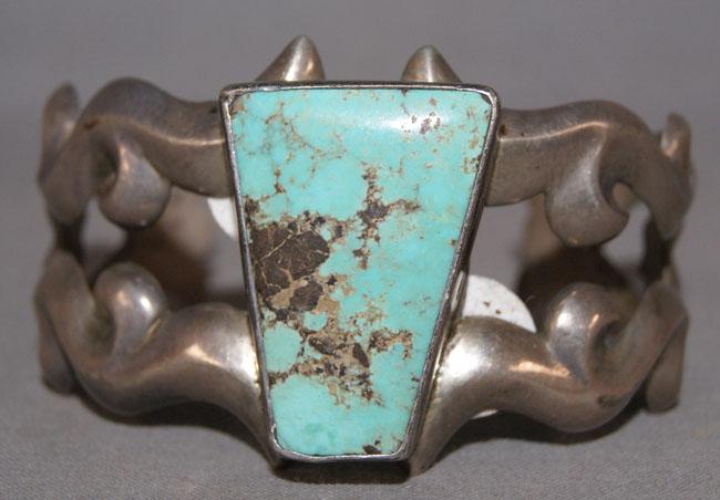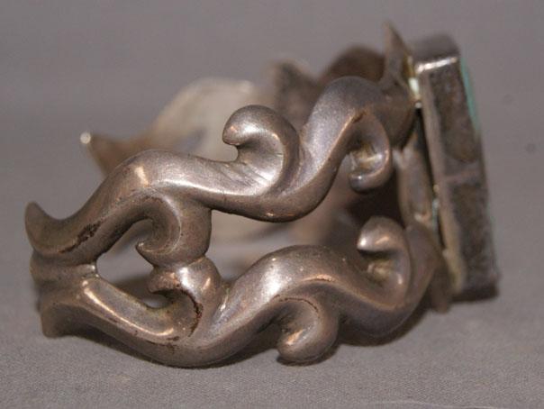 1960's silver and turquoise cast design, 1.5" X 5.25" X 1.5"
