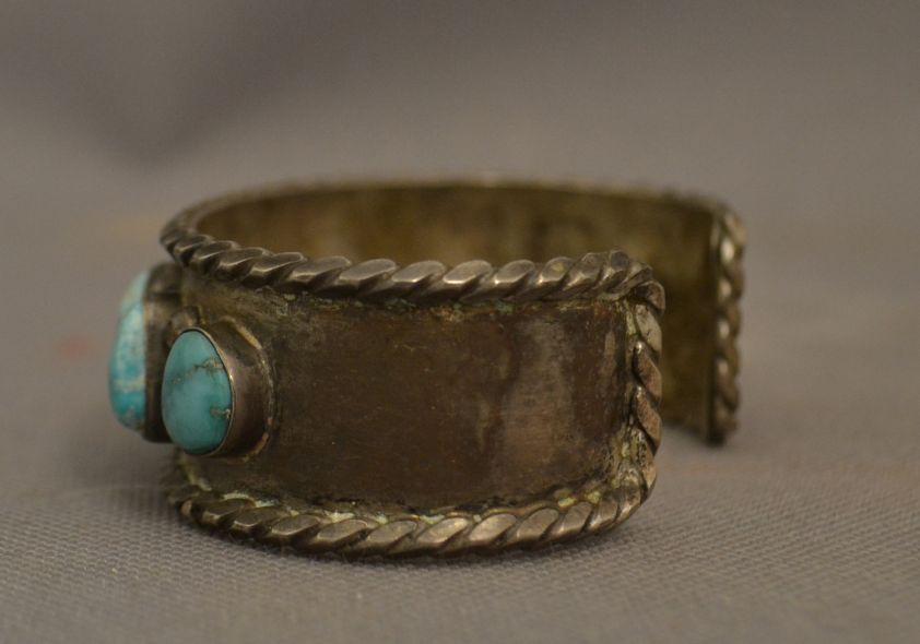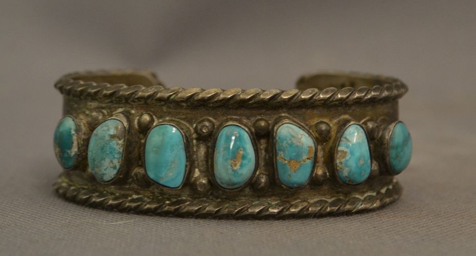 1960s 70s sterling Silver seven turquoise stones one is cracked 5.75" x 1" x 1"