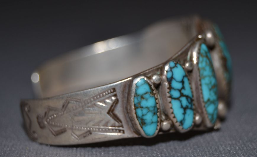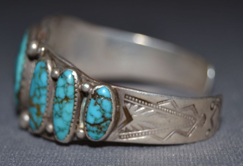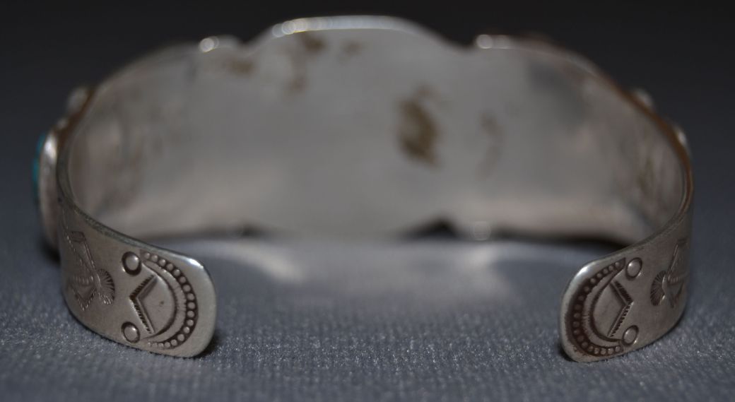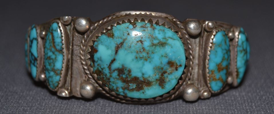 1940s 50s sterling silver stamped design 7 turquoise stones 5.25"x1"x1.25"