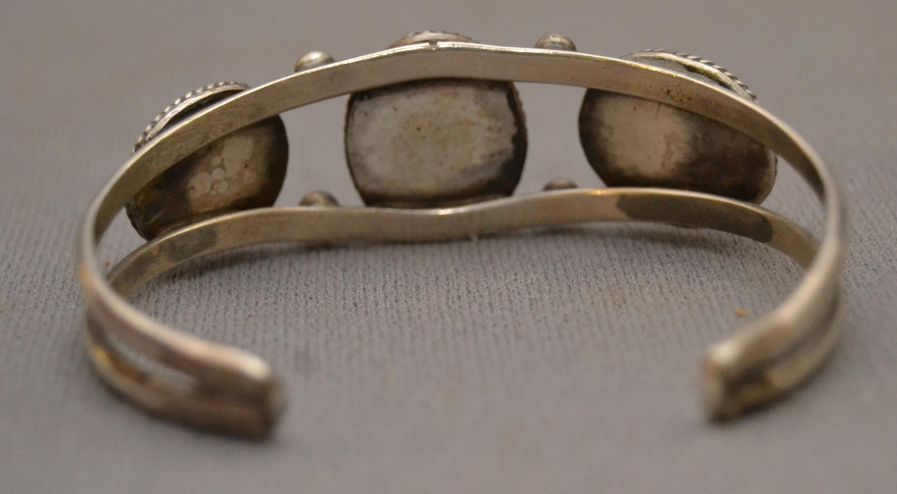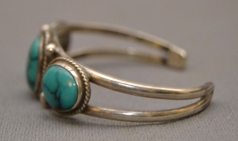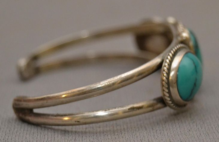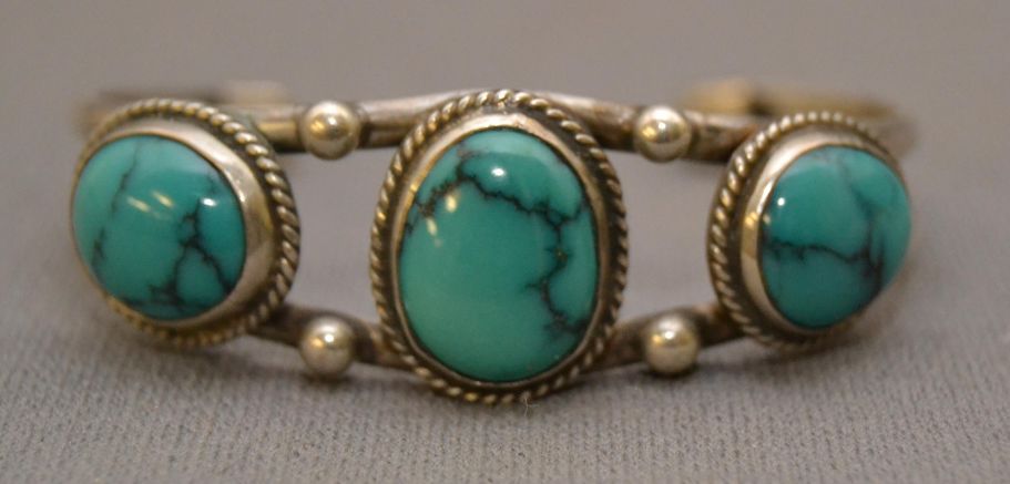 1980s 90s sterling silver 3 turquoise stones 5"x.75"x1.25"