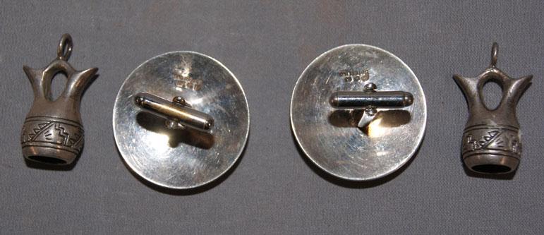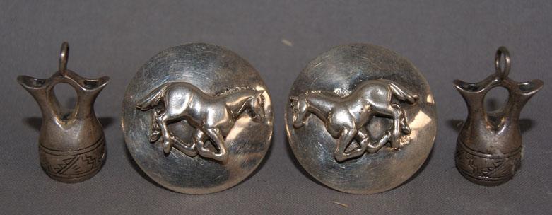 1970s-80s pair of horse cufflinks and 2 silver pot charms, largest 1.25" long