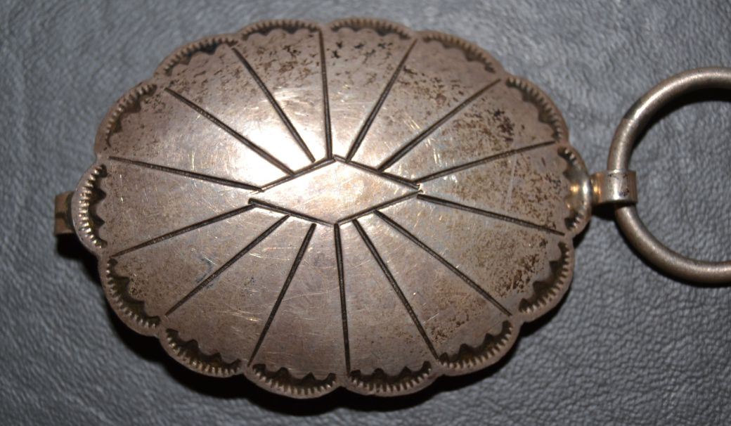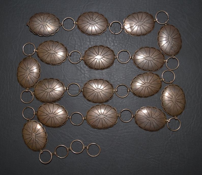 1960's sterling silver link style 16 oval Conchos with stamped design 1.5" x 2" 47" total length