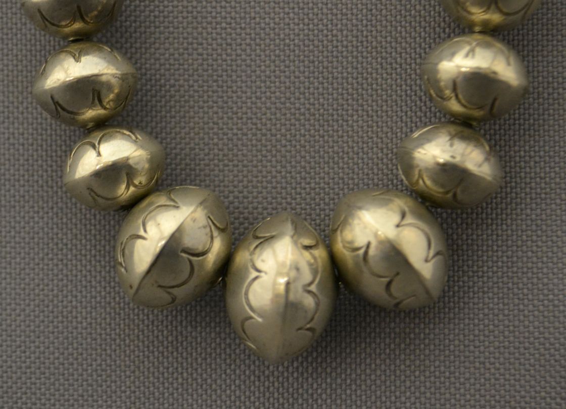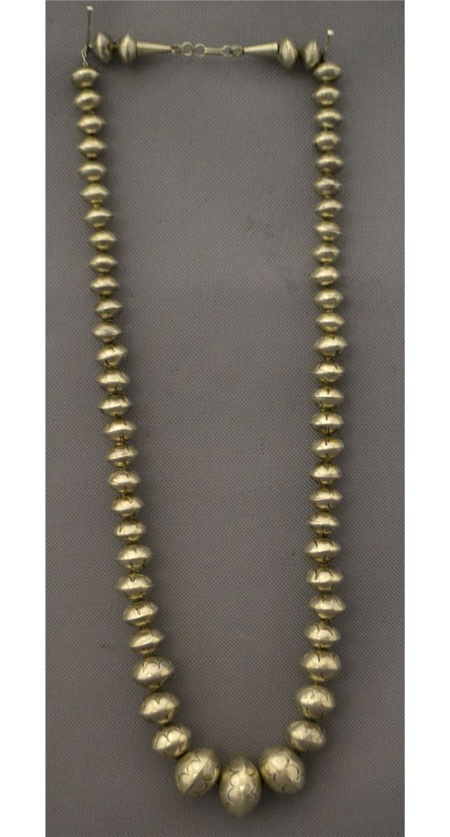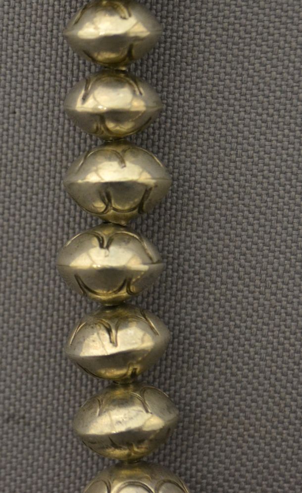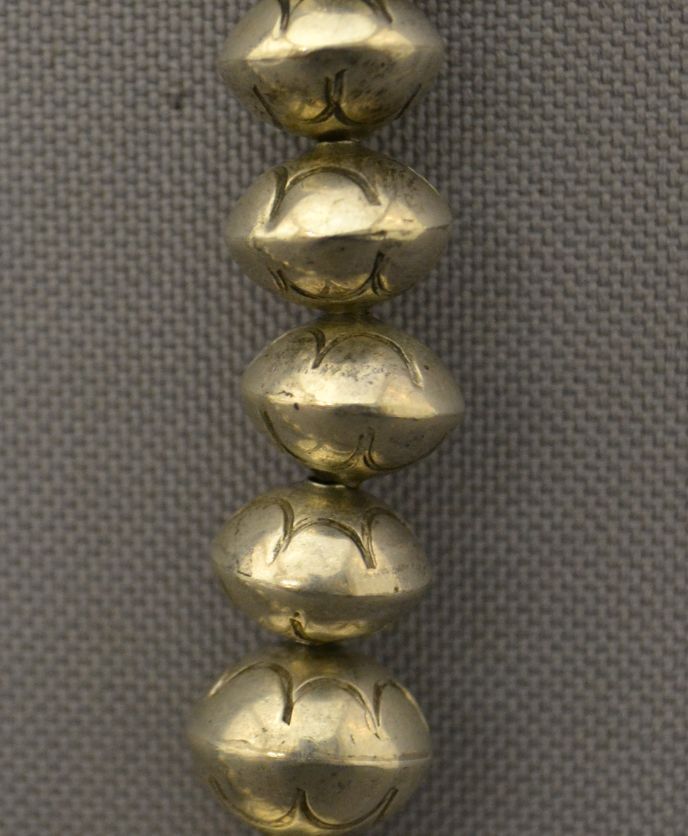 1960s 70s sterling Silver graduated hand stamped beads 24 inches long