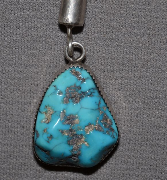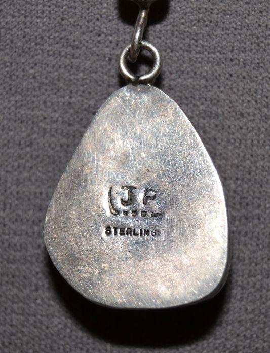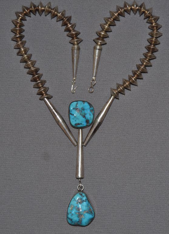 1970s 80s sterling silver 2 turquoise stones signed JP and logo 15" long