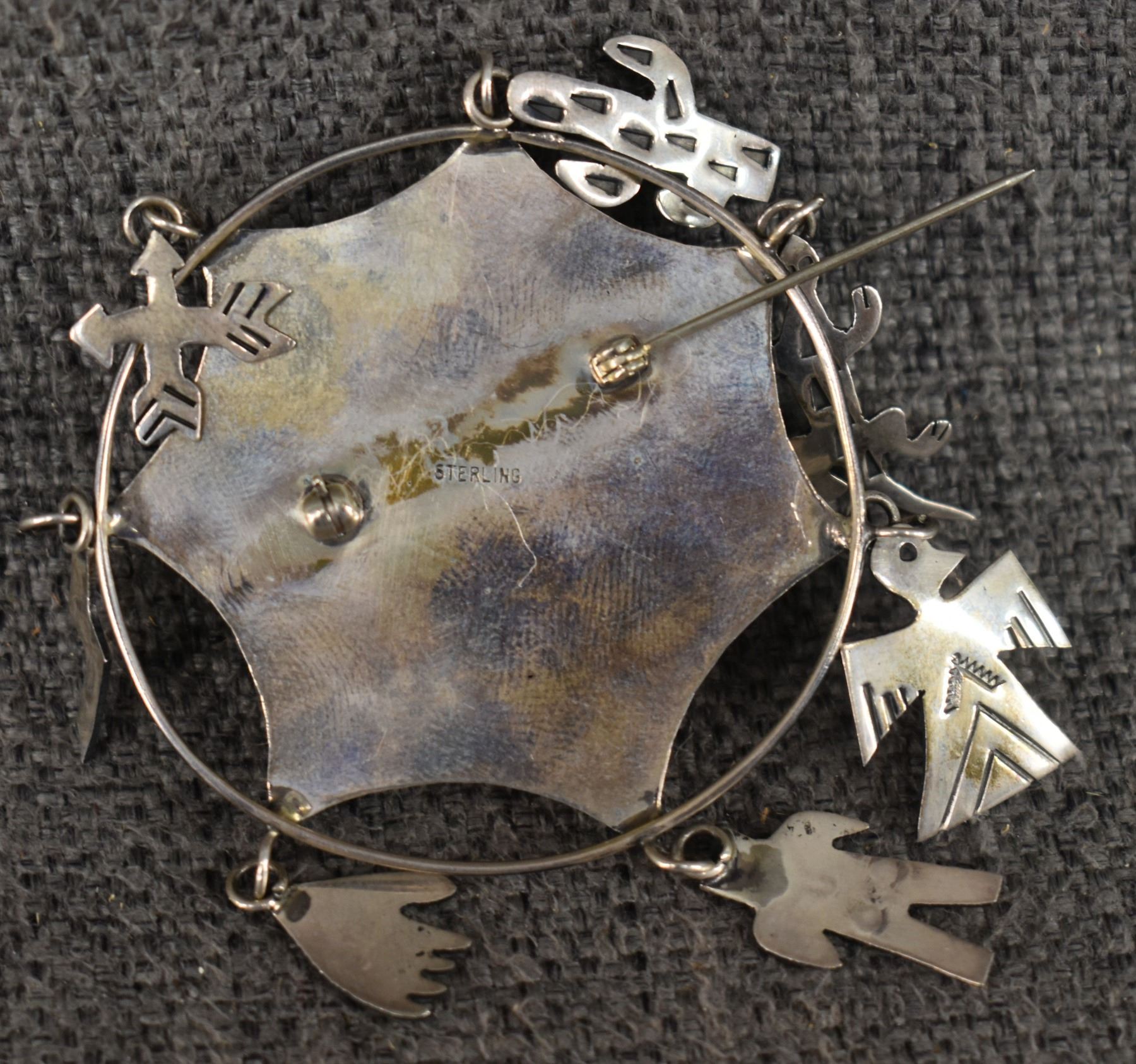 1980's Navajo. Sterling silver pin. 3'' dia. Total weight 15 grams