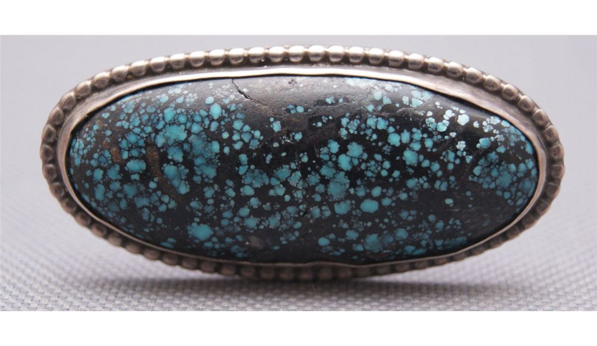1970s sterling silver and spider web turquoise stone is cracked, size 8.5