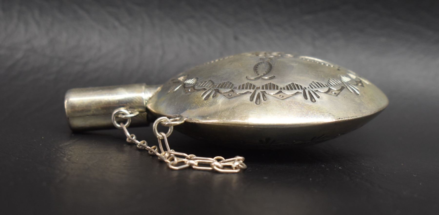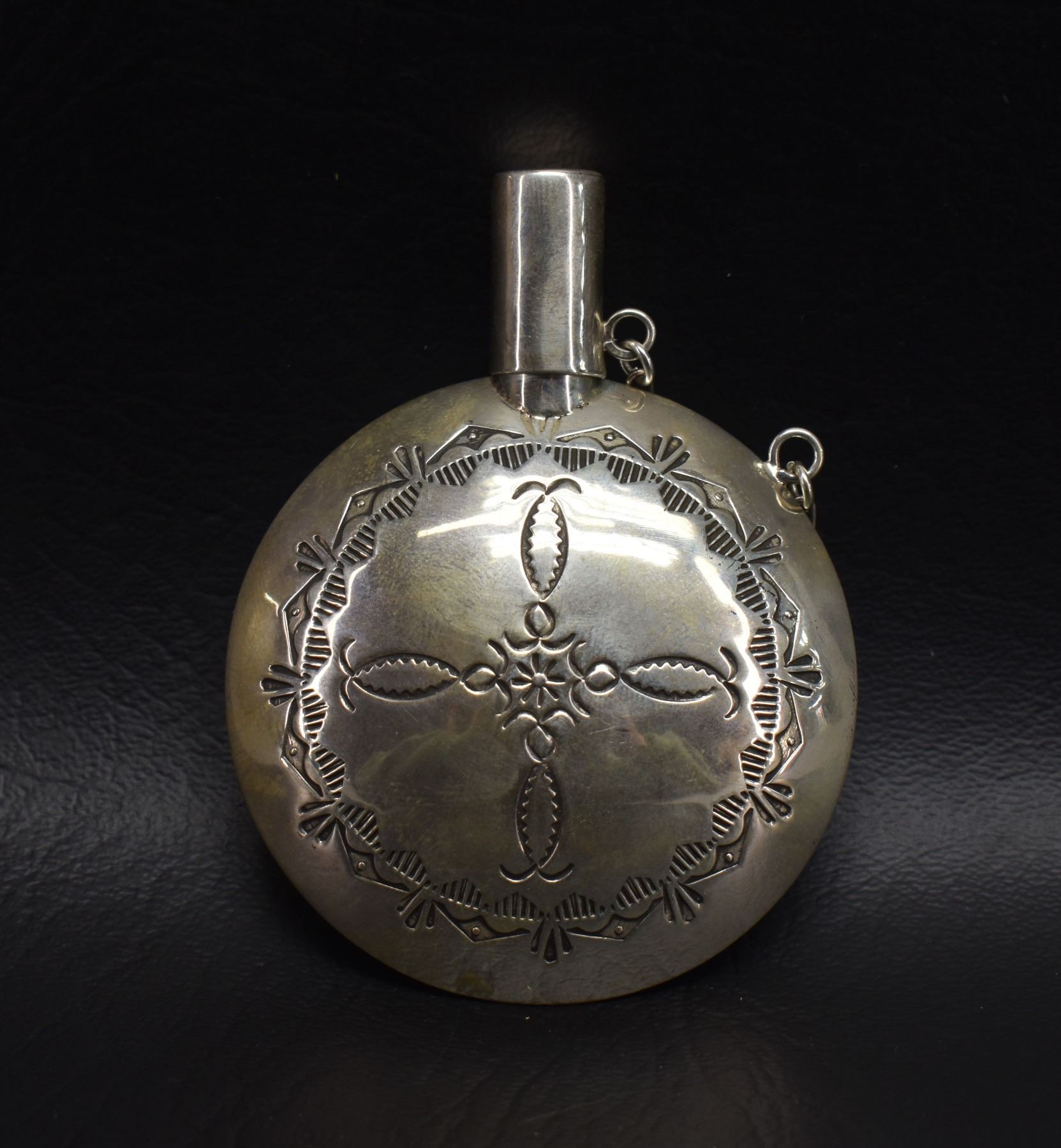 1970's Navajo. Sterling silver Tabacco canteen, 3.25'' x 2.5'' x .75''. Total weight 47 grams