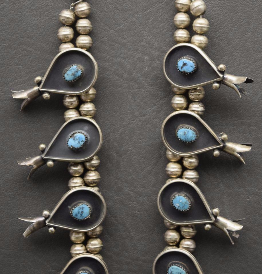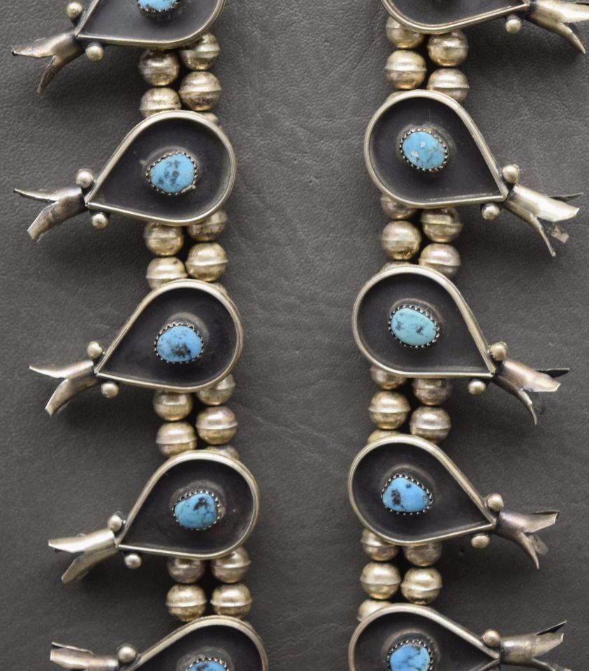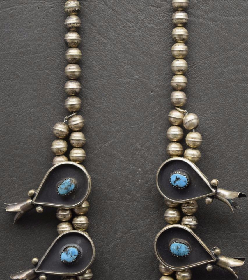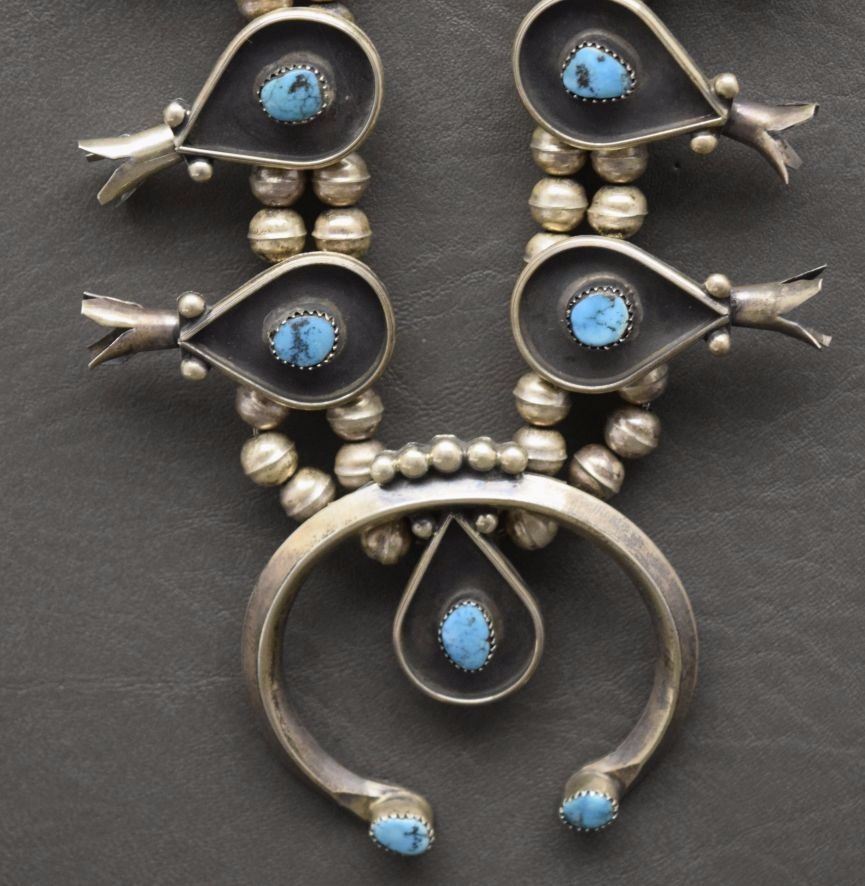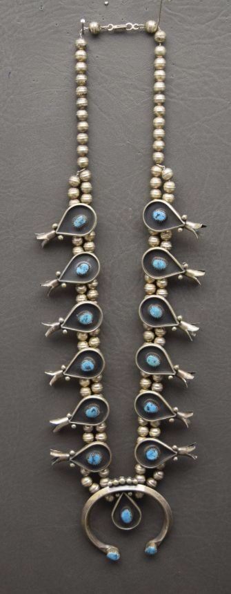 1970's sterling silver and turquoise necklace26'' long and Naja 2.5'' x 2.75'' total weight 189 grams