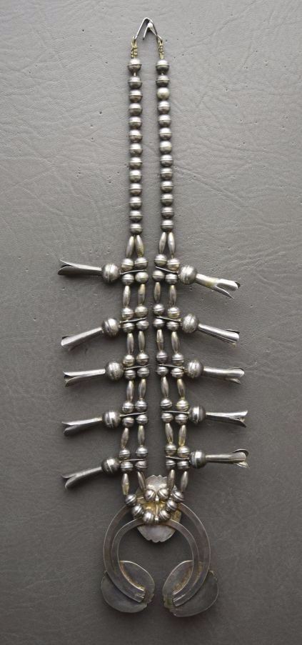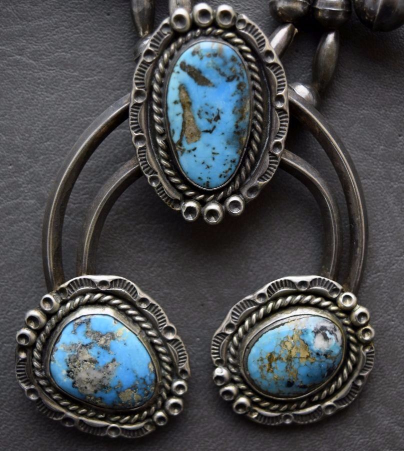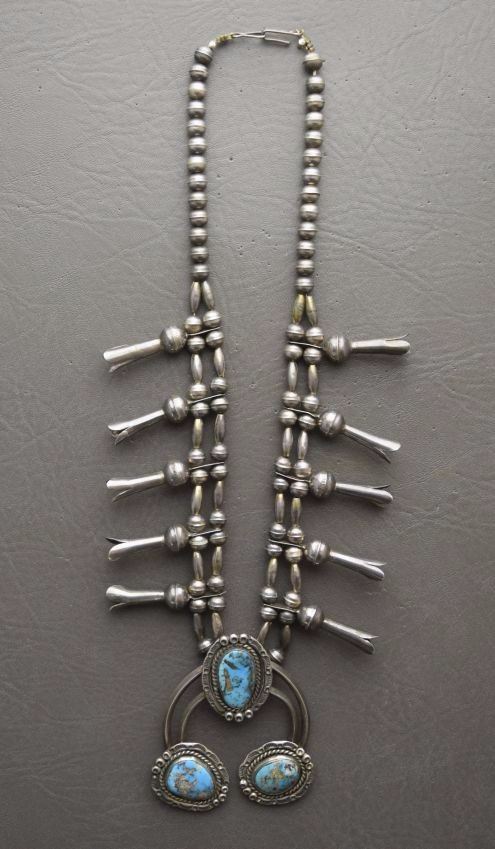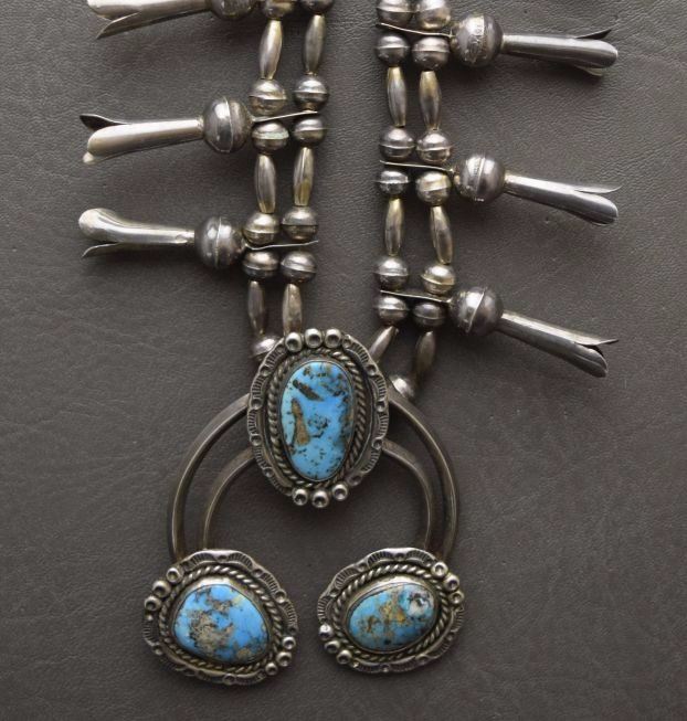 1970's sterling silver necklace 22'' long and sterling and turquoise naja 3'' x 2.75'' total weight 155 grams
