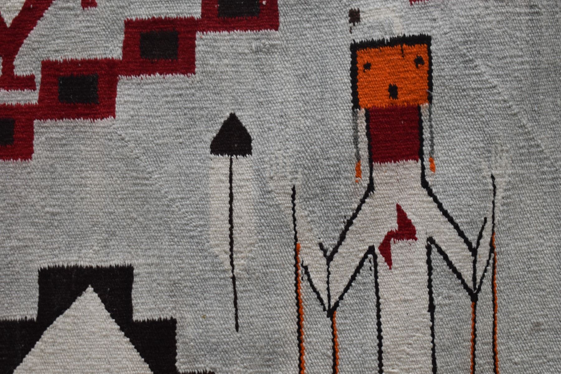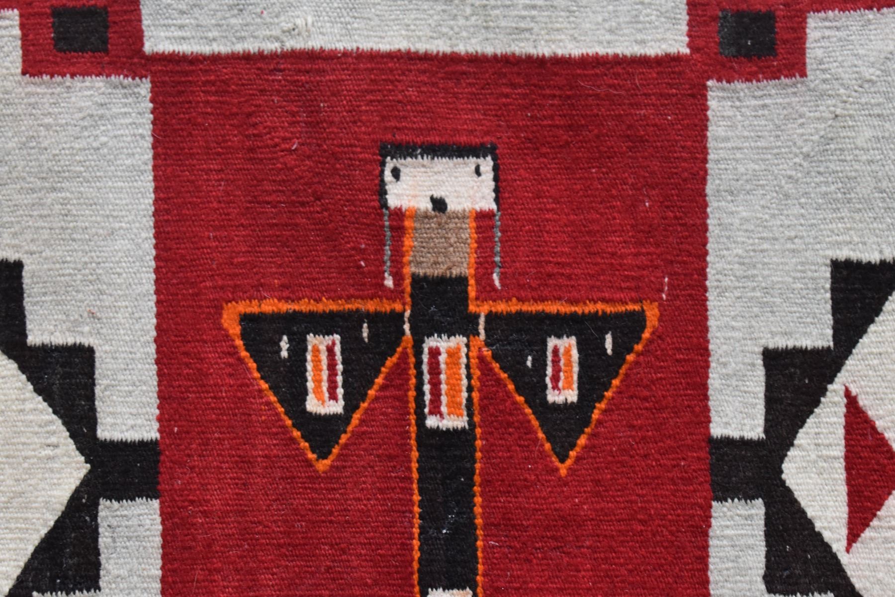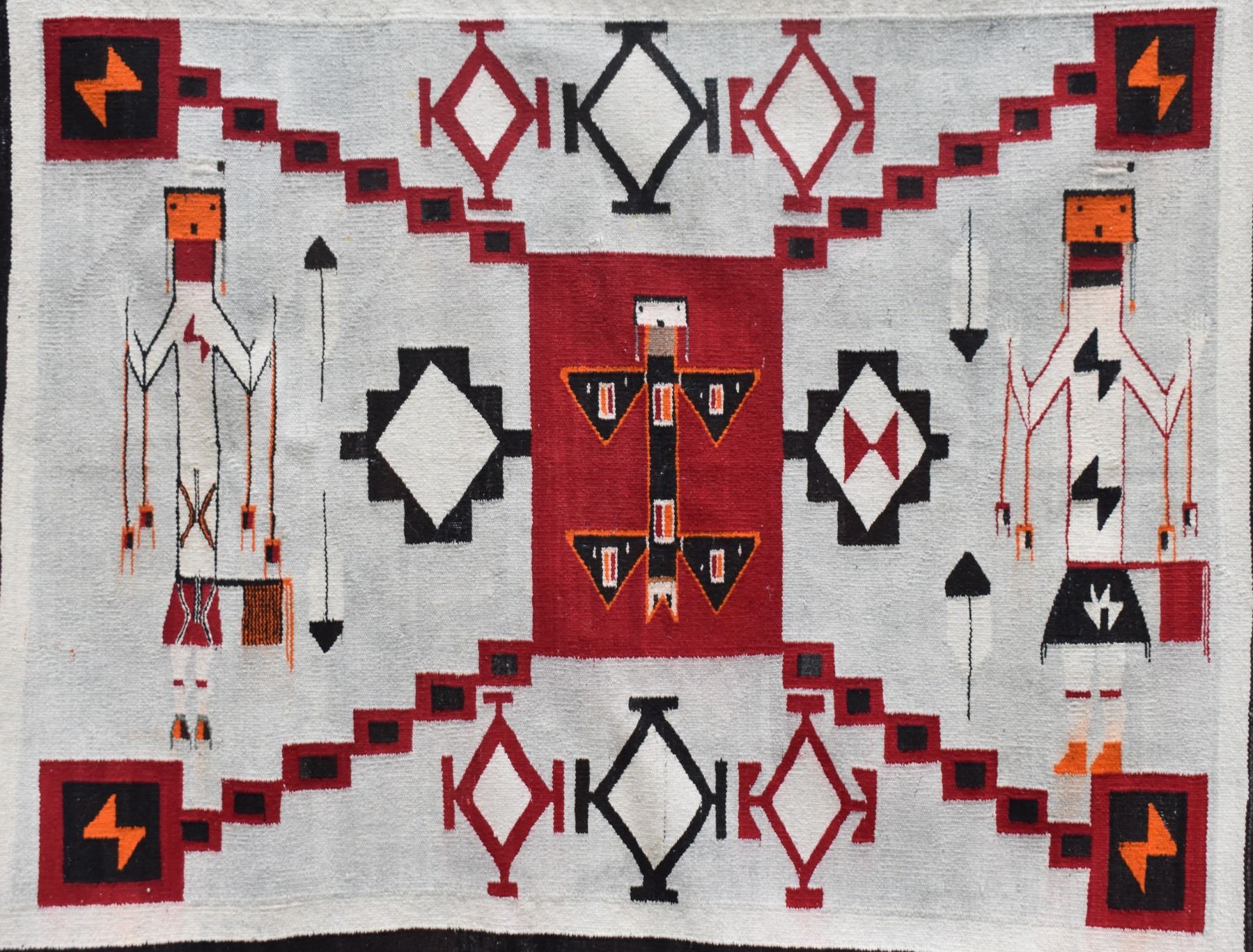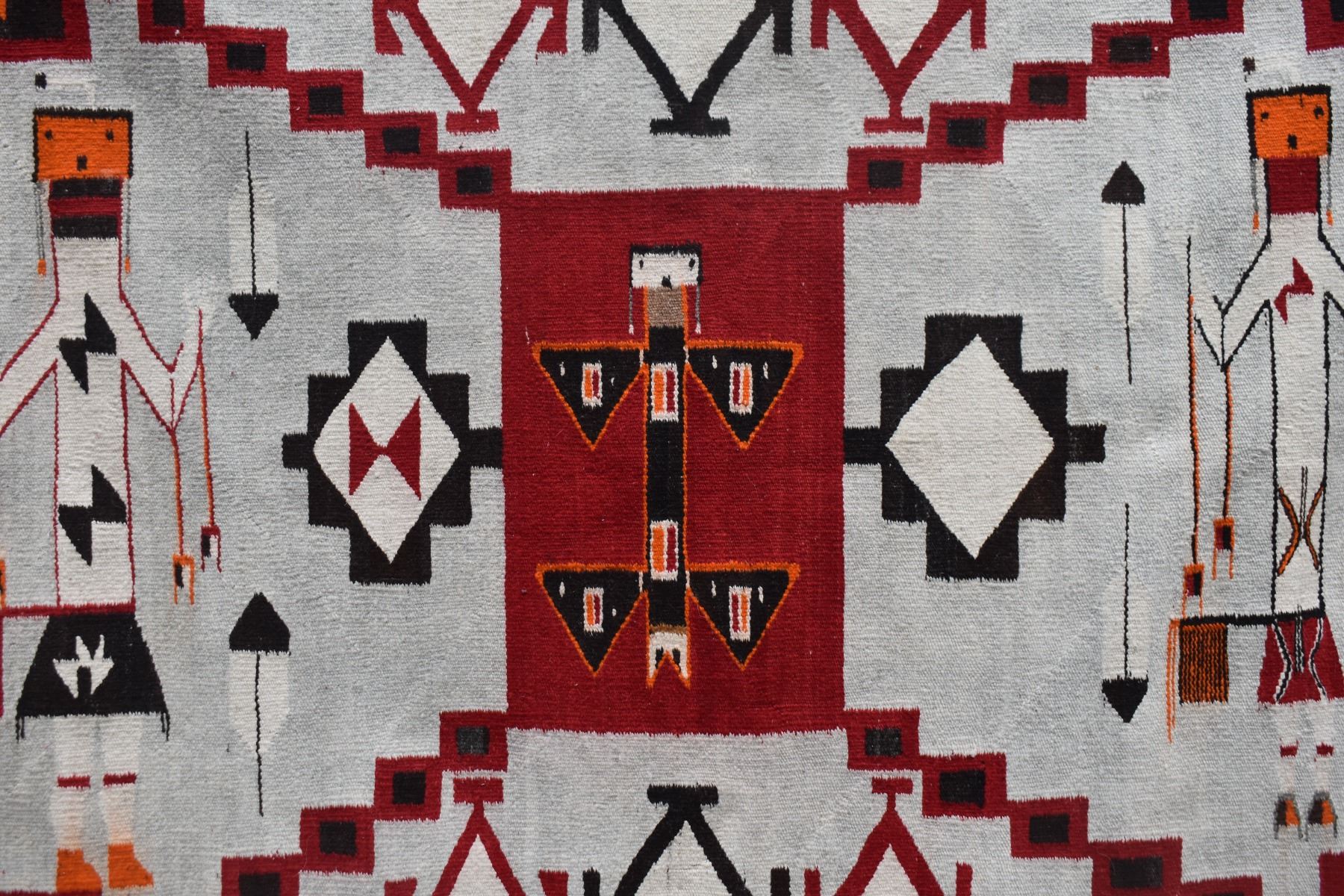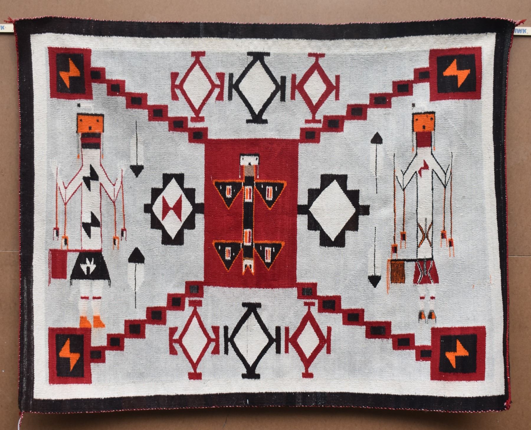 1940-50's Navajo, hand woven storm pattern Yei design 42" x 54"
