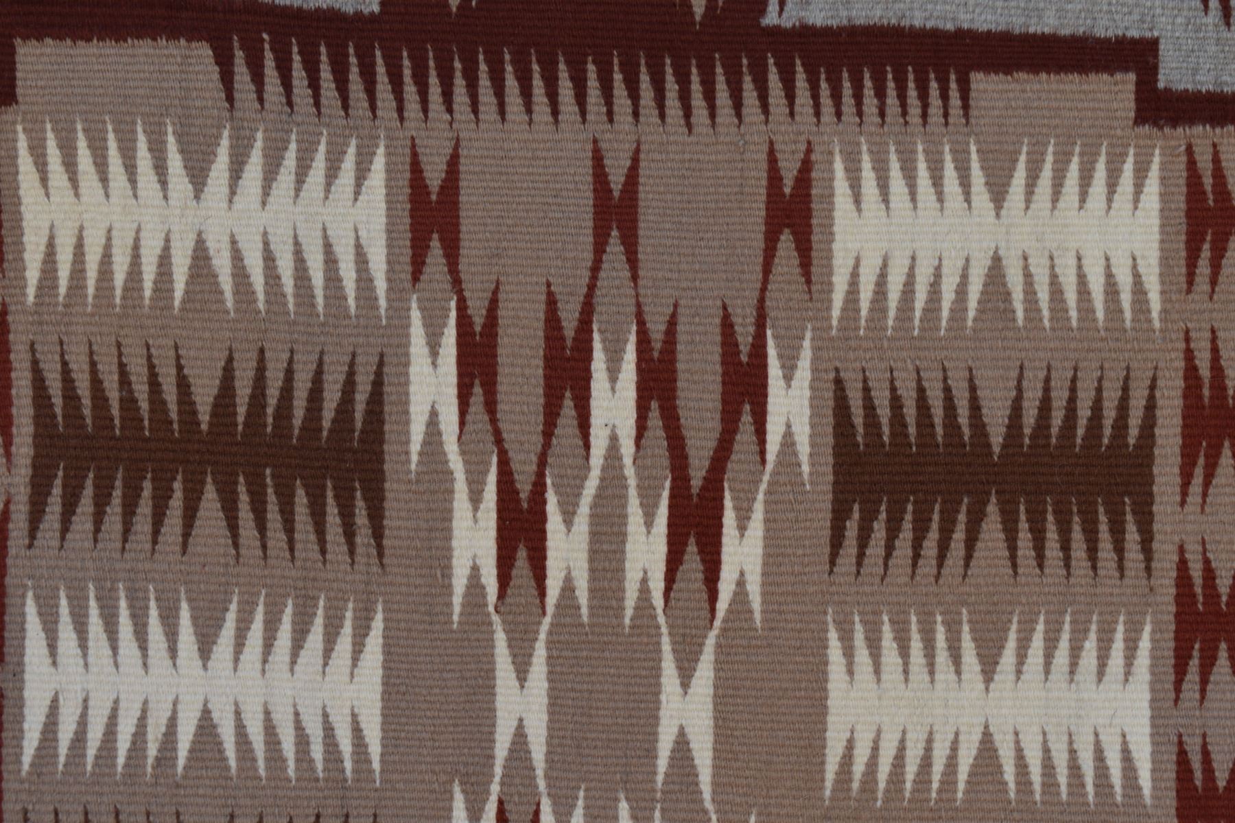 1980's Navajo. Hand woven busy design textile by Bessie Tso. 51'' x 39''