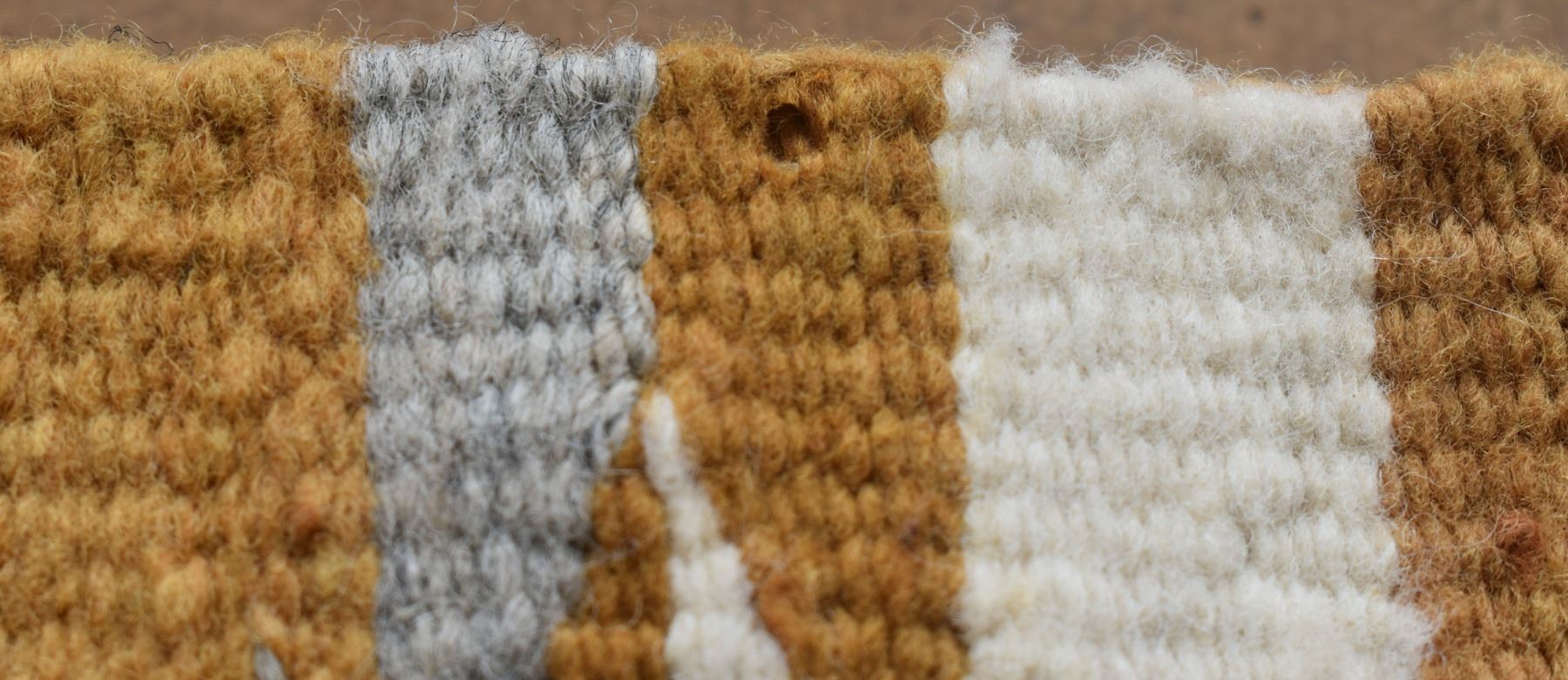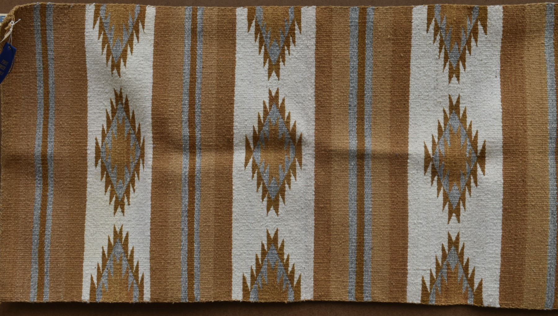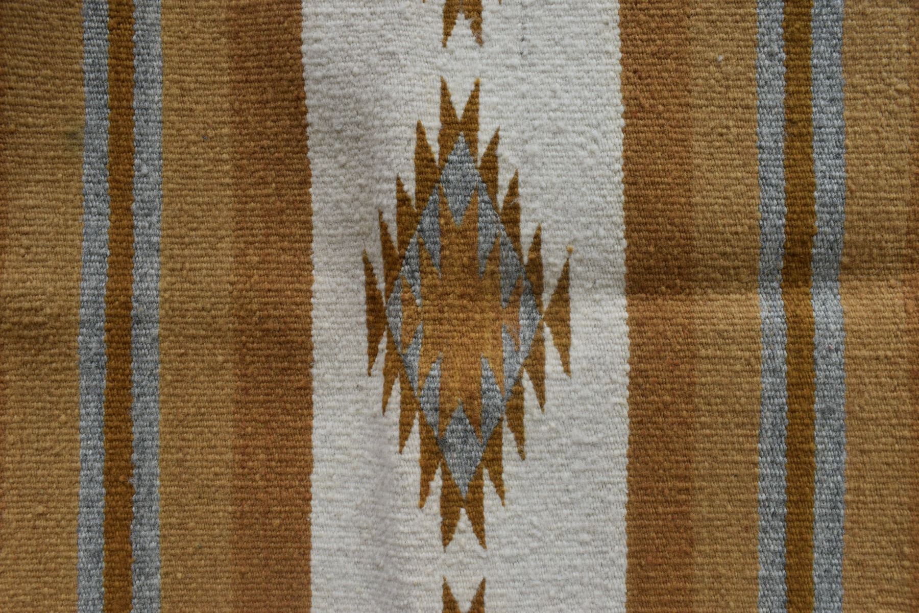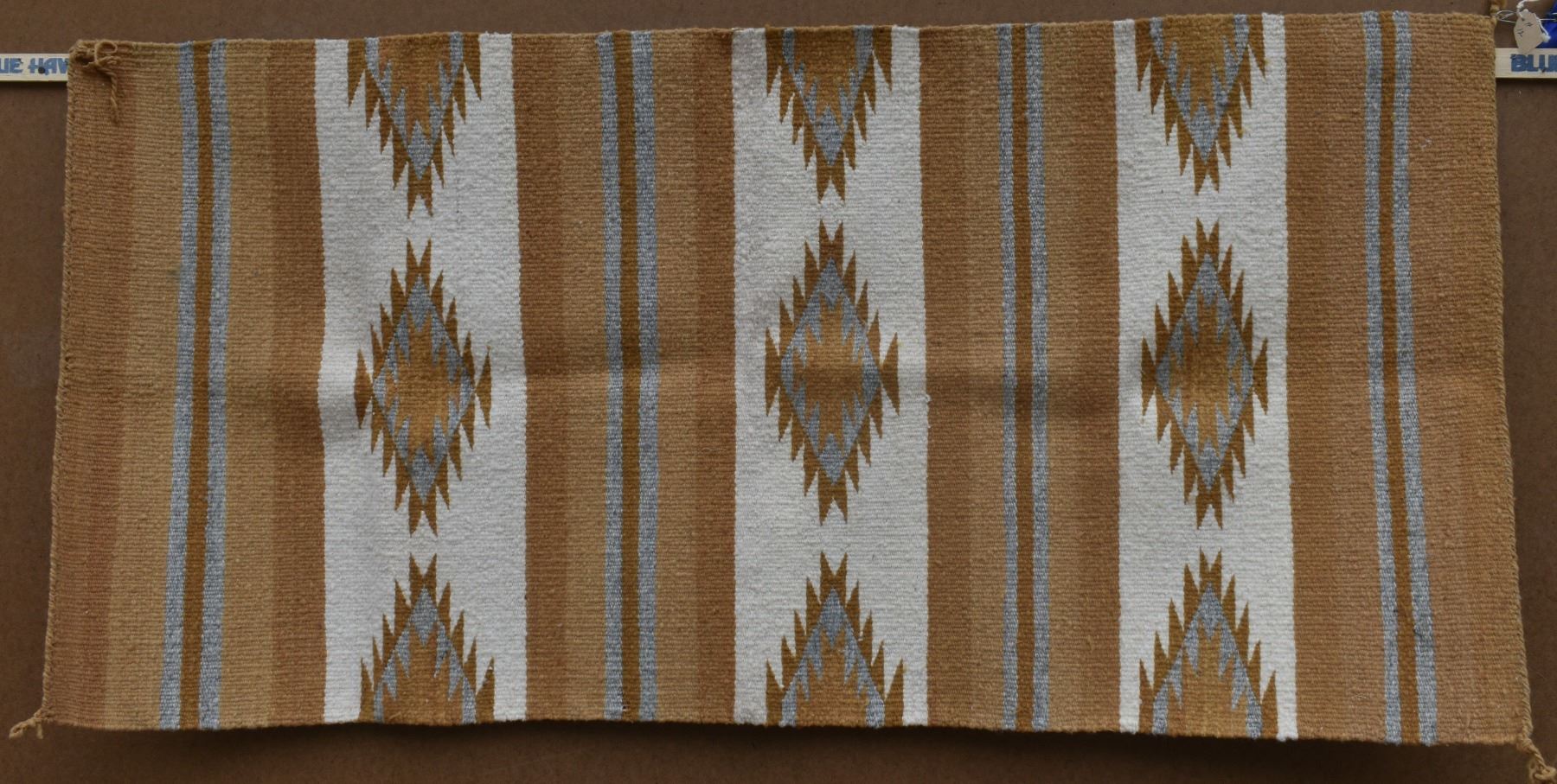 1960's Navajo. Hand woven banded crystal textile by Charaotte Watchman. 44'' x 21''