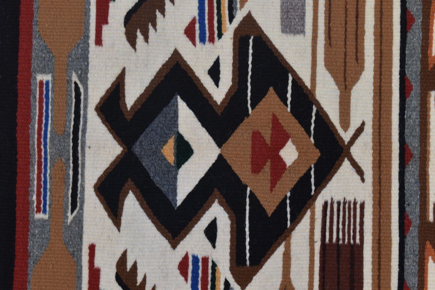 1980's Navajo. Hand woven busy design textile By Daisy Joe. 49'' x 32''