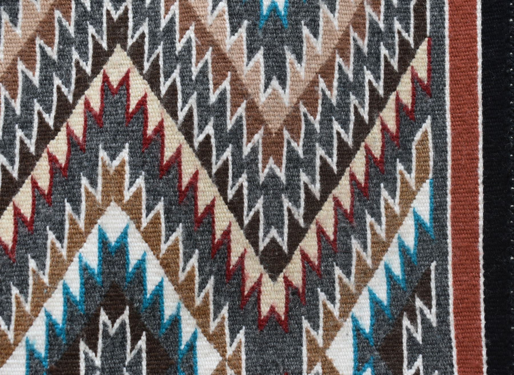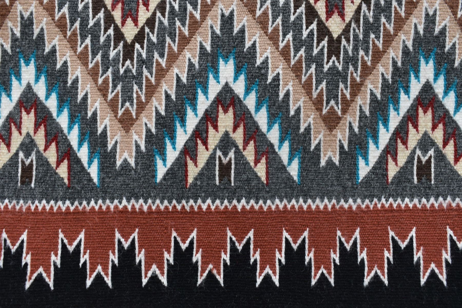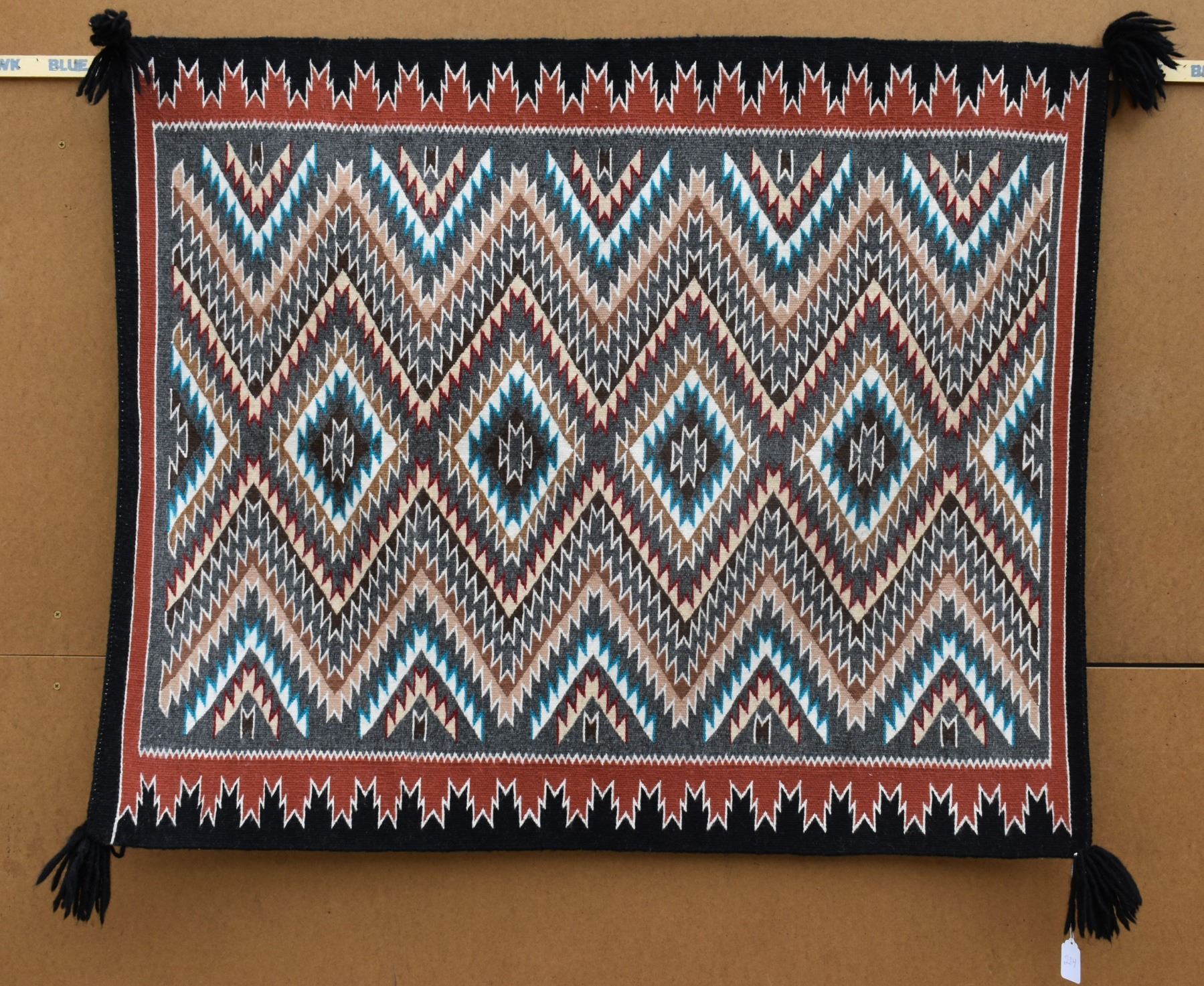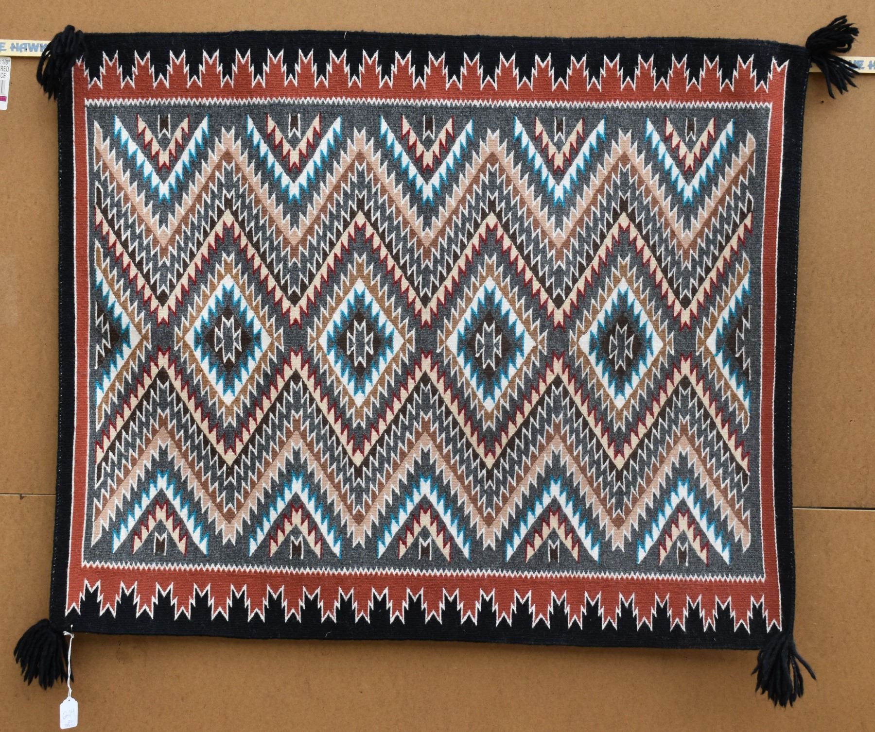 2004 Navajo, hand woven busy Red mesa design attributed to Emma J. Lee, 42" x 34"