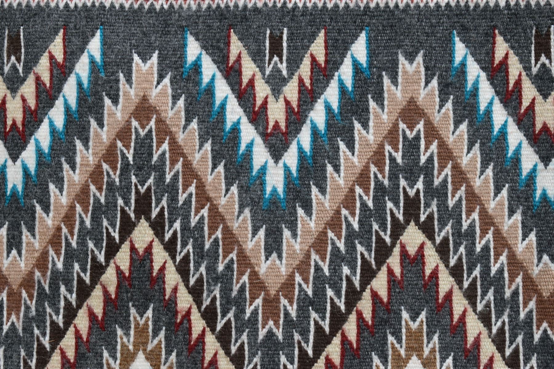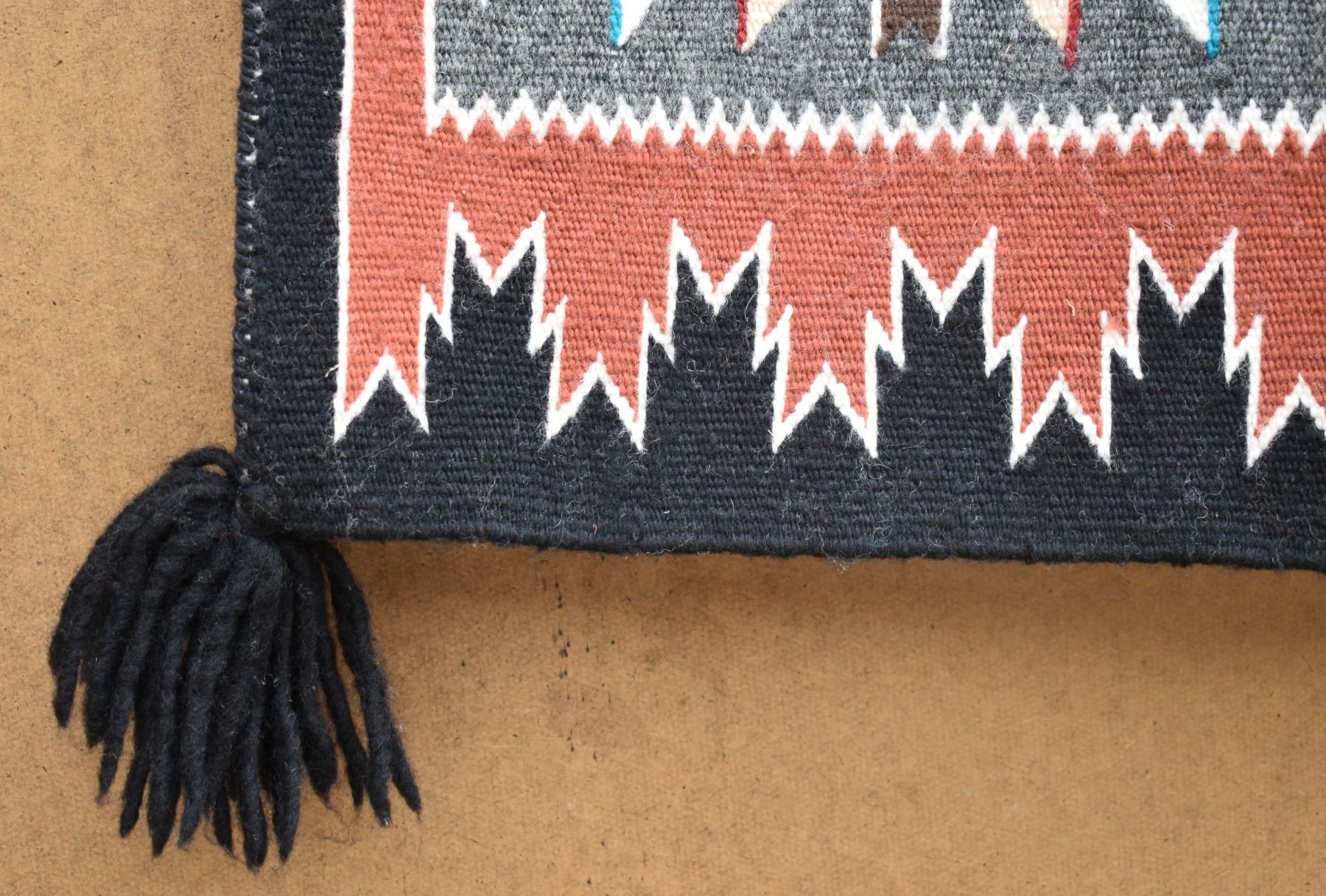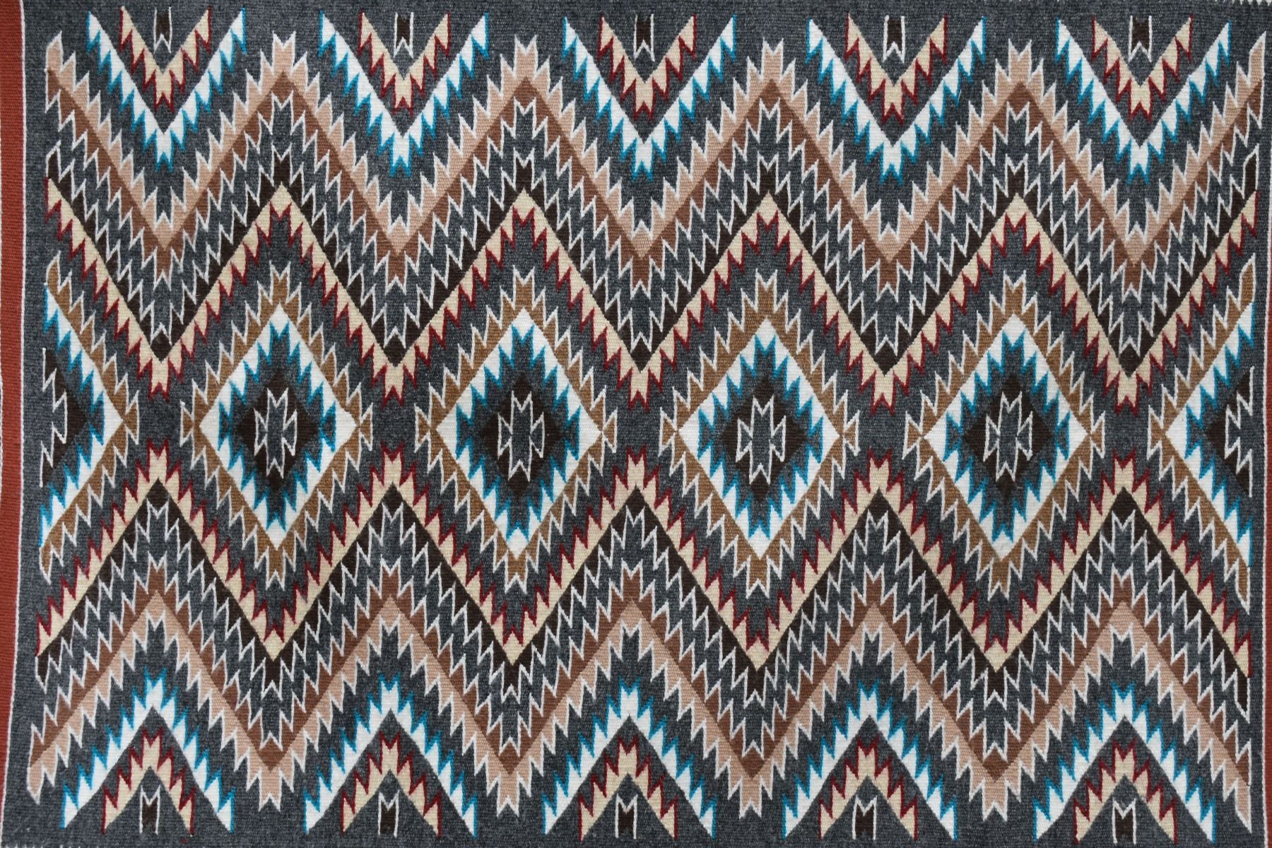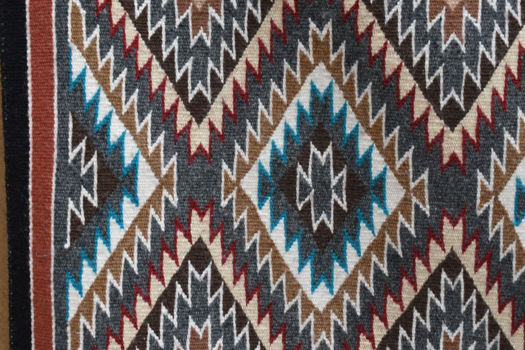 2004 Navajo, hand woven busy Red mesa design attributed to Emma J. Lee, 42" x 34"