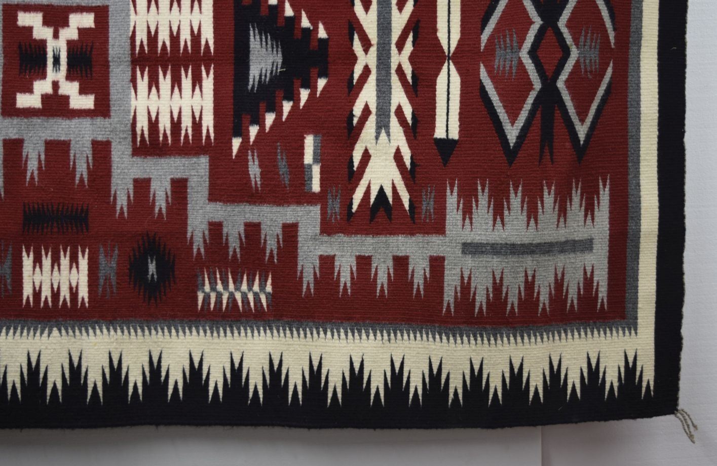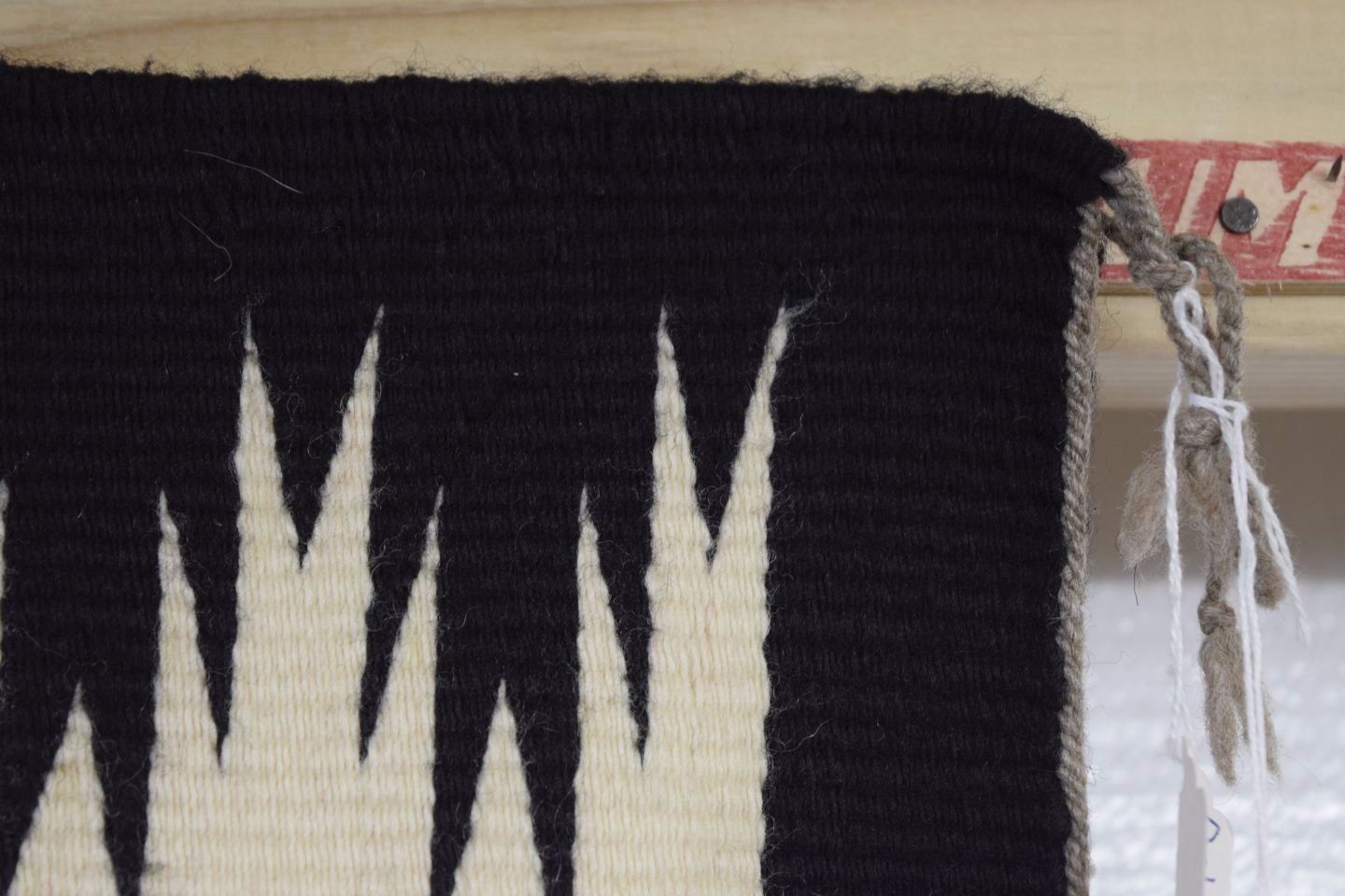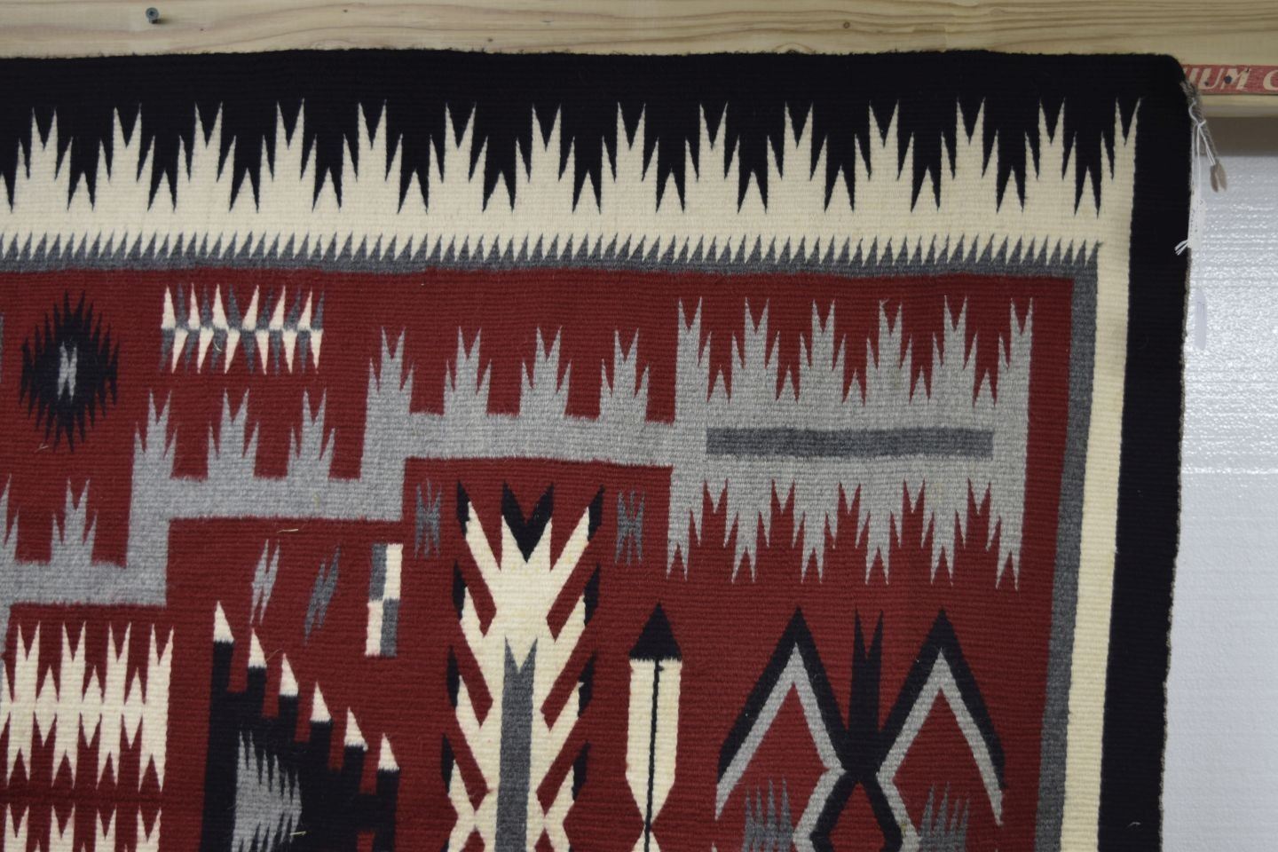 1980's busy hand woven geometric design by Delorita Francis 78'' x 46''