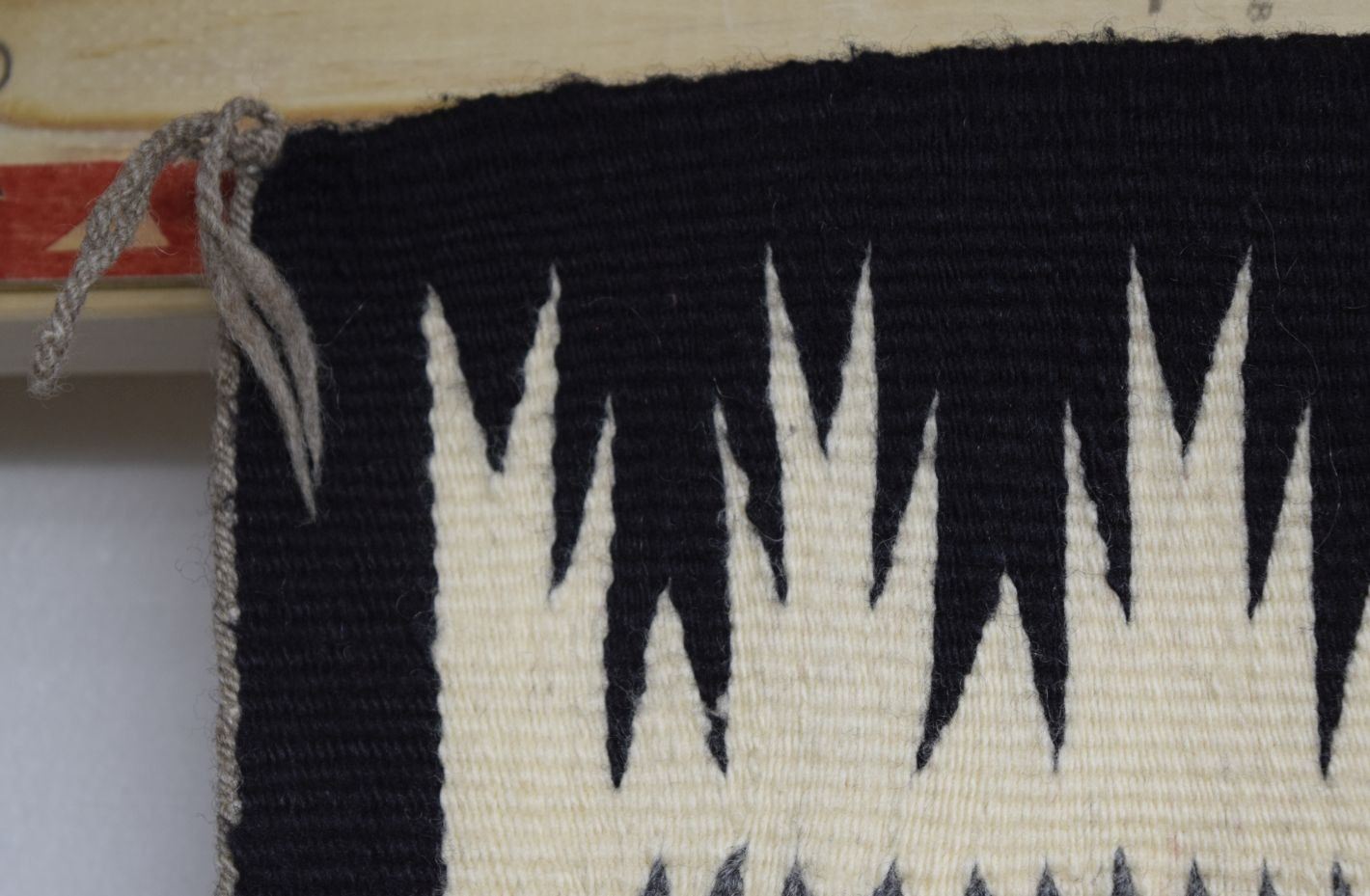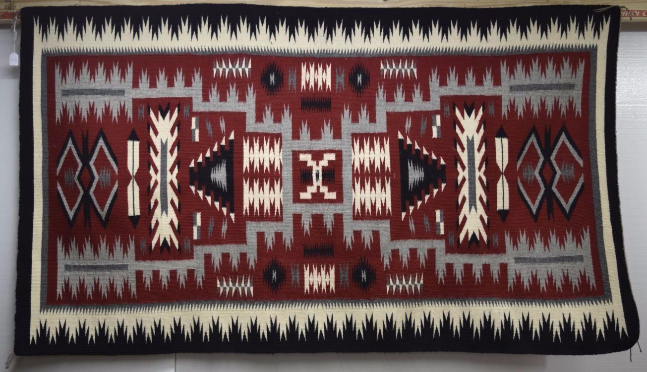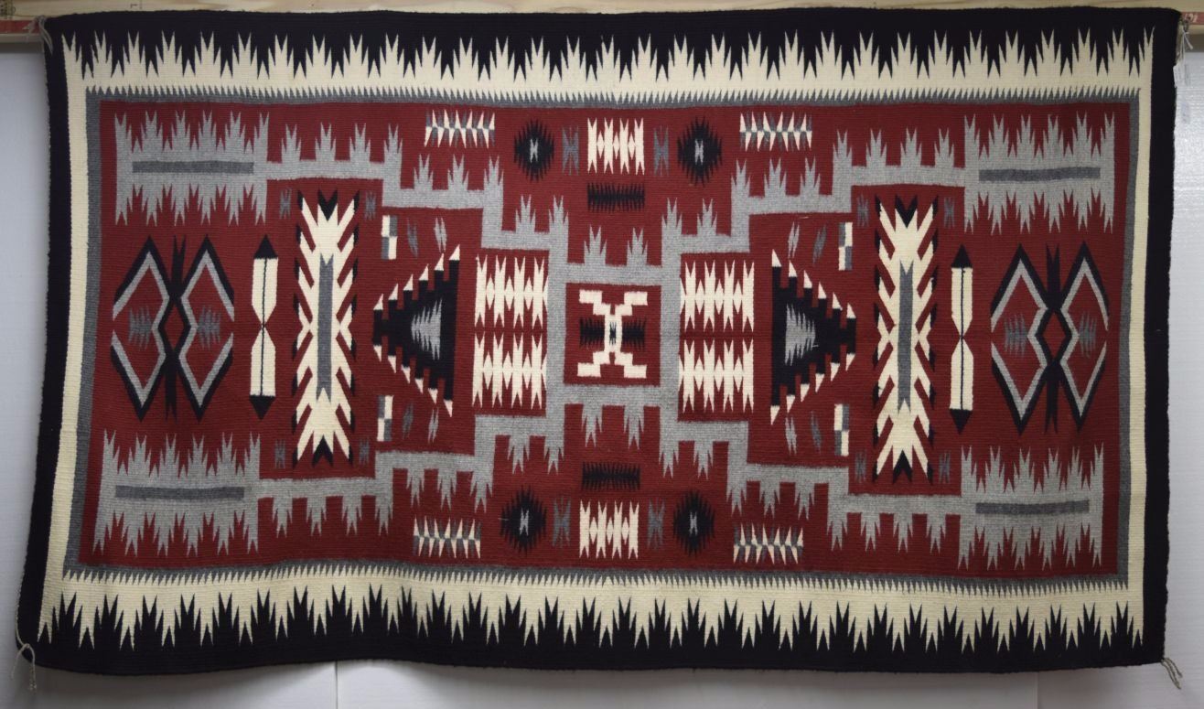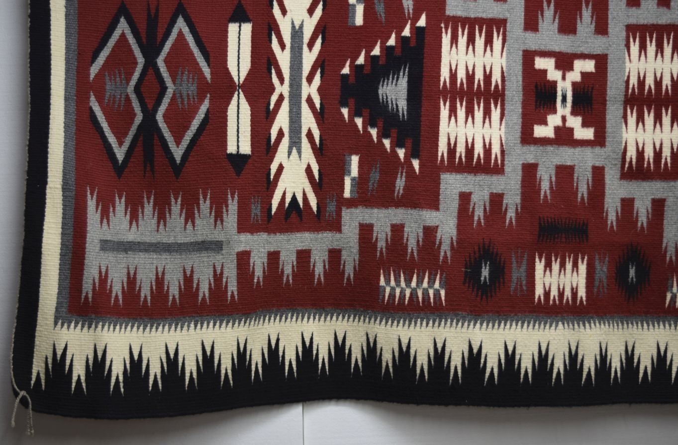 1980's busy hand woven geometric design by Delorita Francis 78'' x 46''