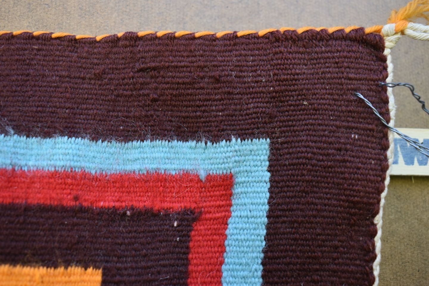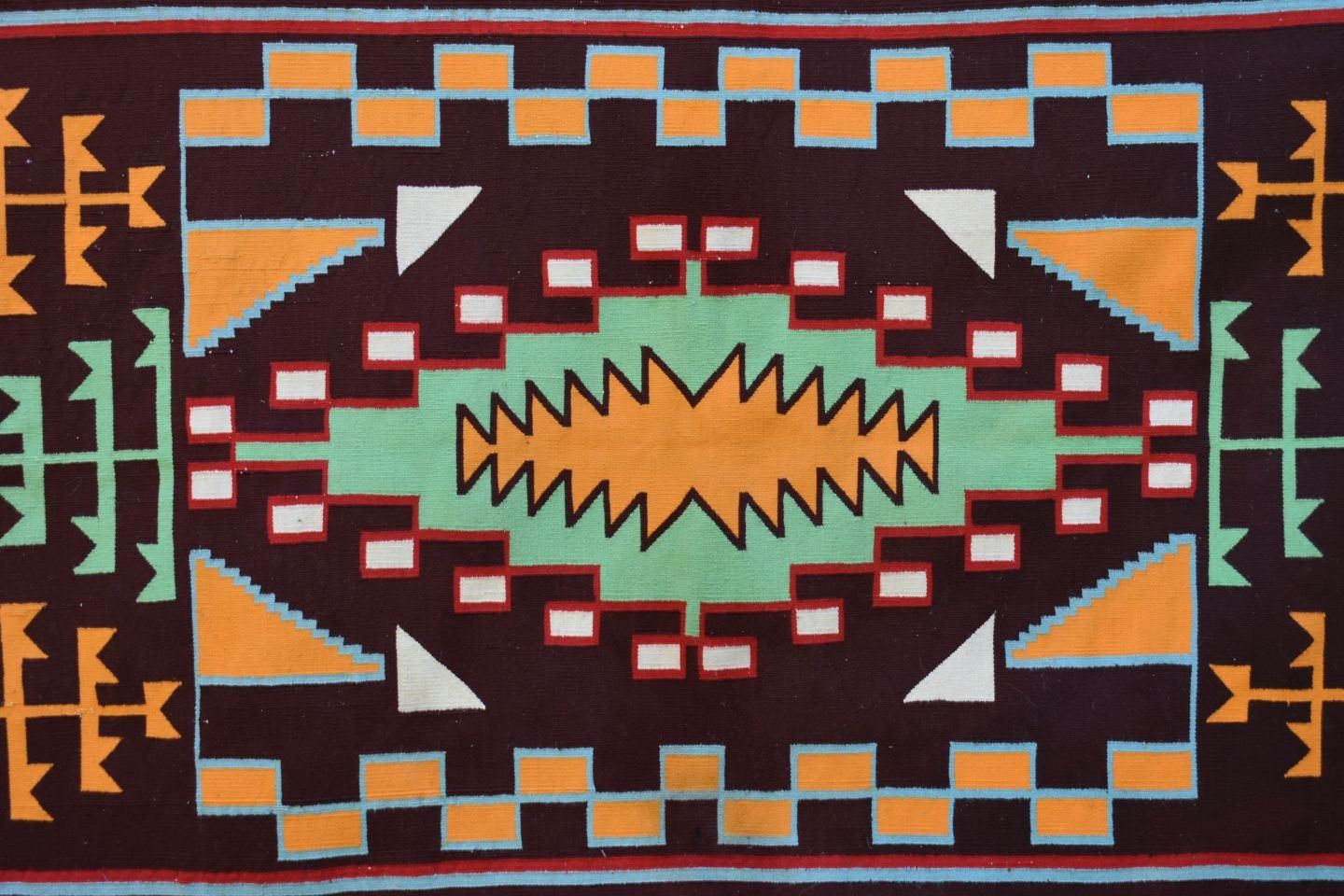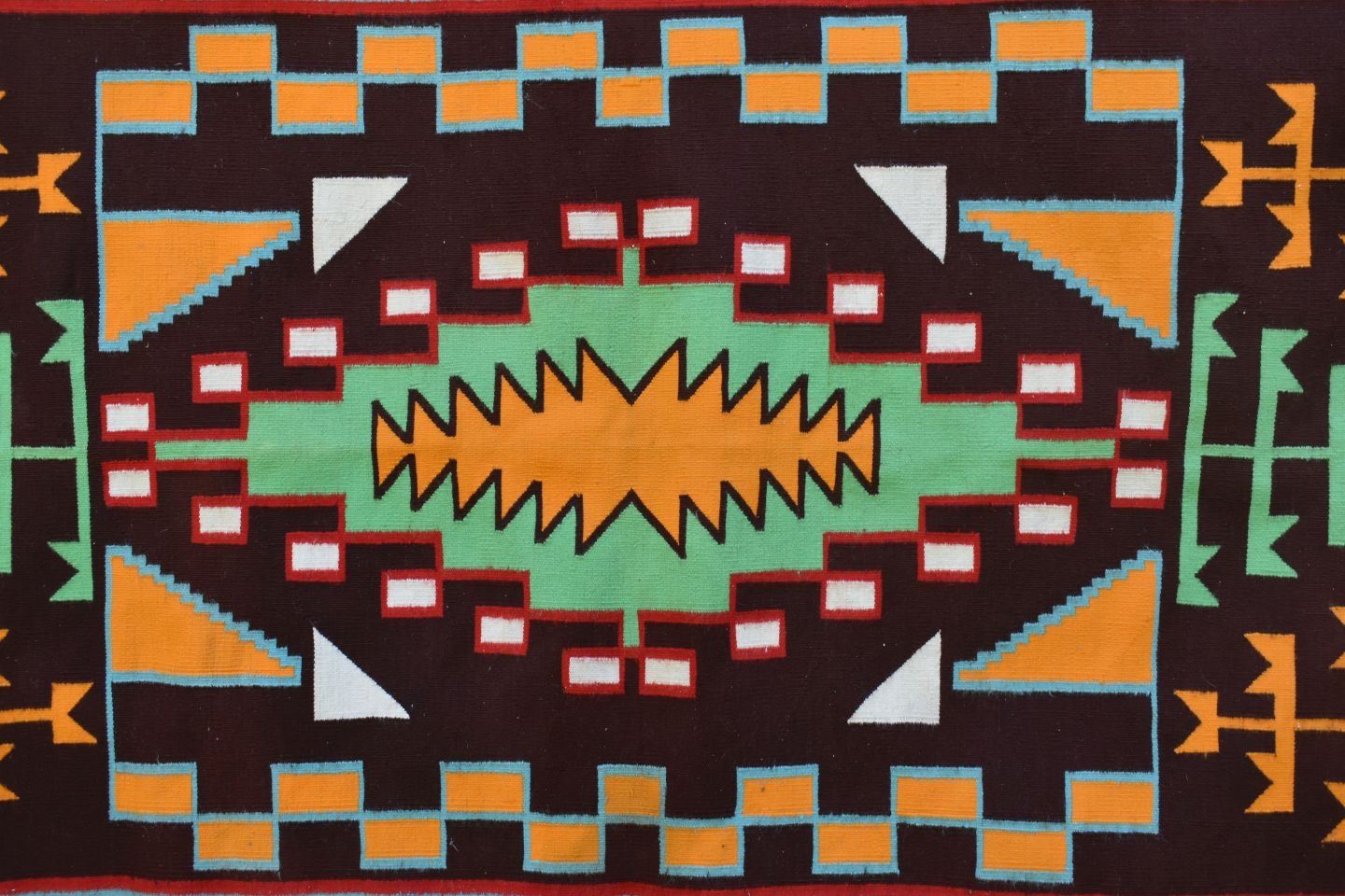 1950-60's Navajo, hand woven bust colorful design has lead sealed Fred Harvey tag attributing to Sarah Joe 37" x 68"