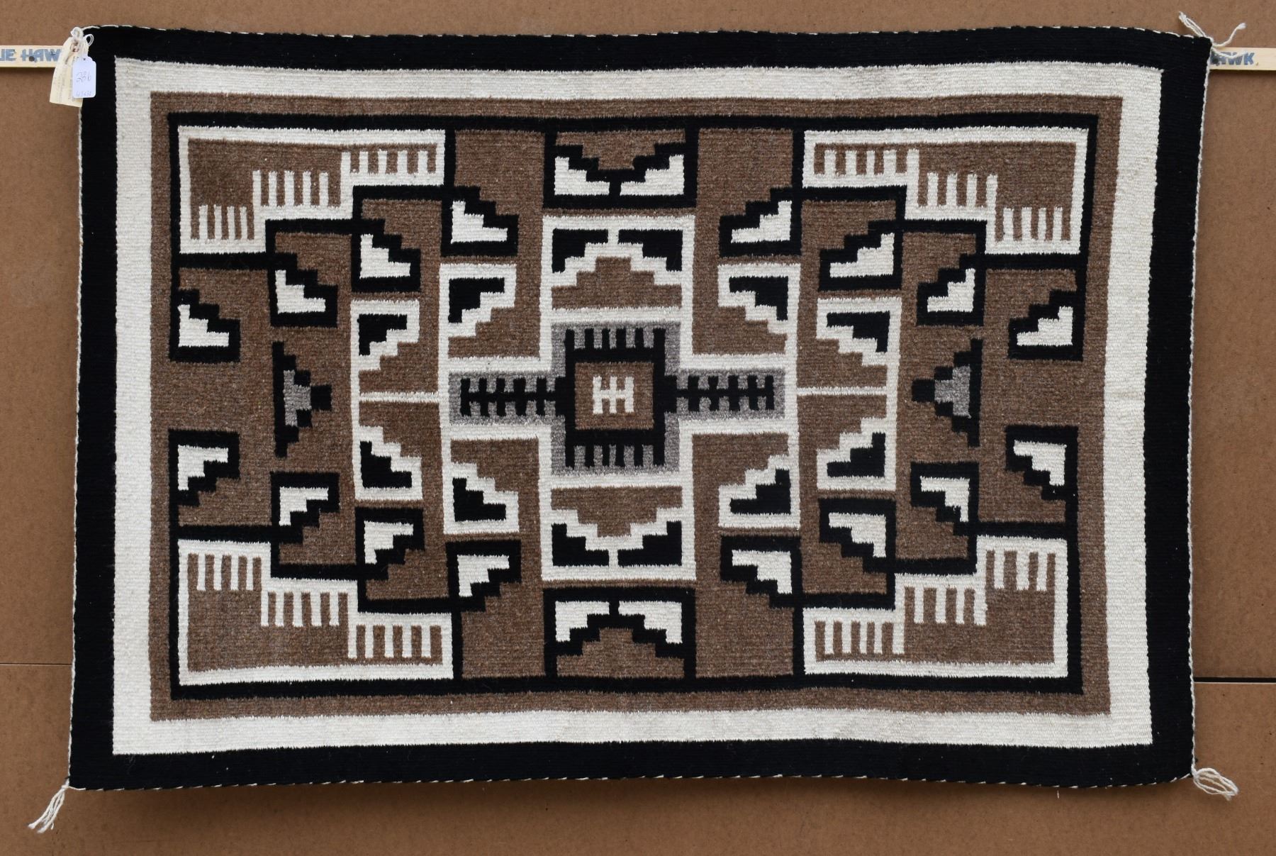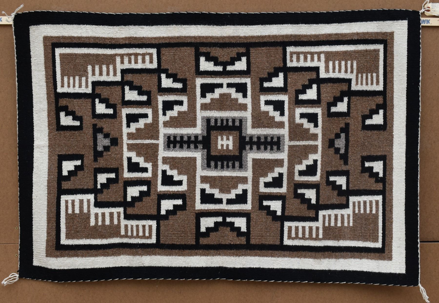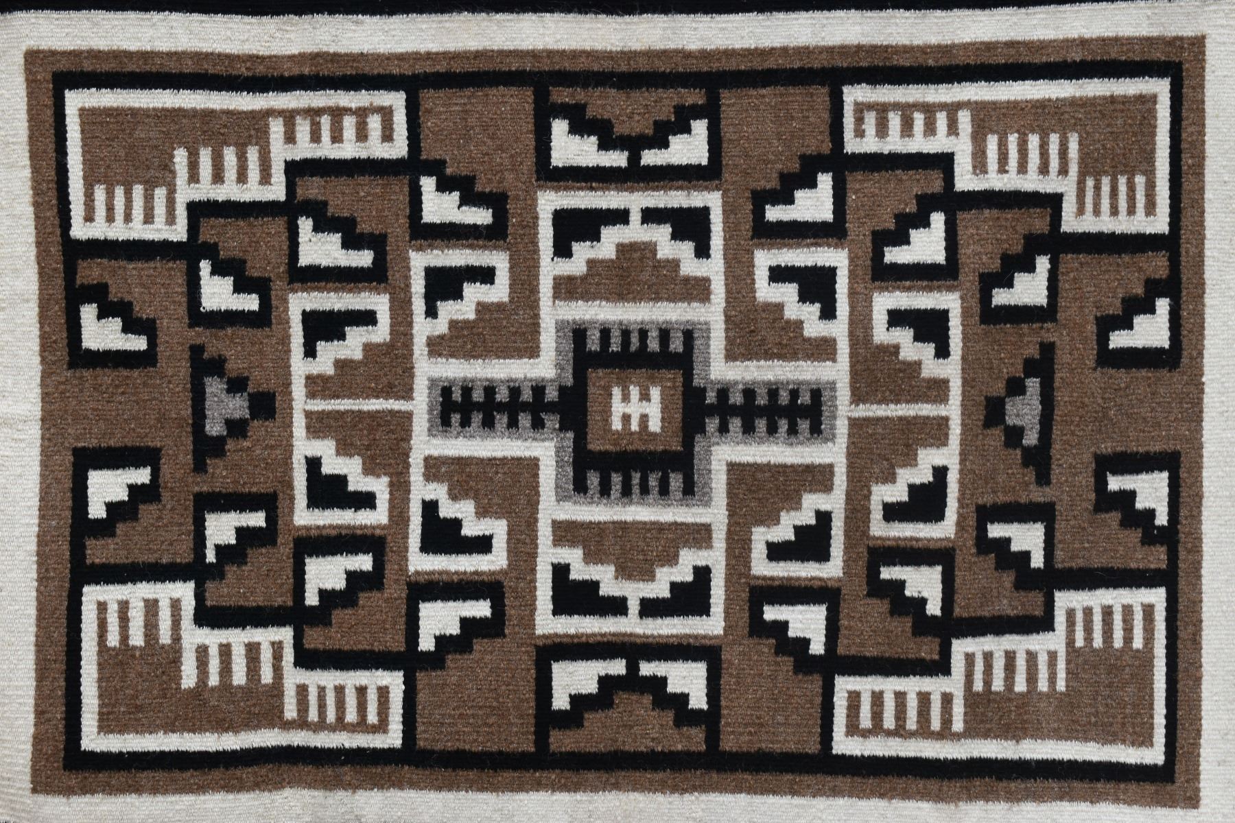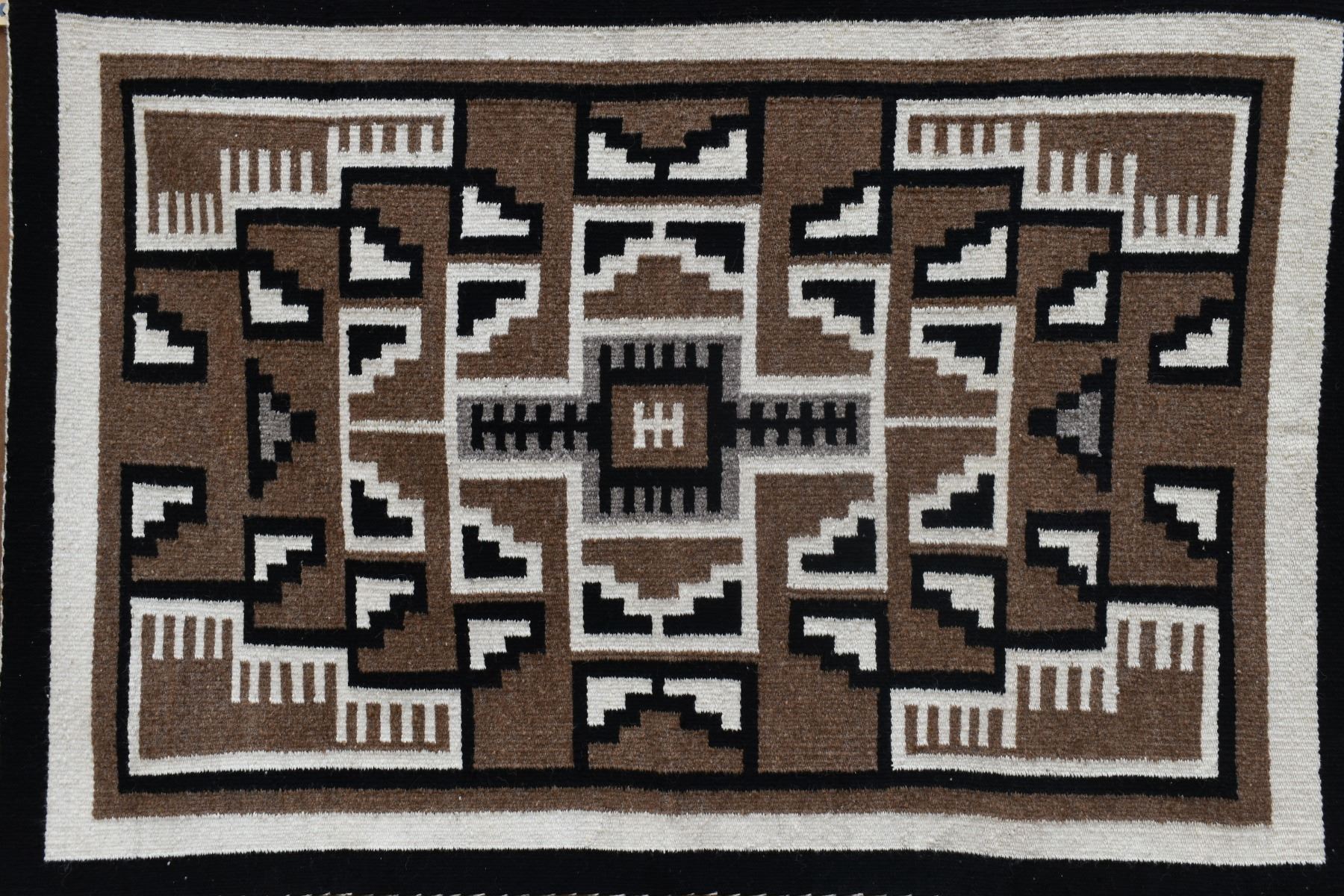 1960's Navajo, hand woven two grey hills design attributed to Lucy H Yazzie, 45" x 30"