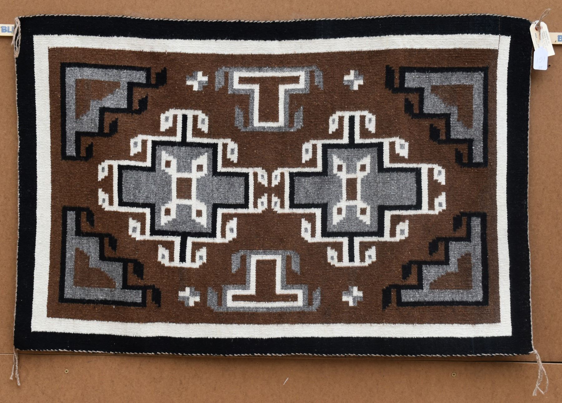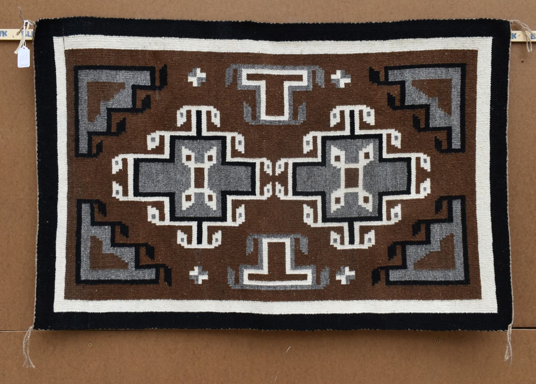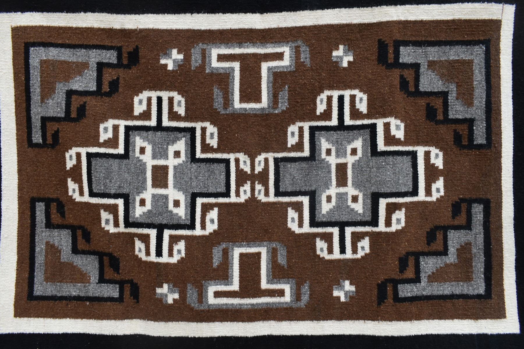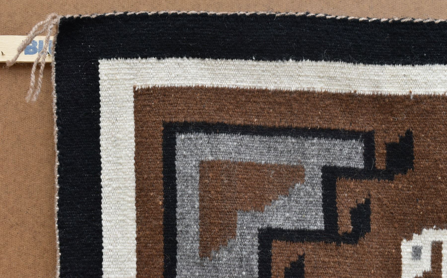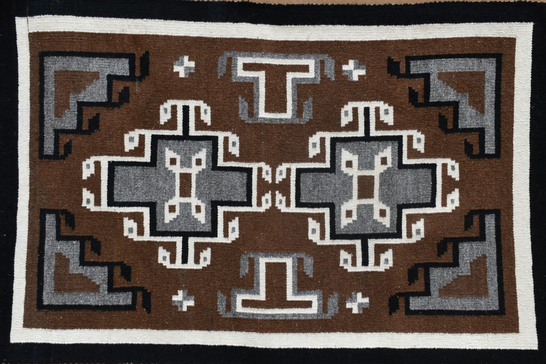 1960's Navajo, hand woven two grey hills design attributed to Lucy Yazzie, 40" x 26".