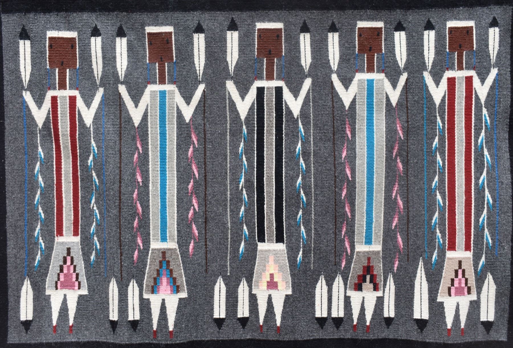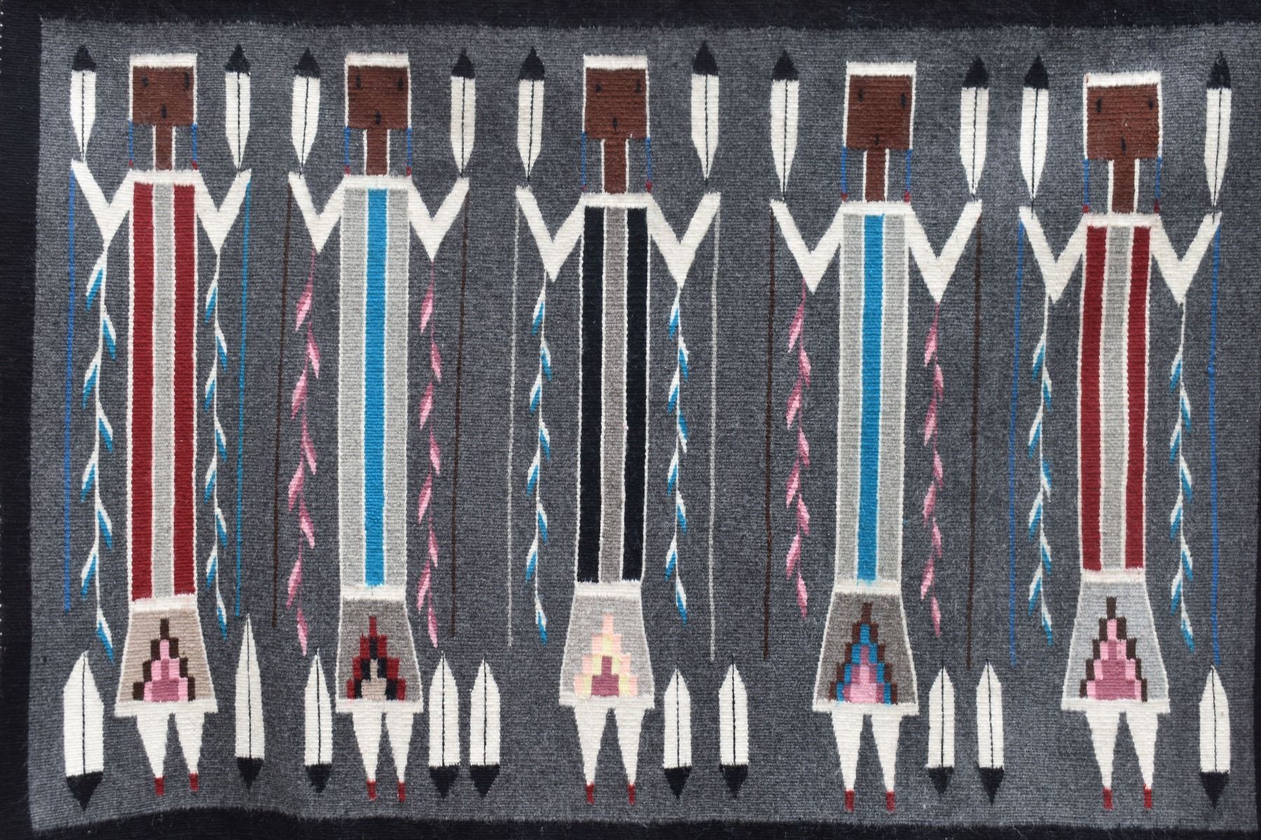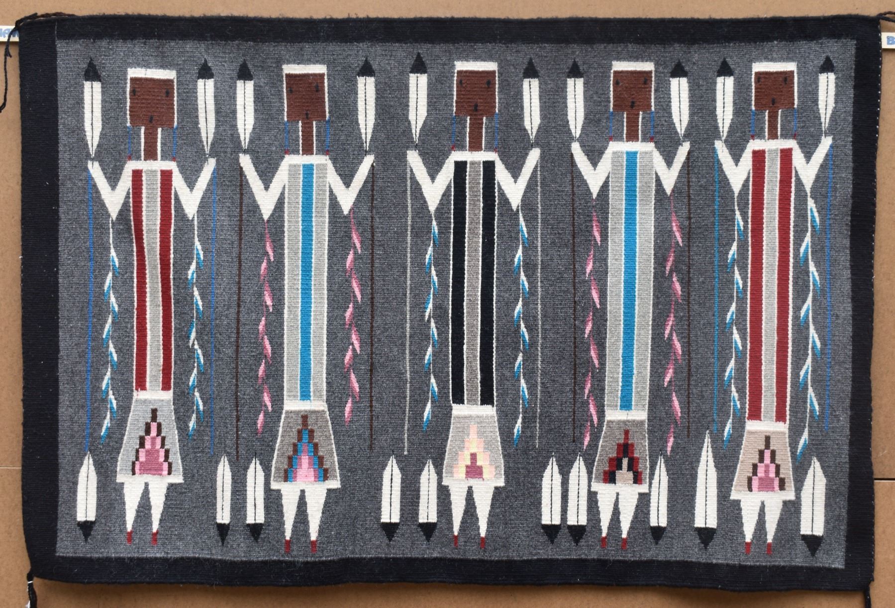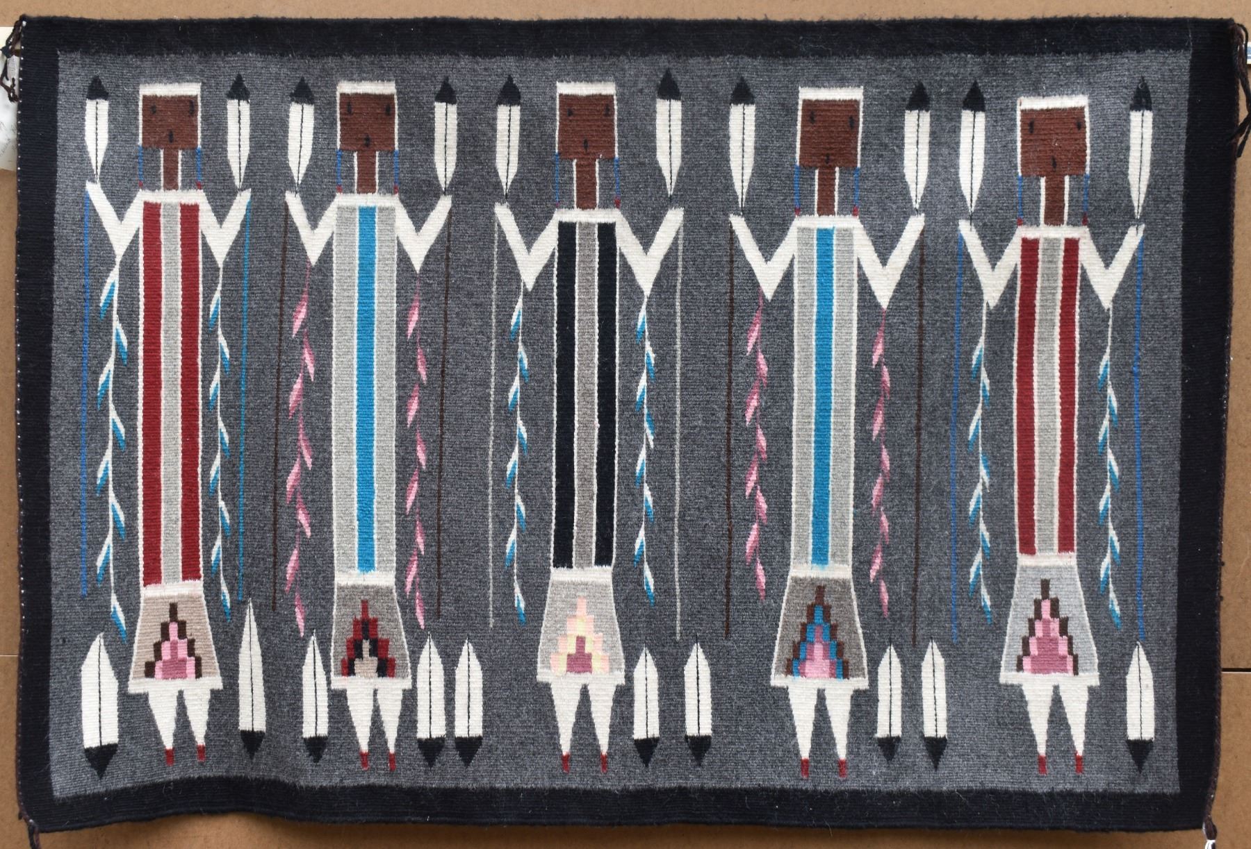 1980's Navajo. Hand woven yei design textile by Mary Begay. 33''x 50''