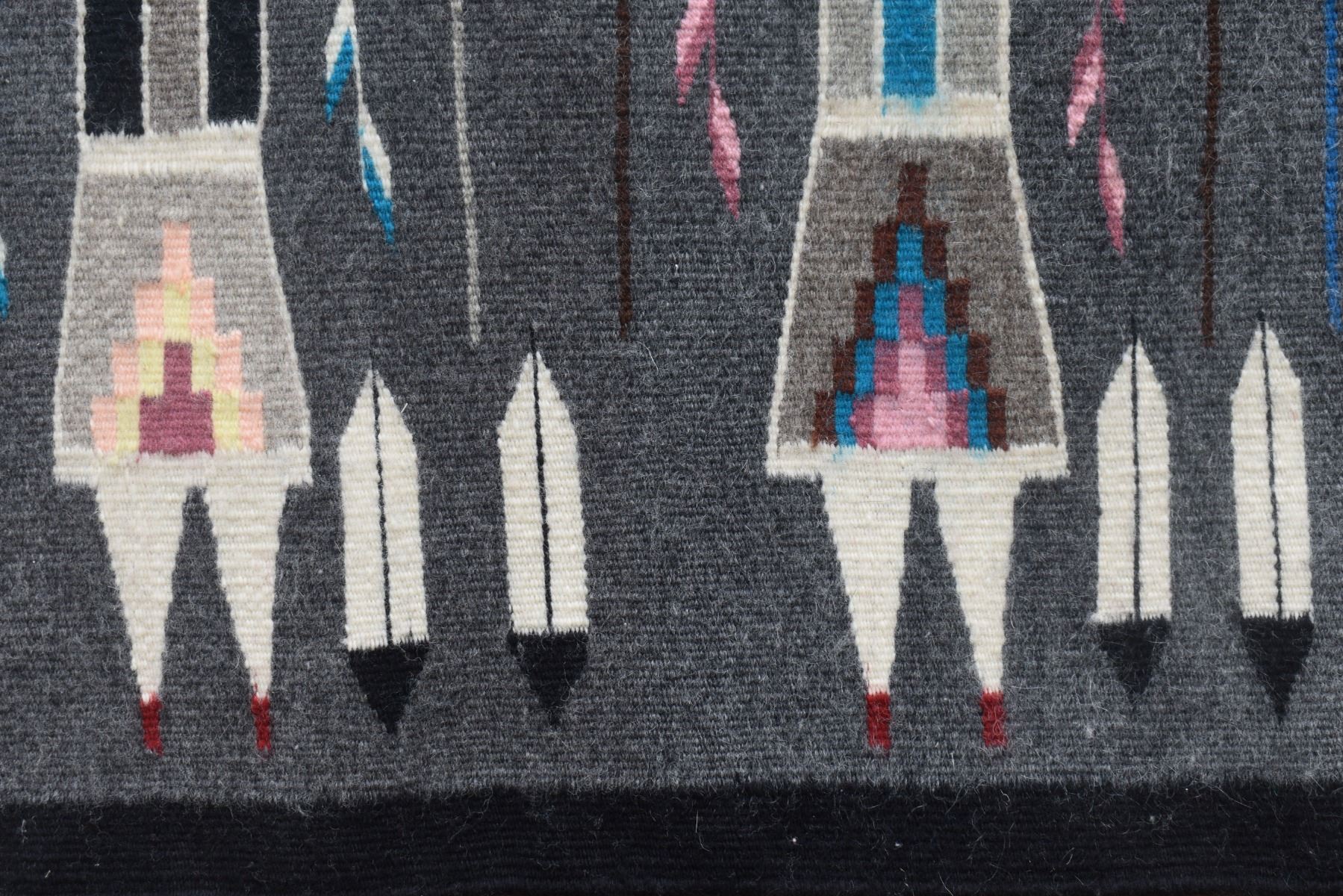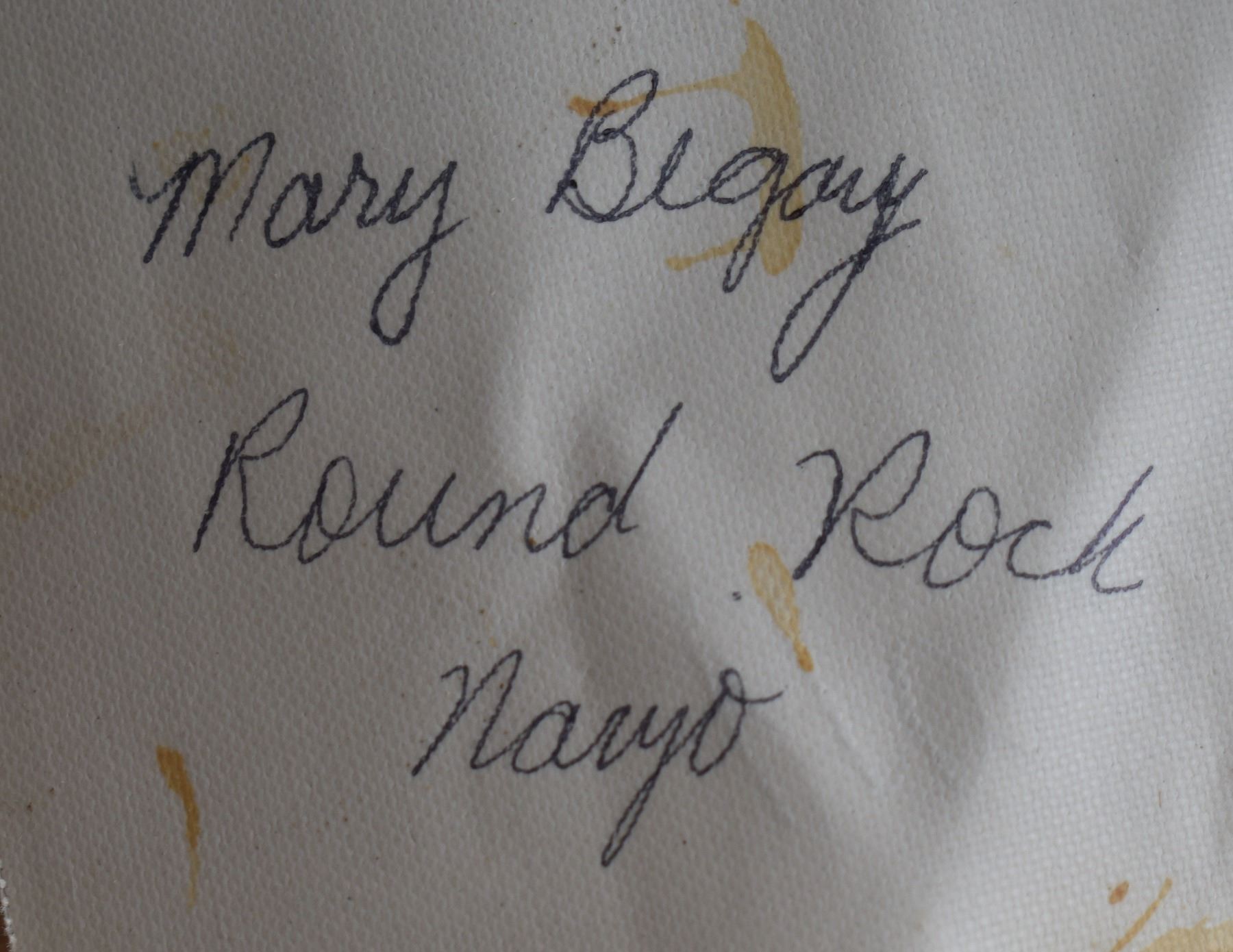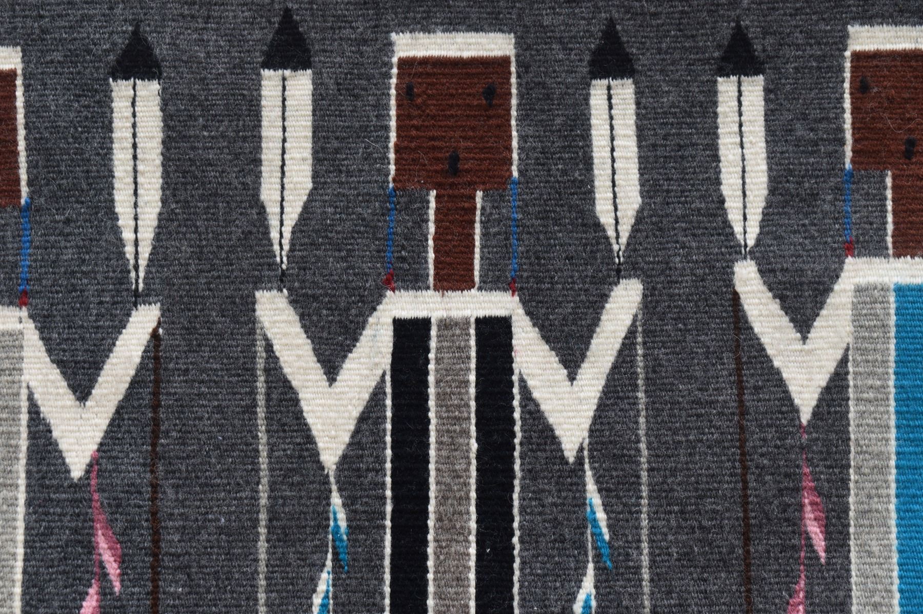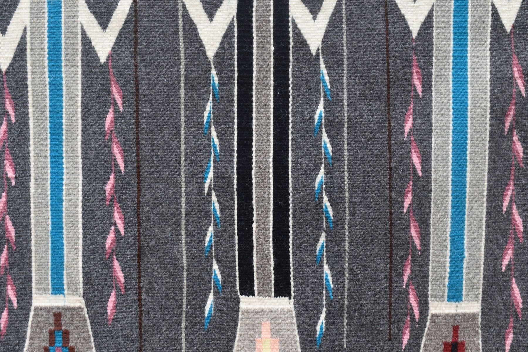 1980's Navajo. Hand woven yei design textile by Mary Begay. 33''x 50''