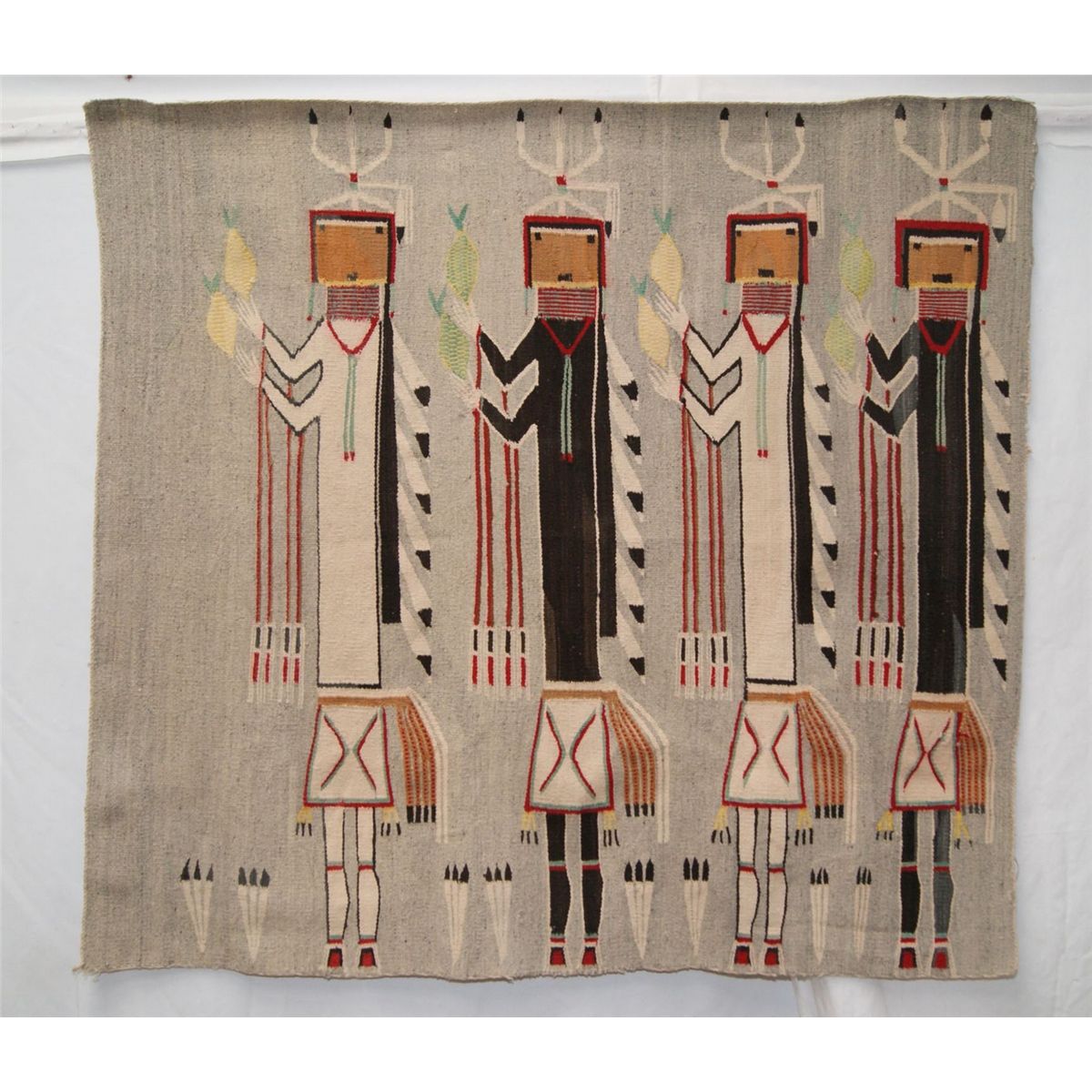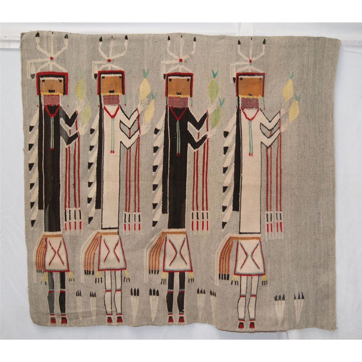 1940s 50s four figure yei has minor bleed, holes and stains, 48" x 52"
