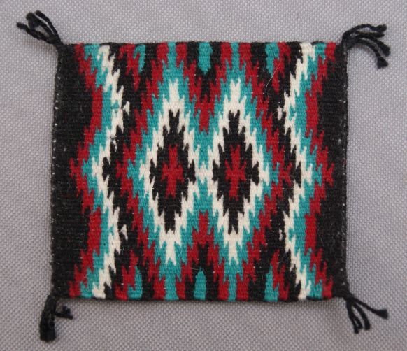 1980s 90s mini hand woven geometric pattern, 3.75" x 3.25"