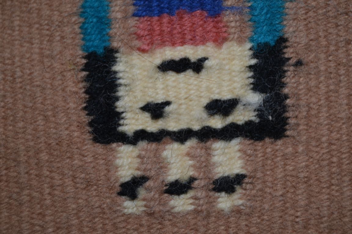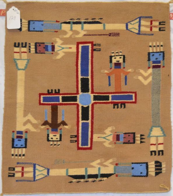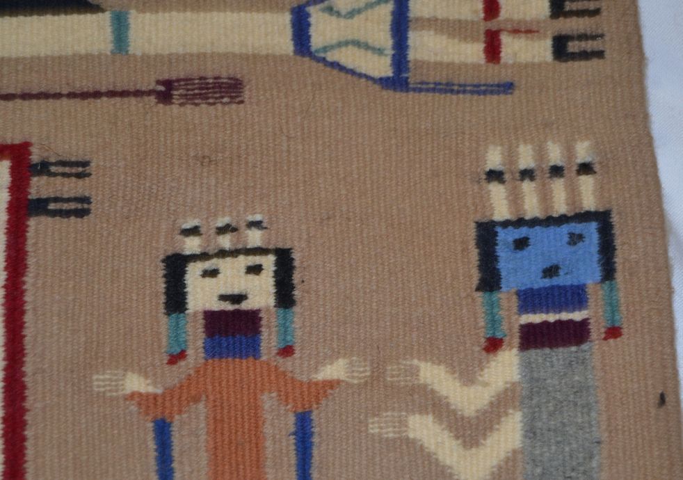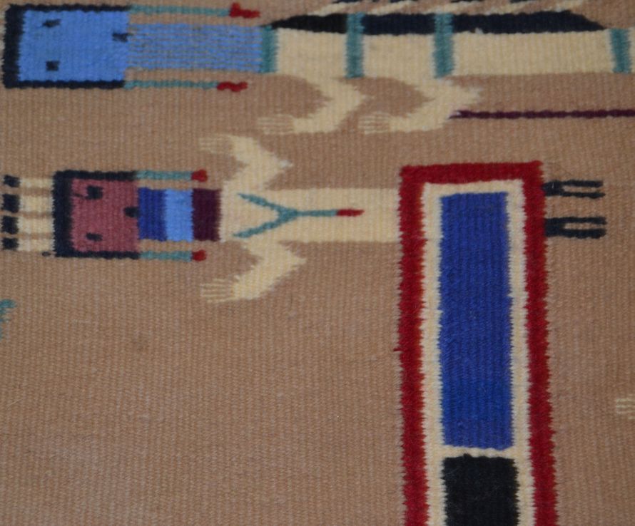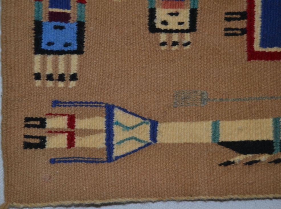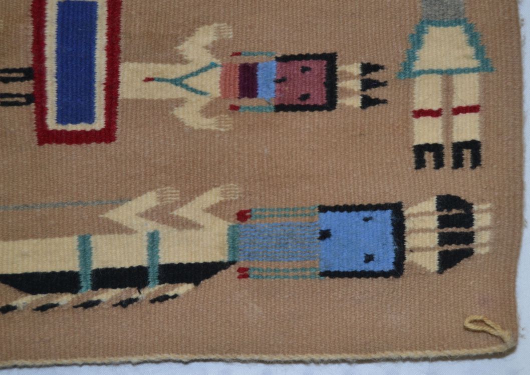 1970s hand woven sand painting pictorial with yei figures, 23" x 20"