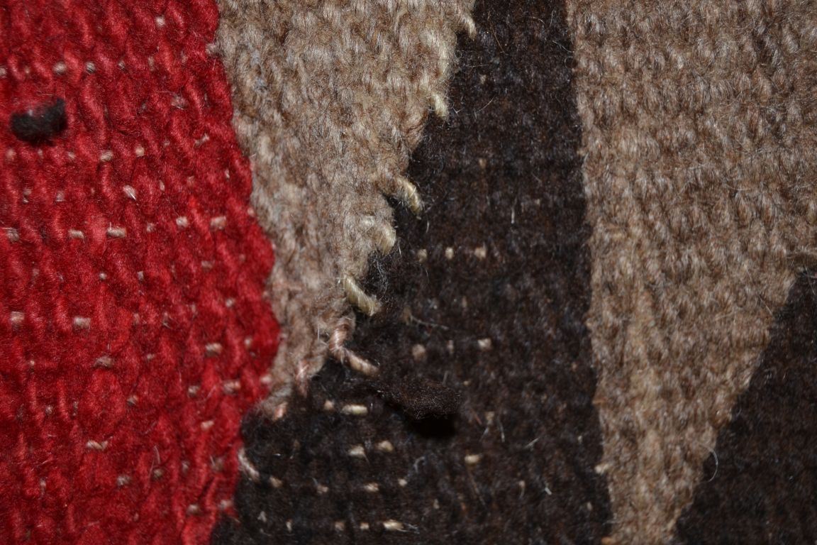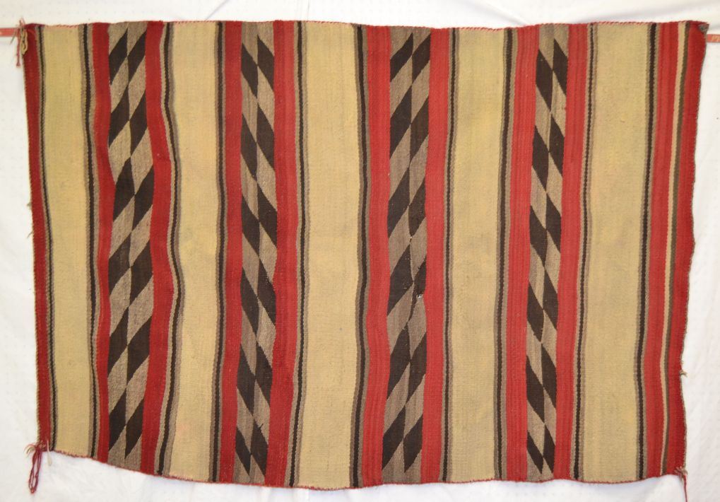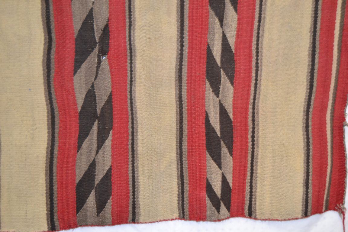 1920's-30's hand woven with banded pattern has edge ware and stains71" x 49"