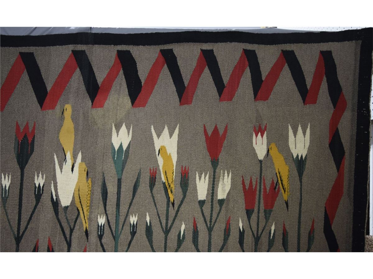 1960's busy pictorial design of corn stalks and birds 154" x 80" has minor stain small hole