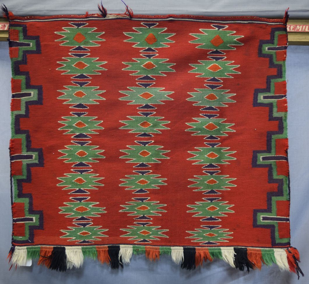 1890-1910 Germantown busy geometric polychrome design 26'' x 31''